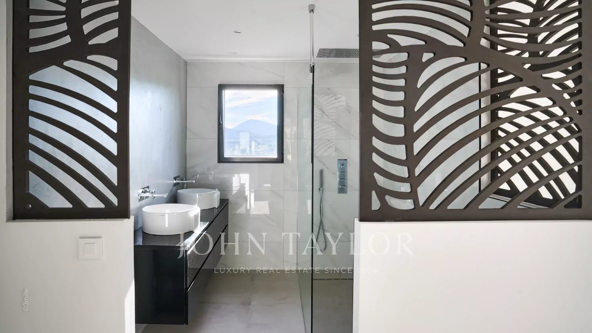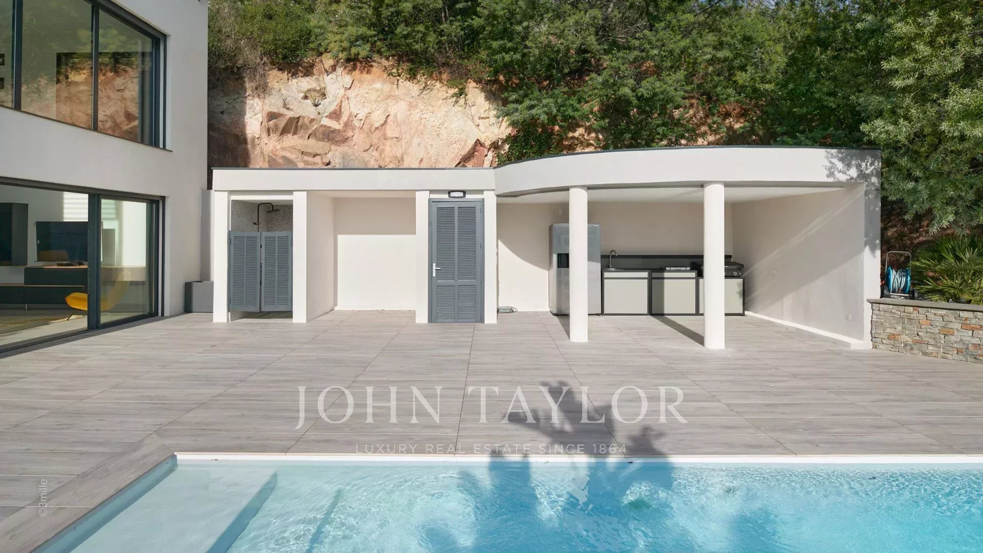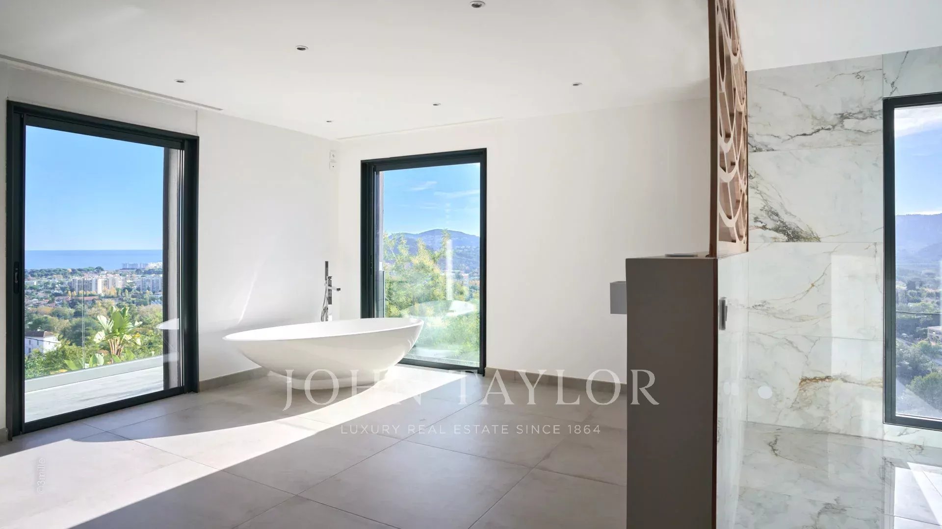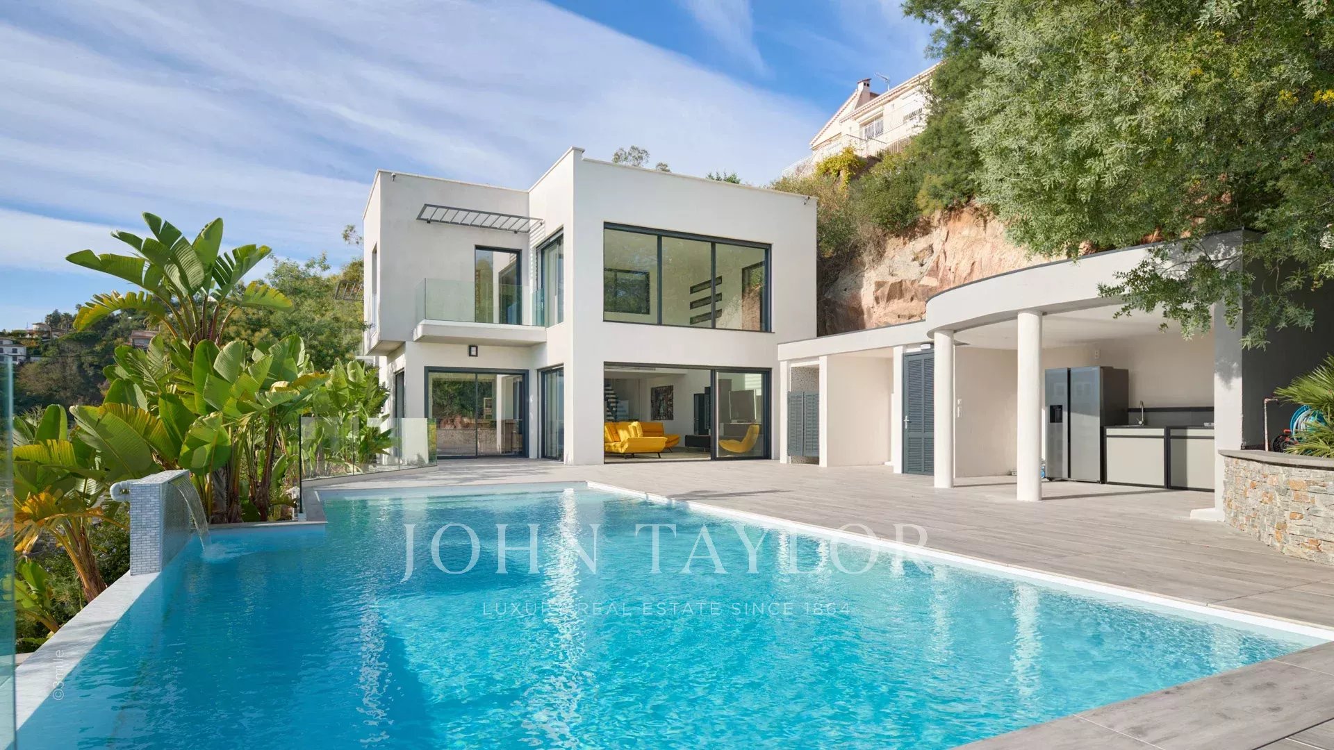 Située à 5 minutes du centre-ville de Mandelieu, cette magnifique villa contemporaine offre des prestations haut de gamme et impressionne par son architecture et sa vue imprenable sur la mer et les îles de Lérins.