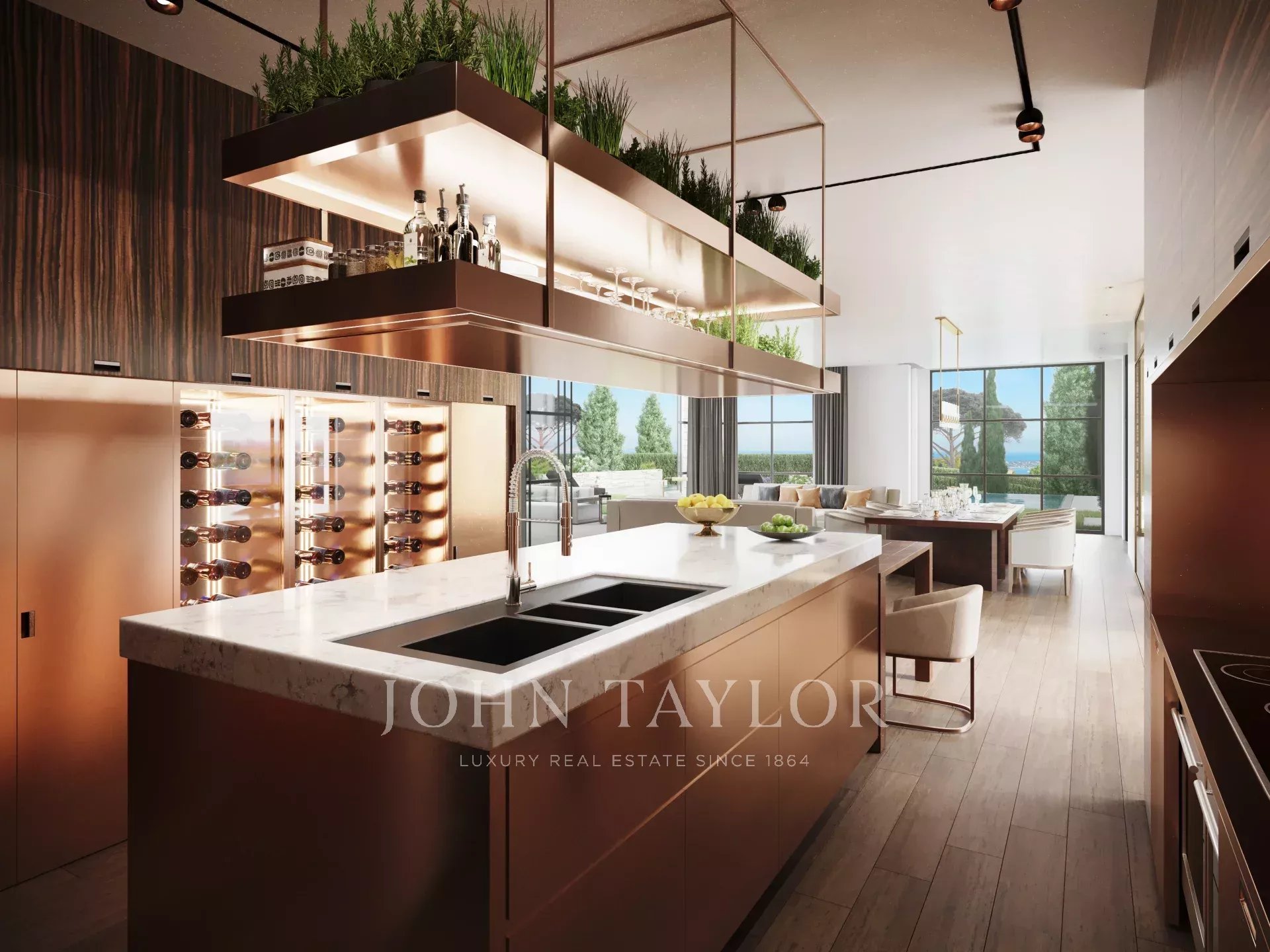 Dans le prestigieux secteur de Super Cannes, hautement calme et résidentiel, cette villa contemporaine d’environ 400 m² se situe dans un domaine fermé. Erigée sur un terrain de 2 090 m² en position dominante, la propriété jouit d’une vue sublime du Cap d'Antibes des Alpes jusqu’aux reliefs montagneux italiens.
