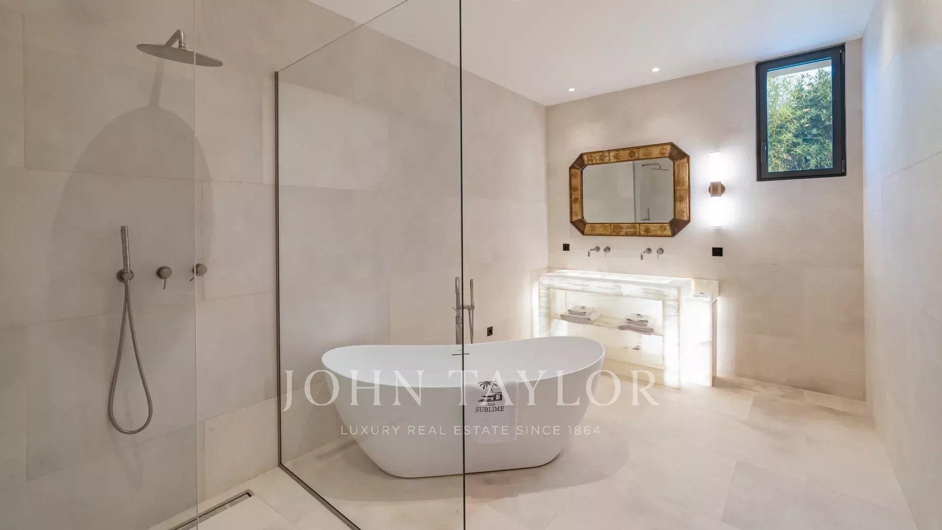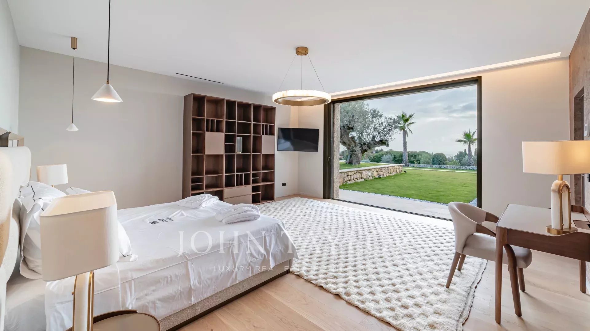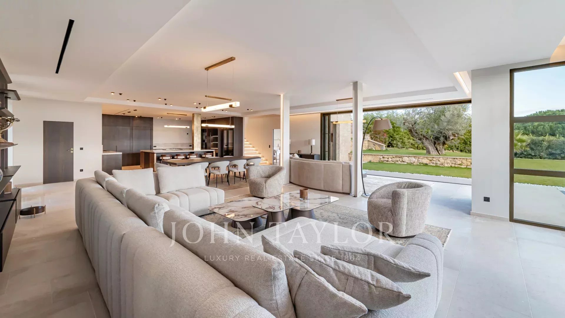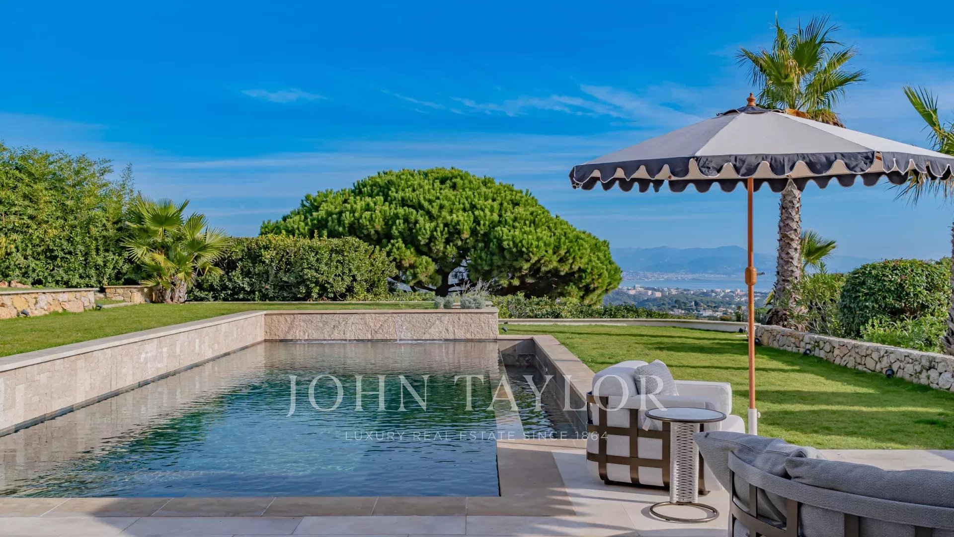La villa est entourée d’un magnifique jardin paysager Méditerranéen agrémenté d’une piscine à débordement, d’un jacuzzi et d’un pool-house.