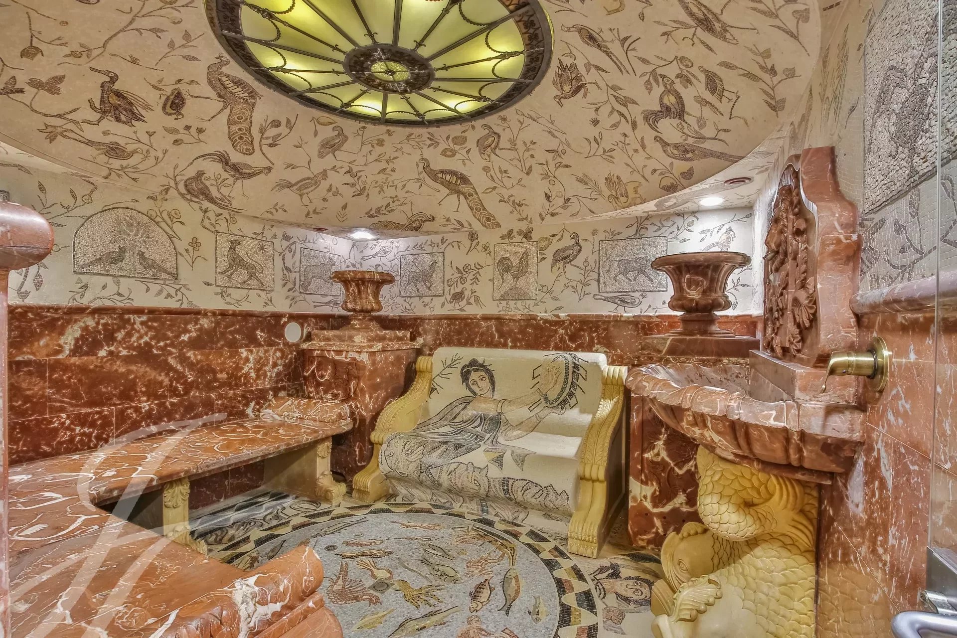 Le sous-sol est un véritable espace de divertissement et de paix, avec une cave à vin et un bar bien approvisionné. La salle de cinéma est équipée de sièges confortables et d'un grand écran pour profiter de vos films préférés. Le coin spa comprend un hammam et un sauna, permettant de se détendre et de se ressourcer.