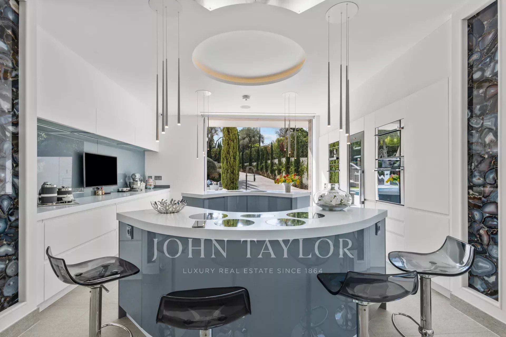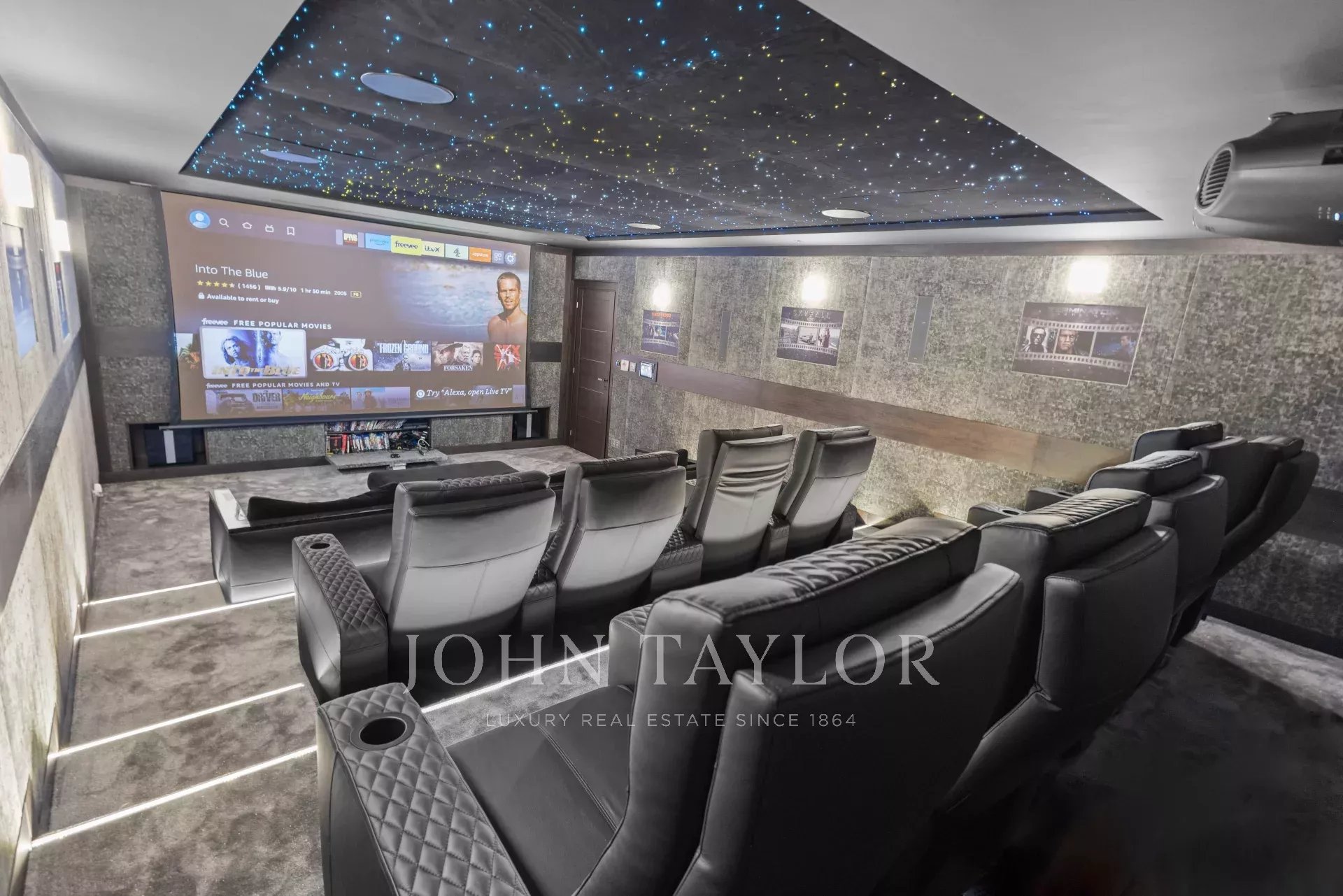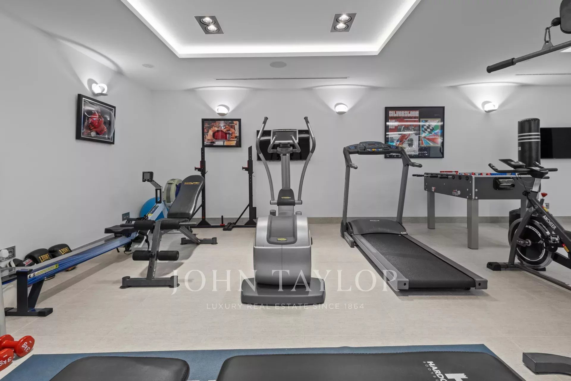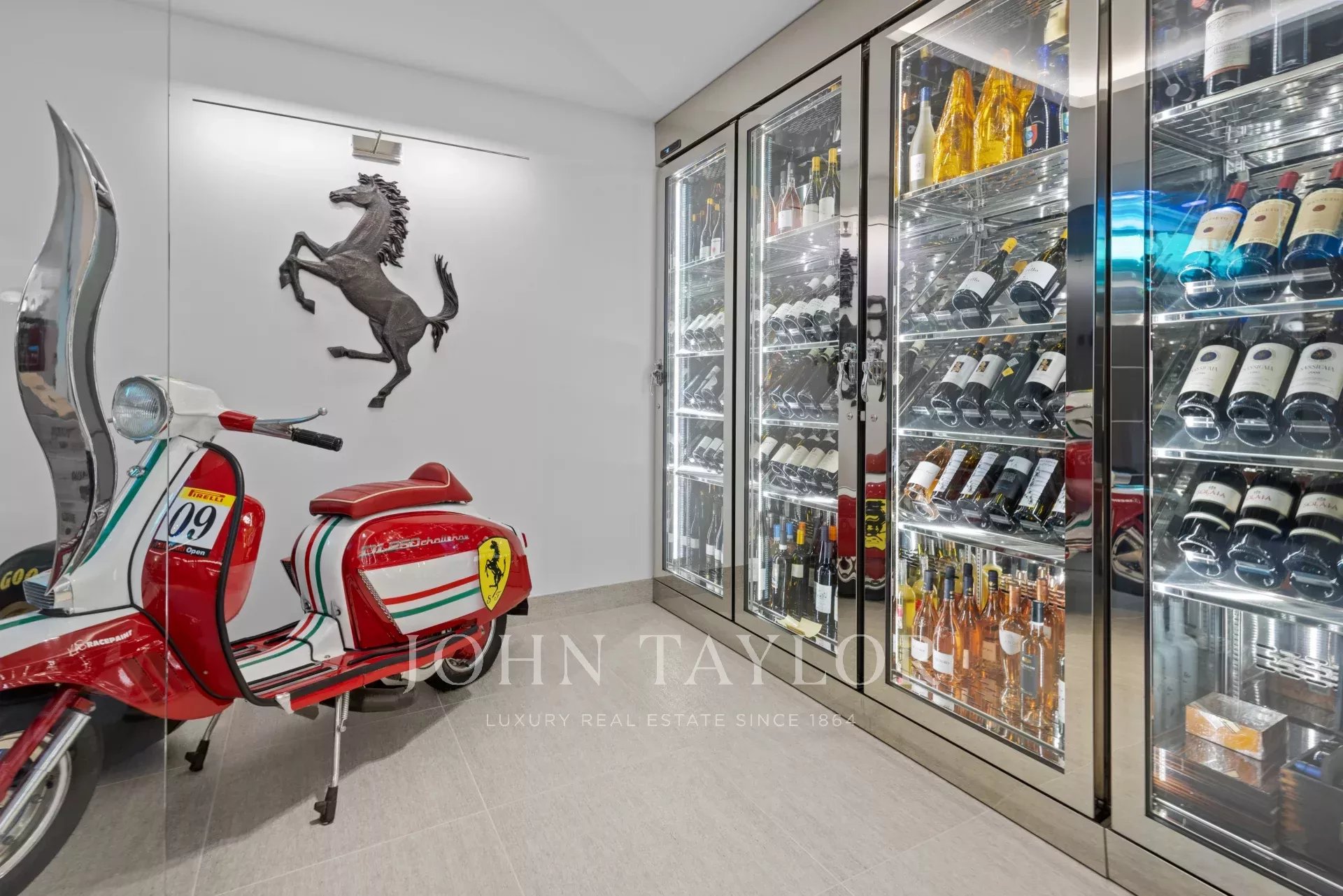 Au sous-sol : un garage pour huit véhicules avec ascenseur, un home cinéma, une cave à vin et un espace fitness. Deux autres chambres pour les invités ou staff avec salle de bains. Buanderie et rangements.