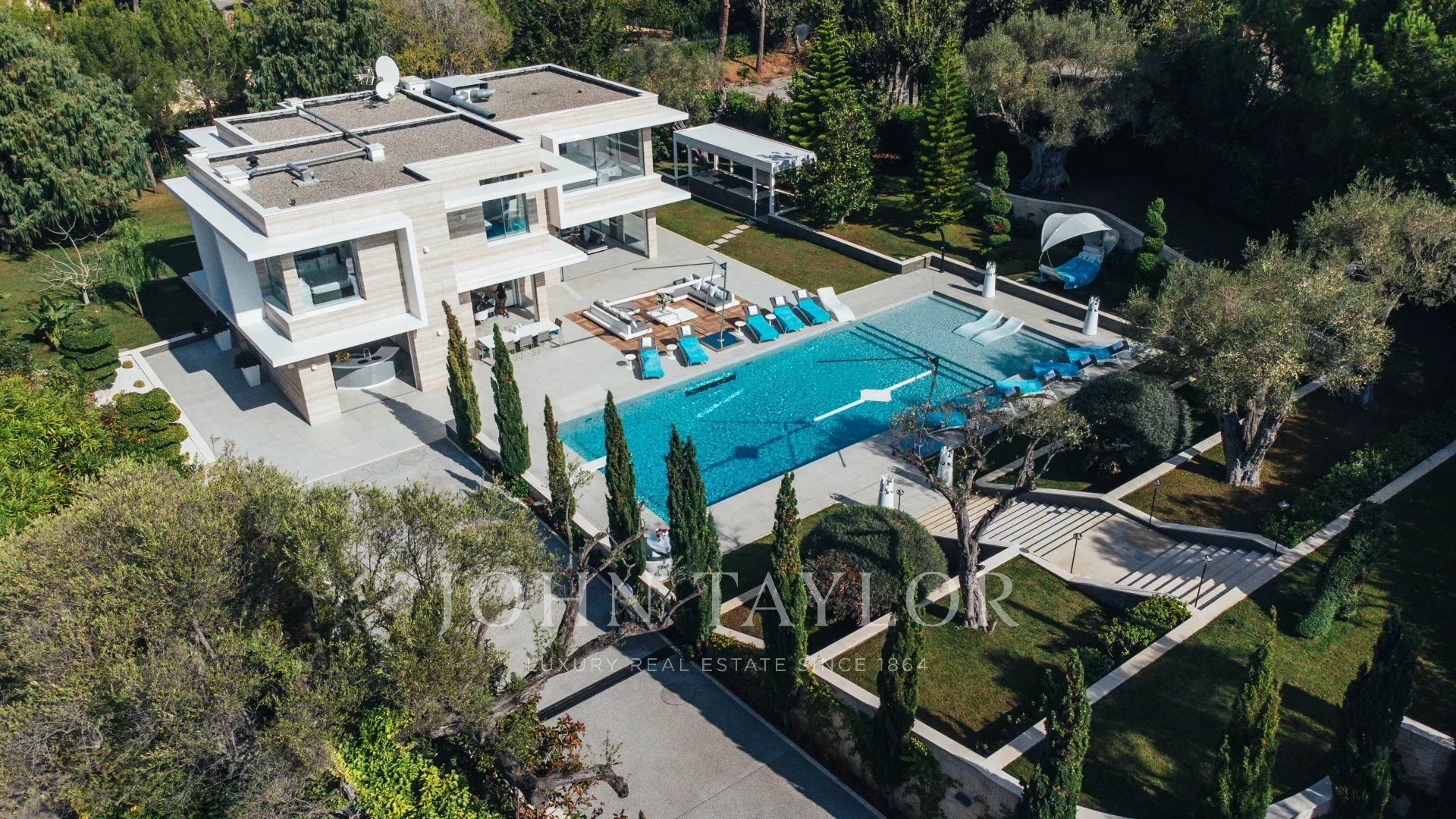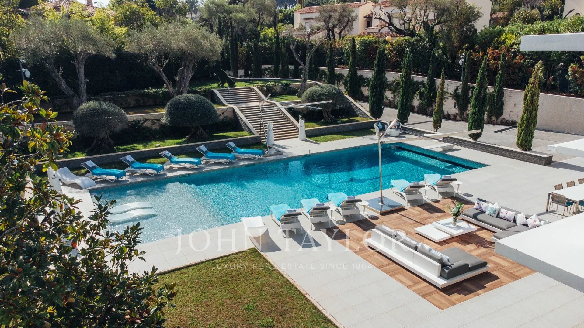 Propriété d'exception située au coeur du Cap d'Antibes bénéficiant d'un grand jardin méditerranéen plat de 3308 m² avec piscine et pool house.