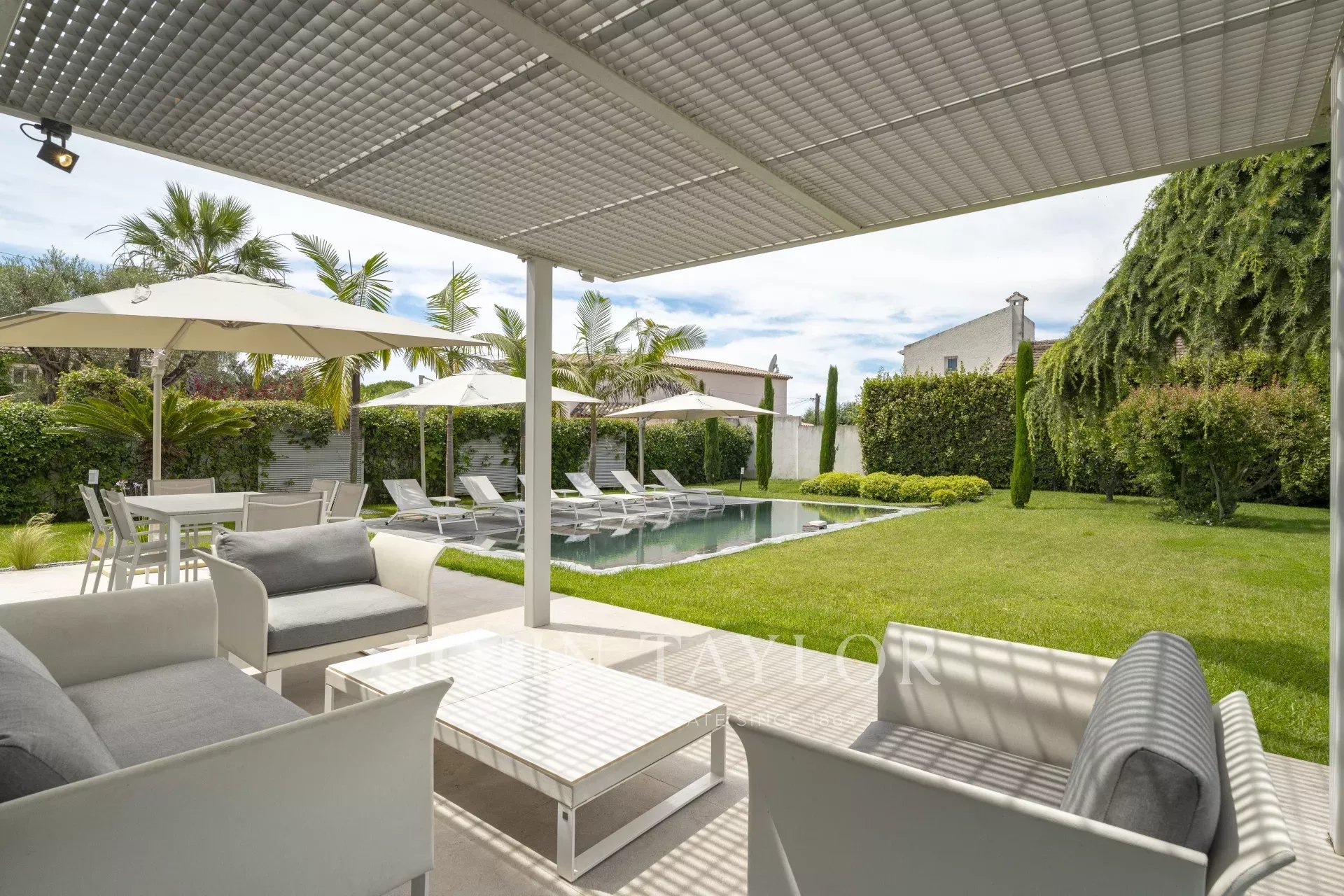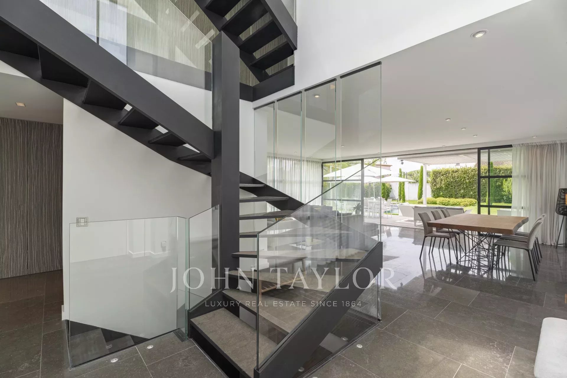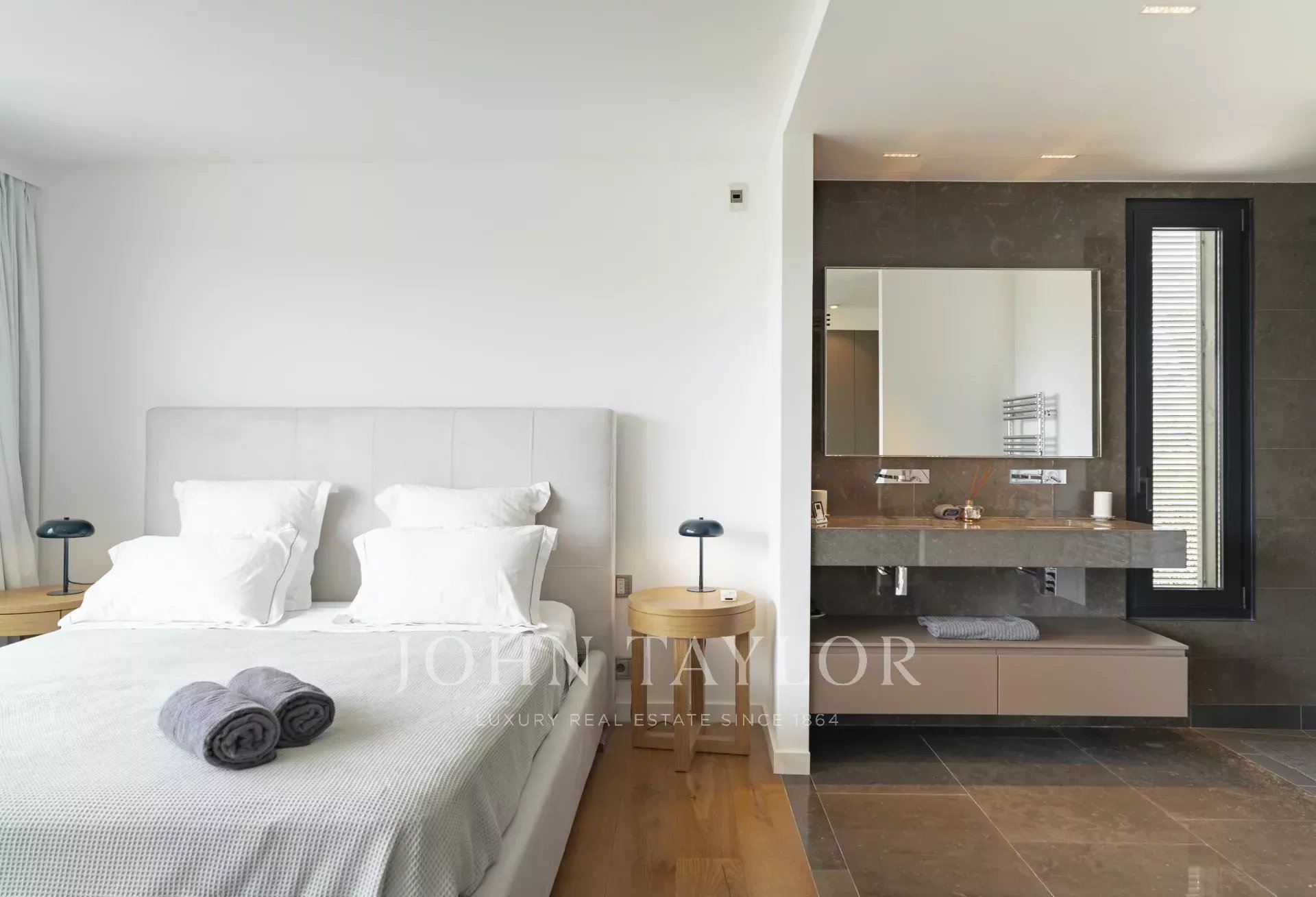 Belle villa contemporaine terminée à l'été 2020, offrant 320 m² de surface habitable au coeur d'un terrain de 940 m² et bénéficiant de belles vues sur la mer (la baie de Juan les Pins et les Iles de Lerins) depuis son toit-terrasse/solarium.