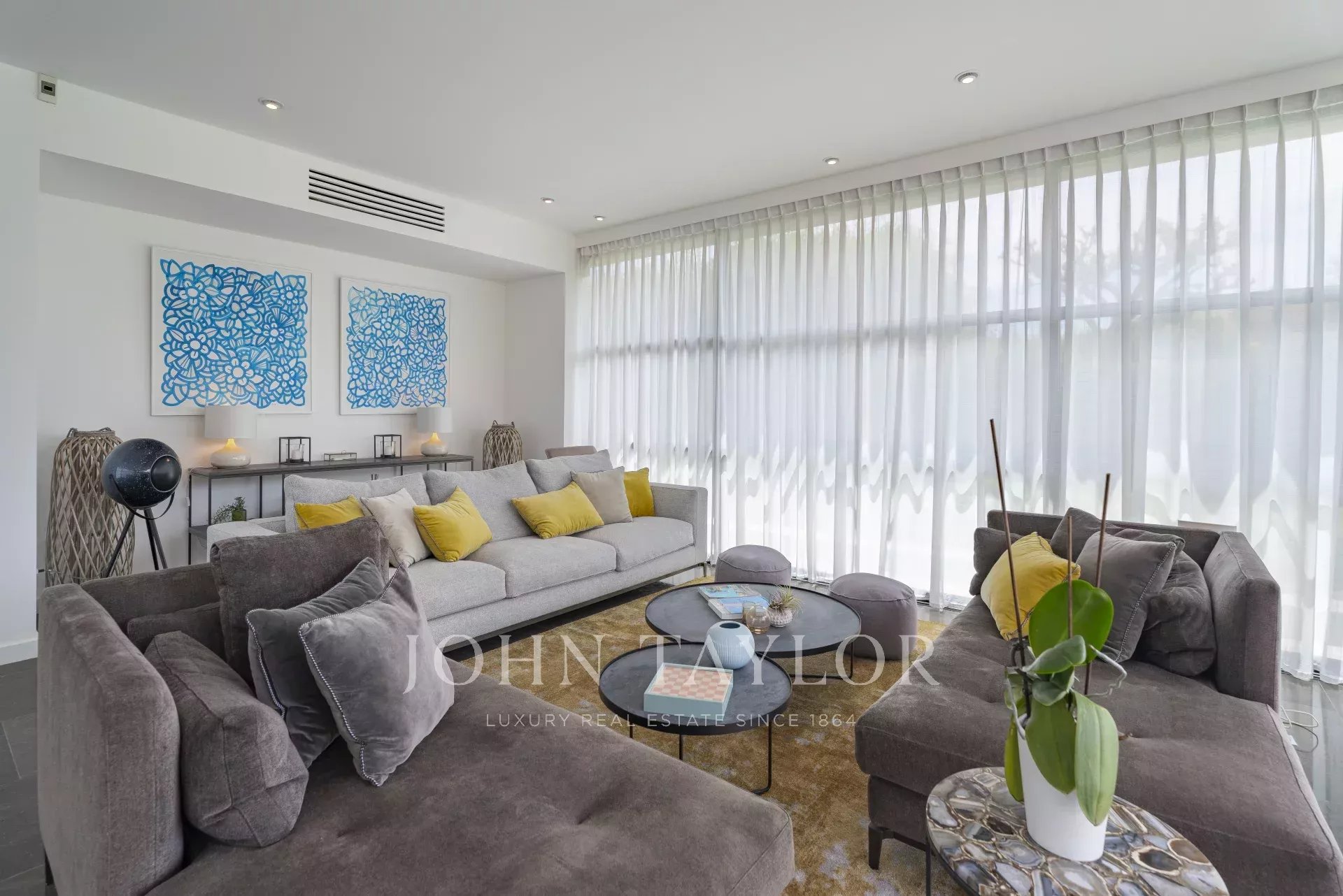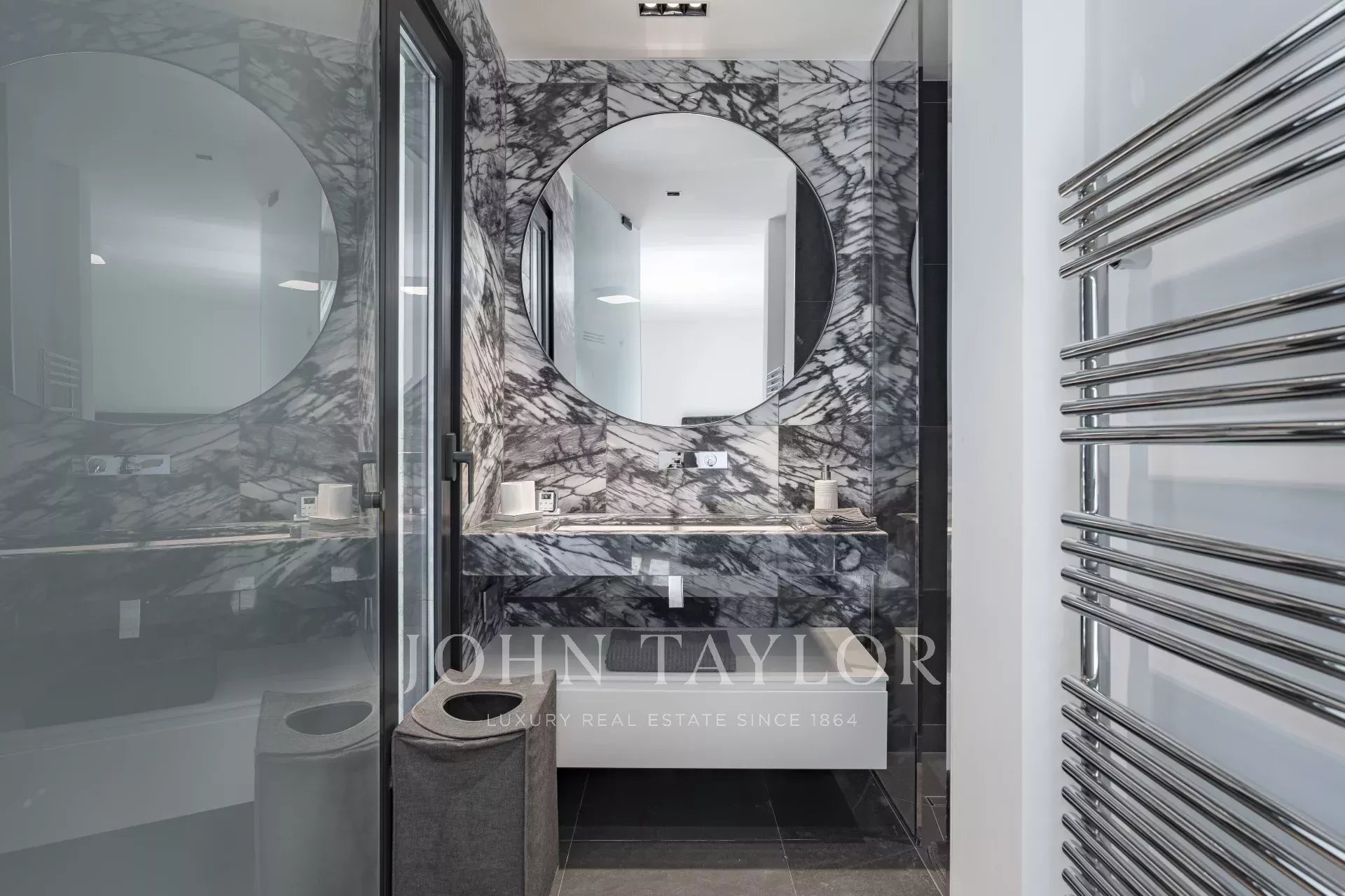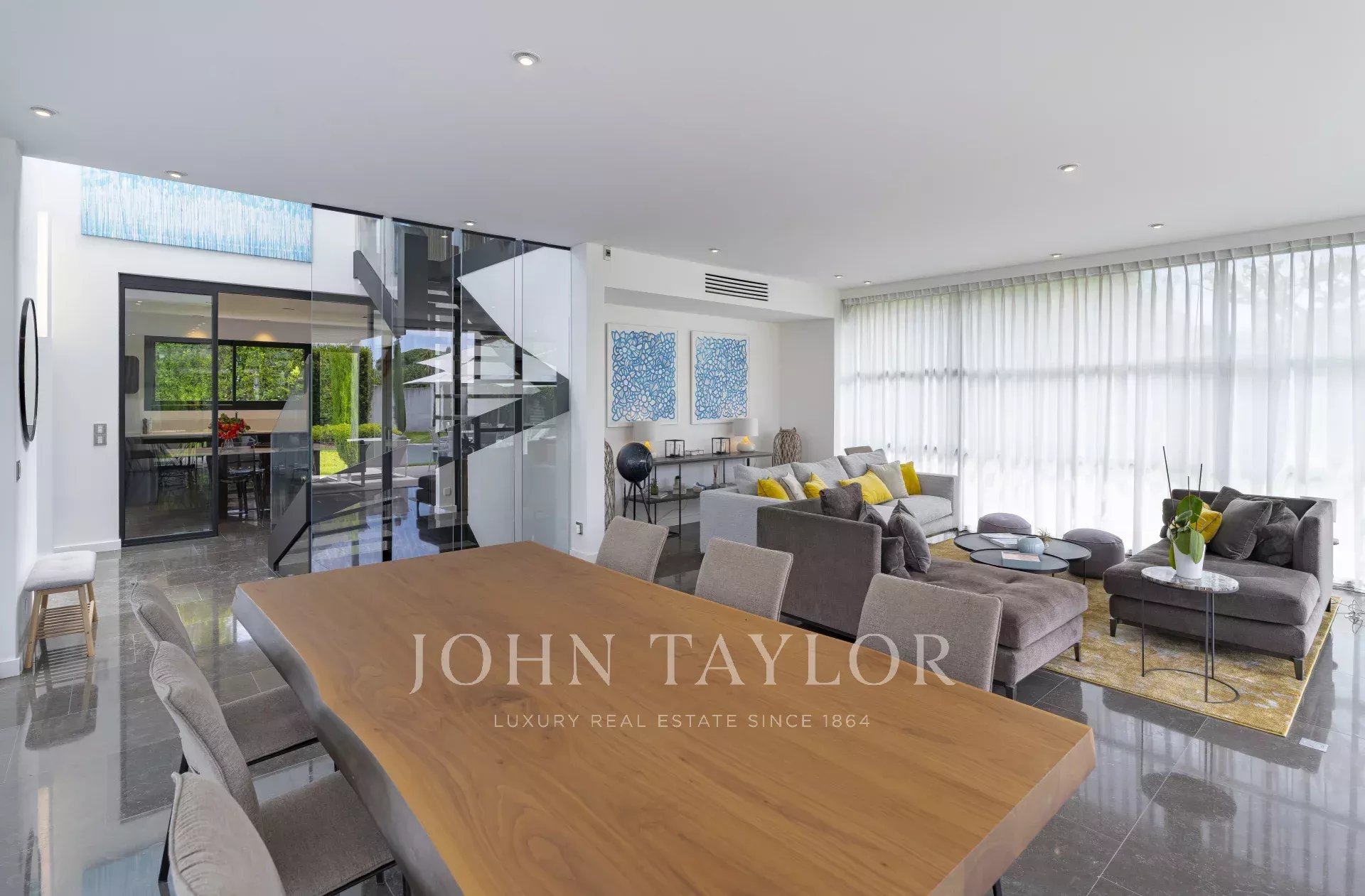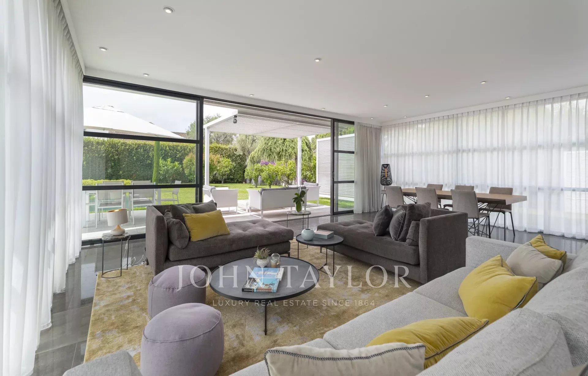 Belle villa contemporaine terminée à l'été 2020, offrant 320 m² de surface habitable au coeur d'un terrain de 940 m² et bénéficiant de belles vues sur la mer (la baie de Juan les Pins et les Iles de Lerins) depuis son toit-terrasse/solarium.