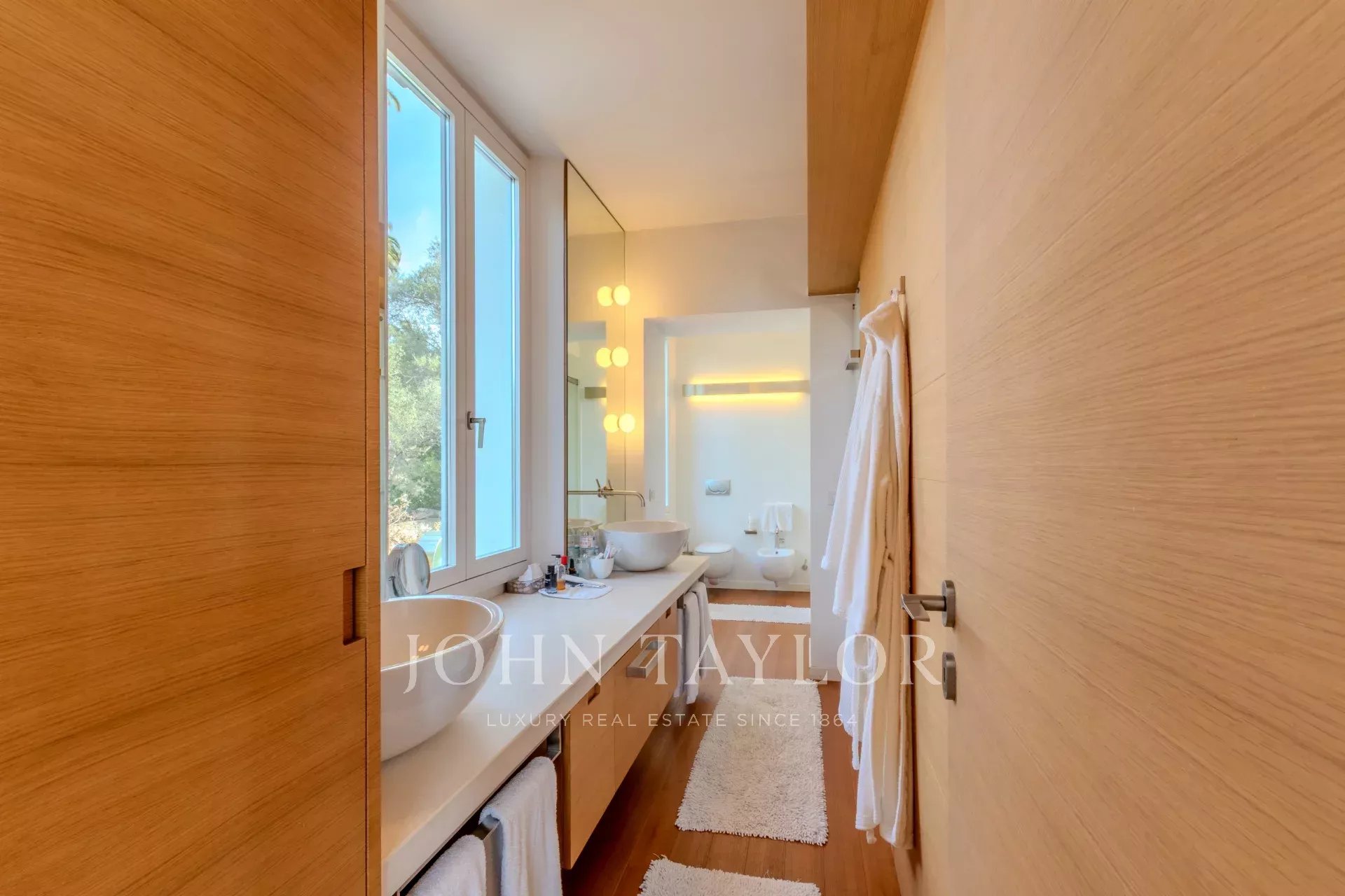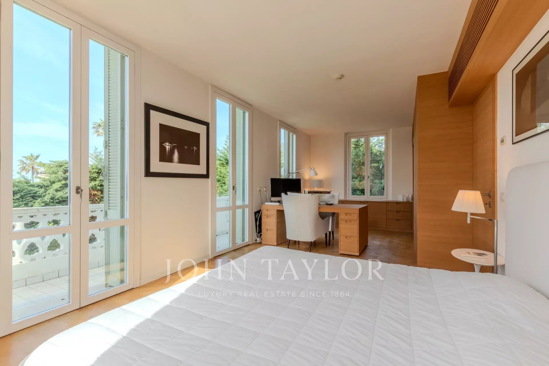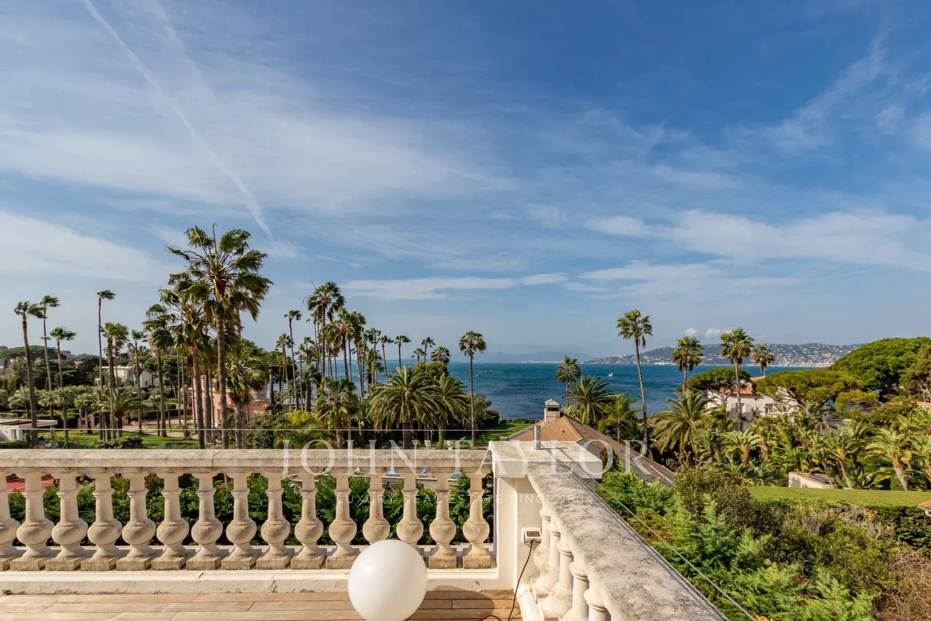 Terrasse solarium bénéficiant d'une très belle vue mer sur la baie de Juan les Pins et les iles de Lérins.