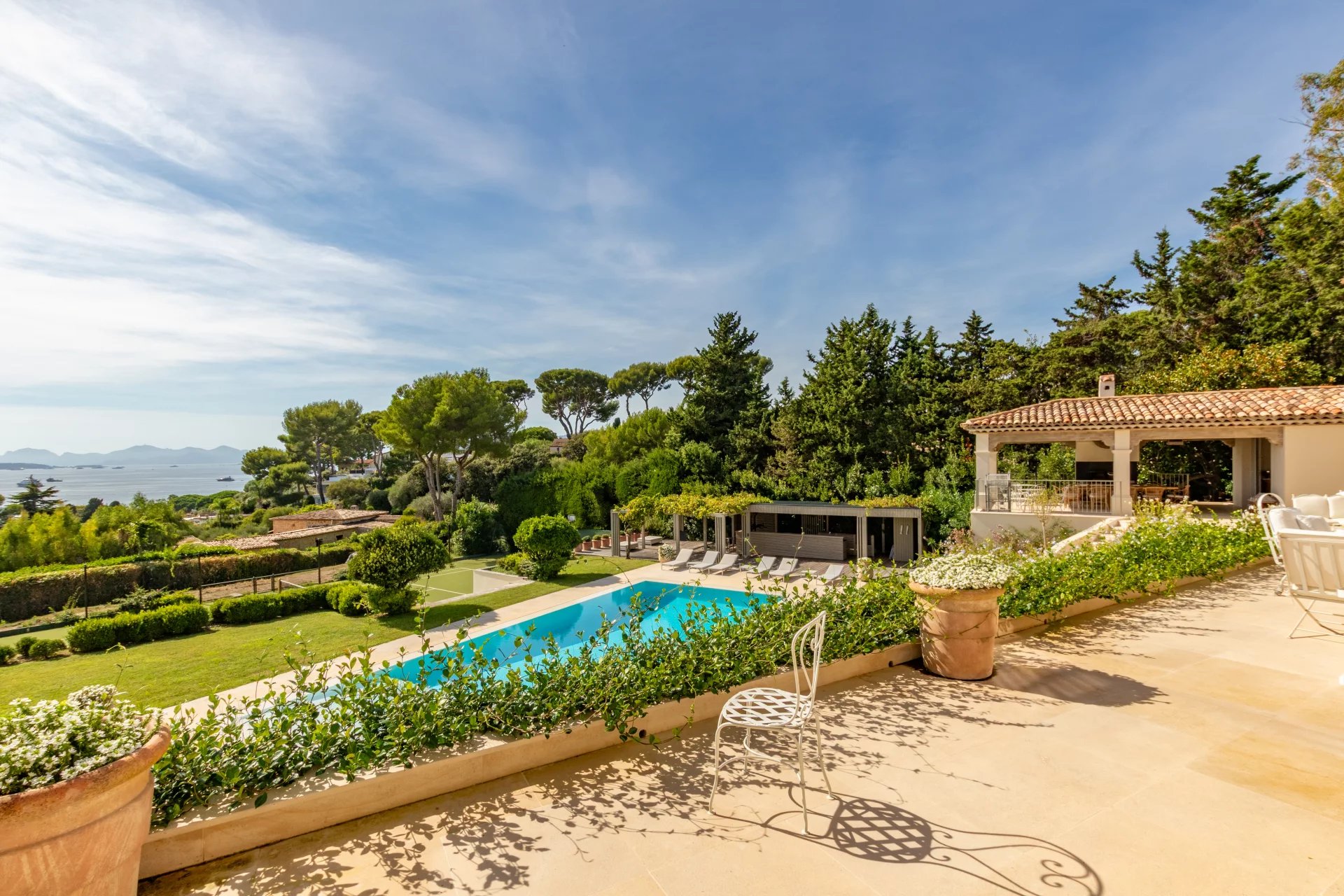 Magnifique propriété récemment rénovée avec gout et qualité; bénéficiant d'une vue mer panoramique sur la baie de Cannes, les iles de Lérins et l'Estérel.