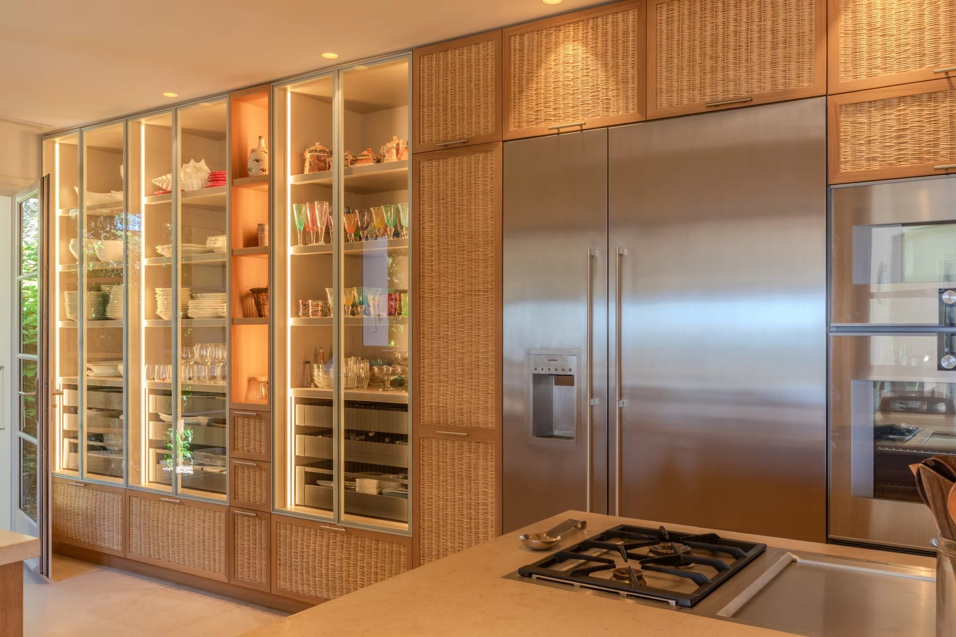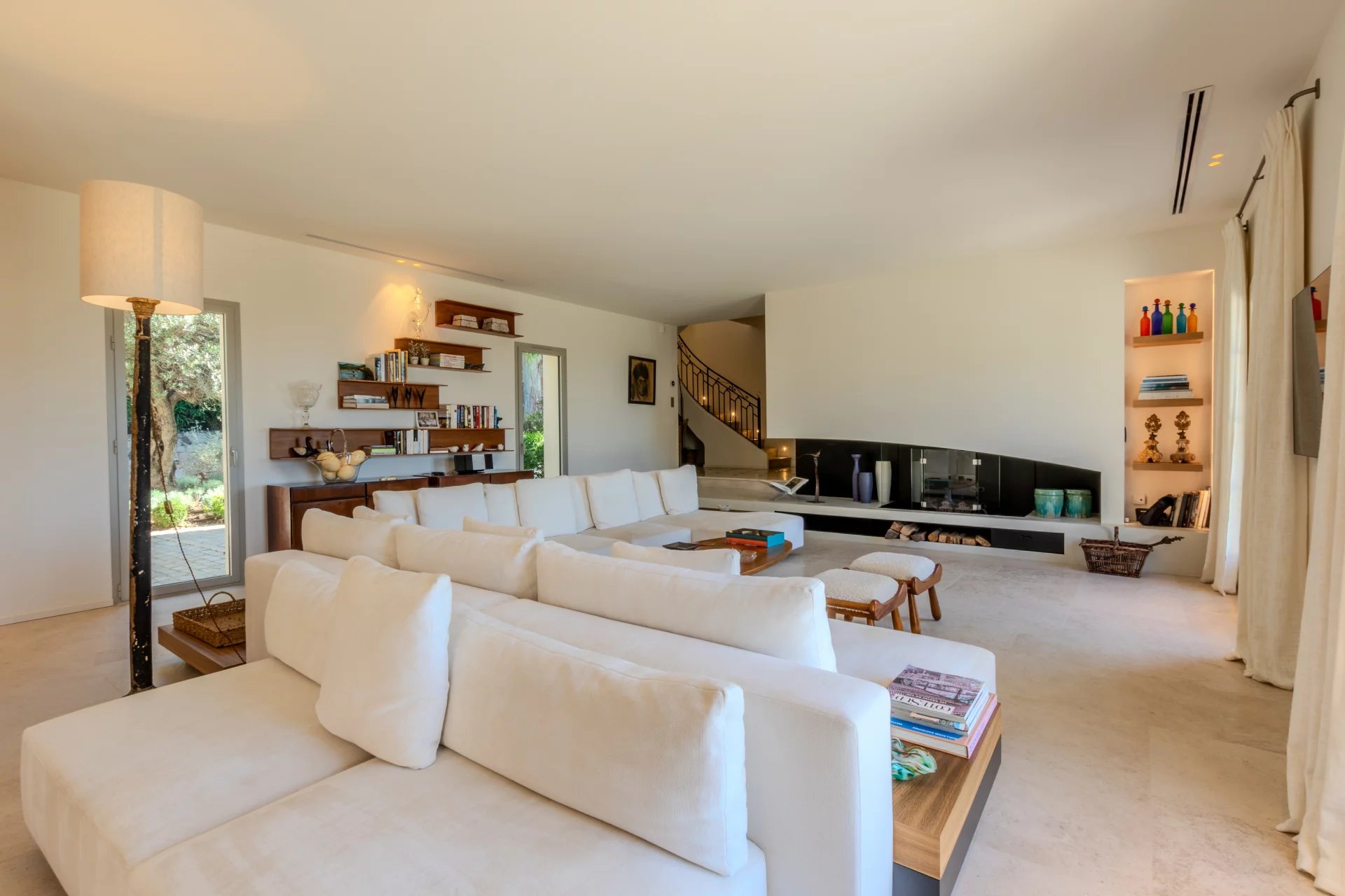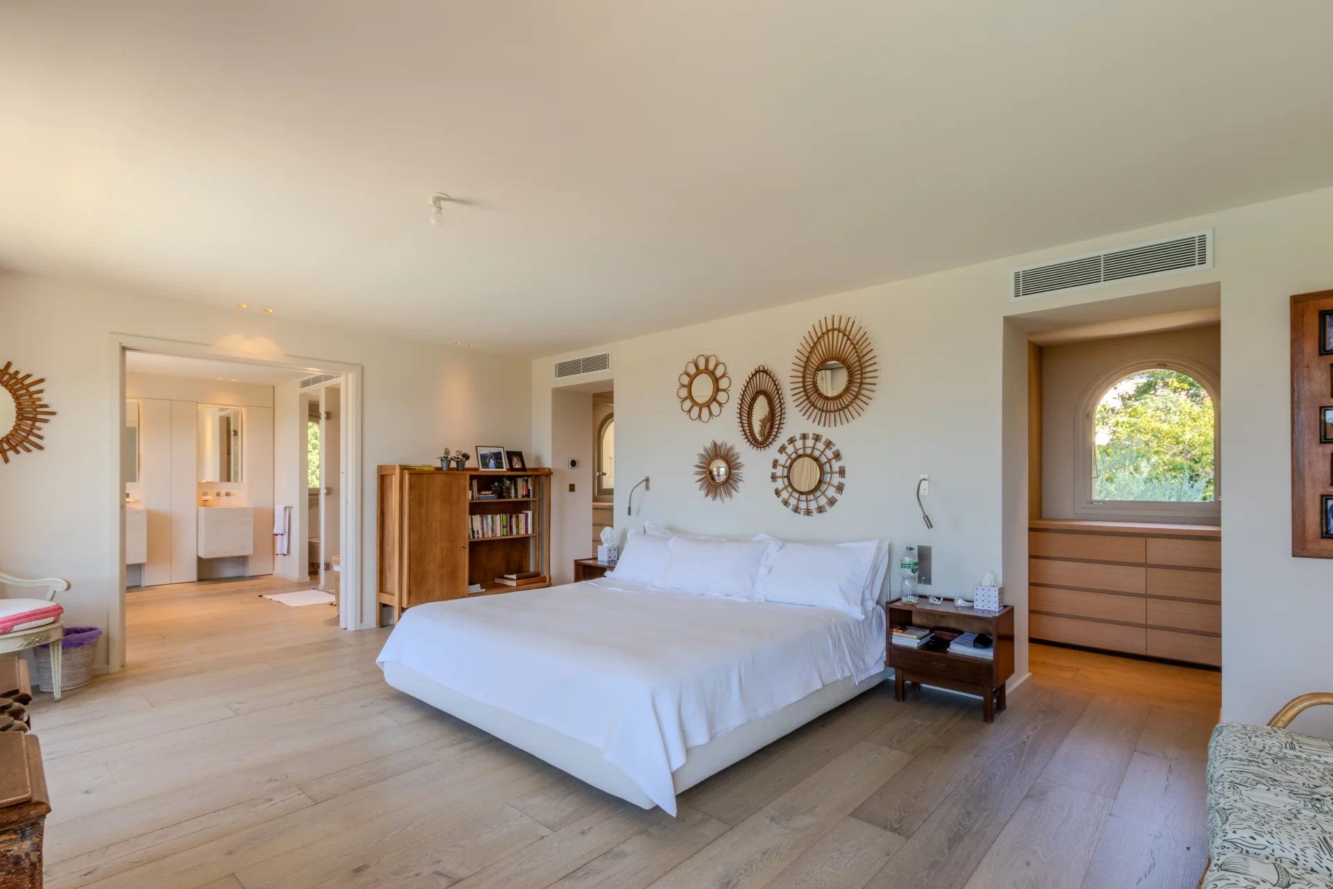 Un hall d'entrée, une WC invité, un grand salon sur de larges terrasses, une salle à manger donnant une sur terrasse couverte avec BBQ, une large cuisine équipée, une buanderie avec chambre froide. Un couloir donnant accès à trois chambres en-suite avec salles de bains et placards donnant accès des terrasses.