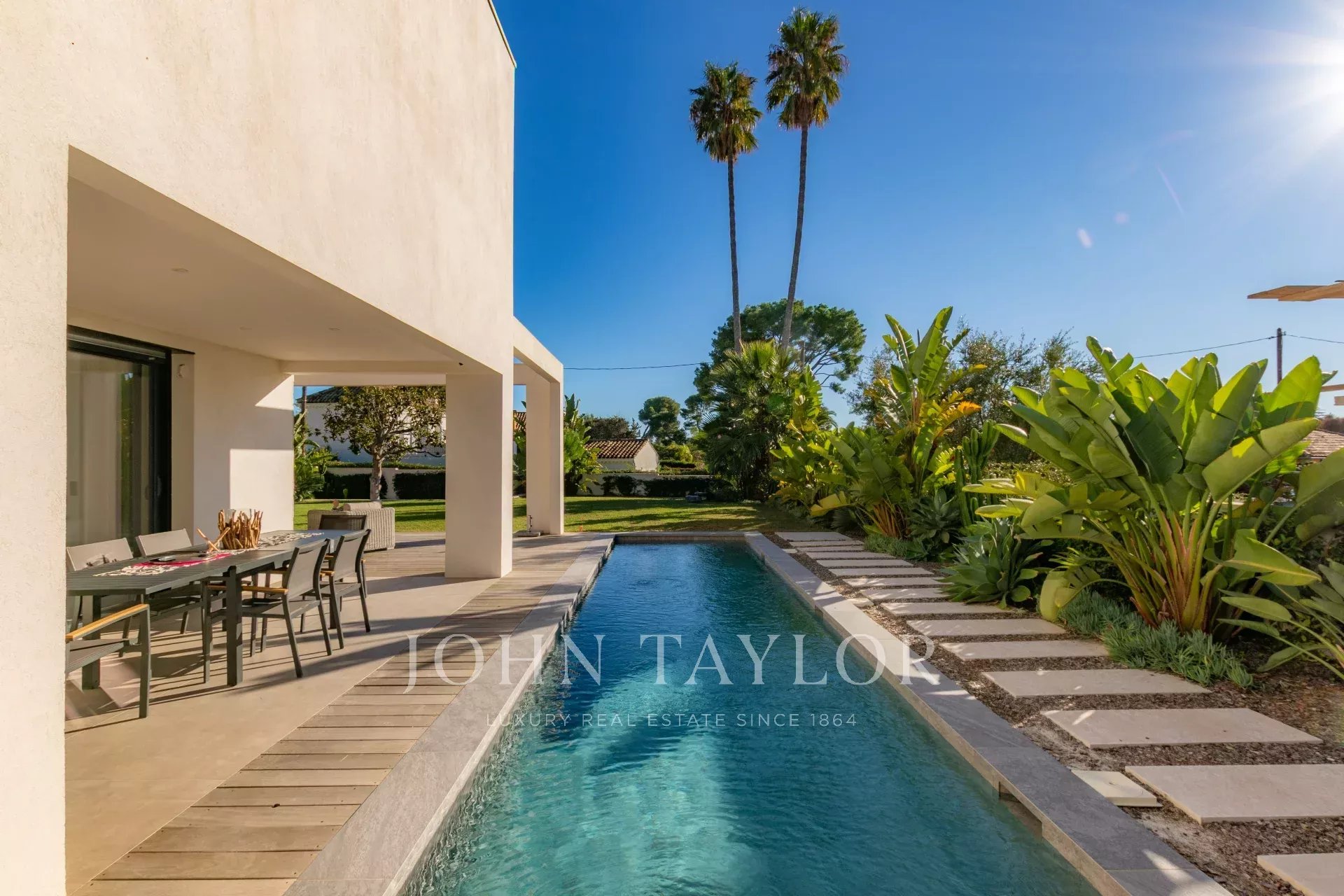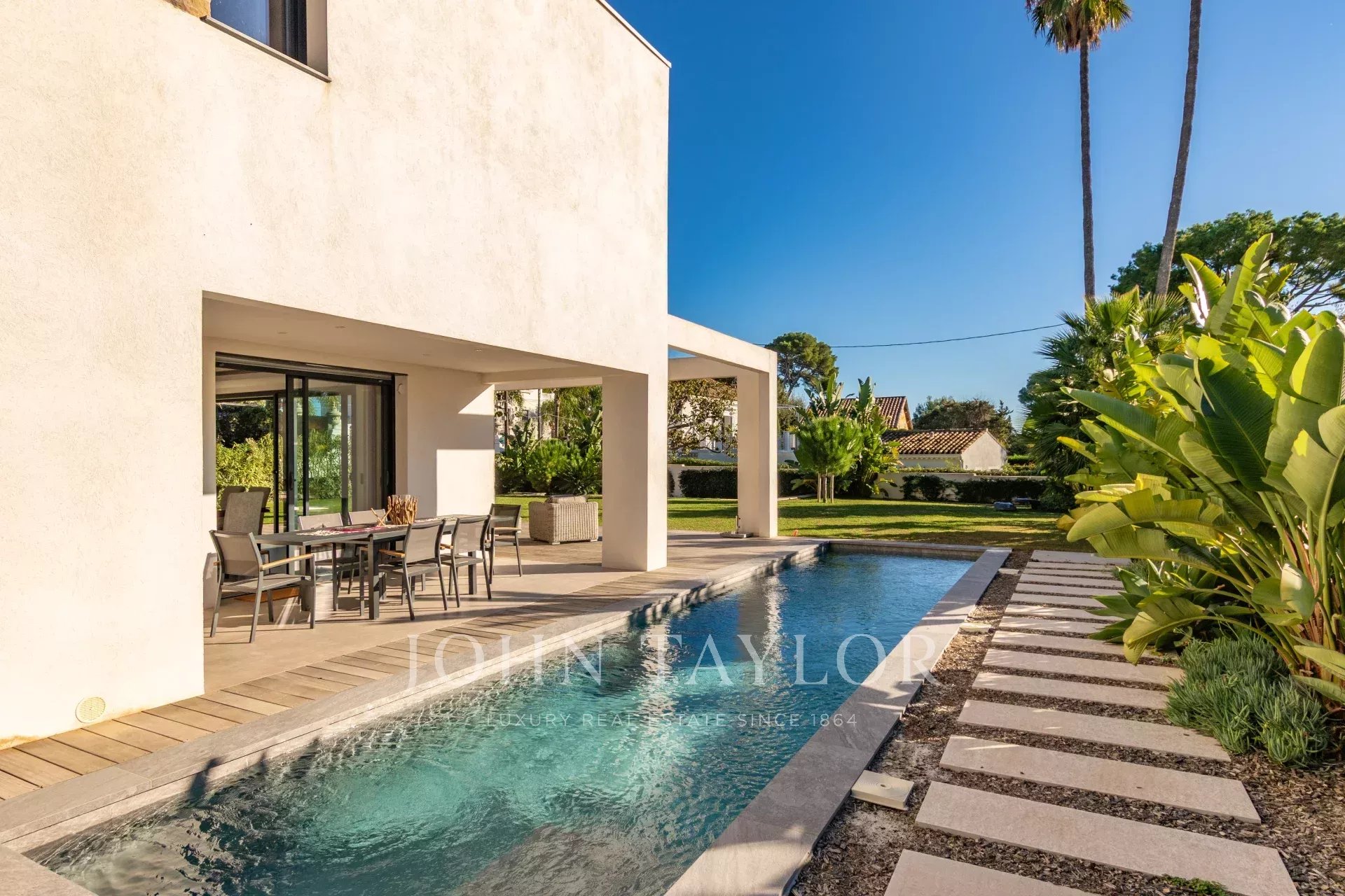 Villa contemporaine neuve terminée en 2023. Idéalement située dans le cap d'Antibes, à 300m de la plage de la Garoupe et 150 m des commerces.