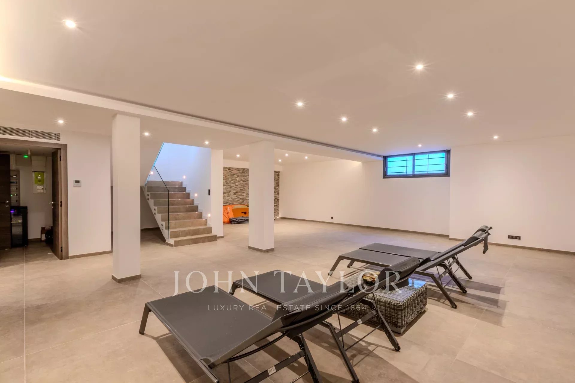 Une grande pièce pouvant servir de spa ou cinéma, locaux techniques et une salle de douche