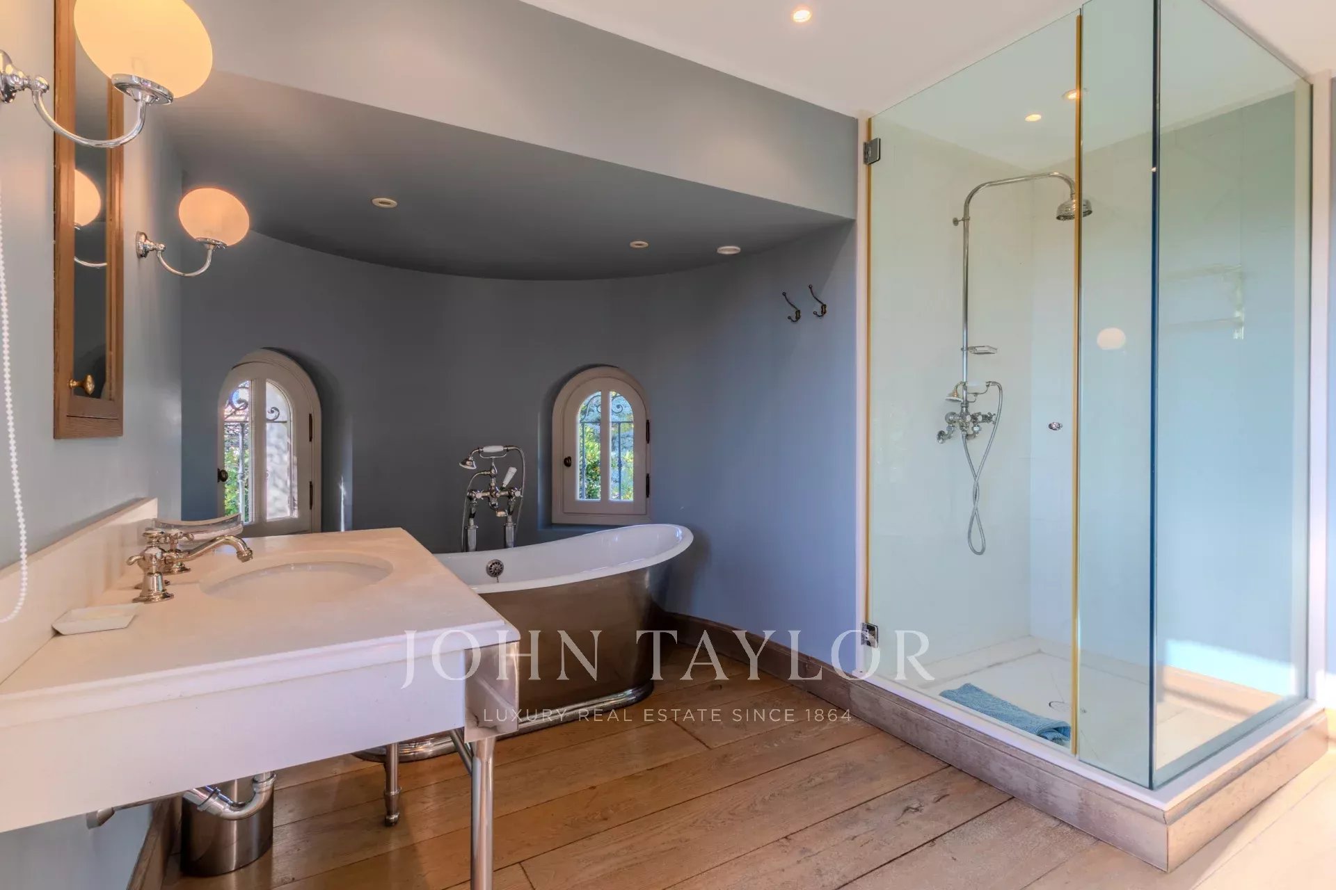 Elle se situe idéalement dans le Cap d'Antibes, sur le versant ouest proches du centre ville de Juan les Pins, le Port Gallice et les plages.