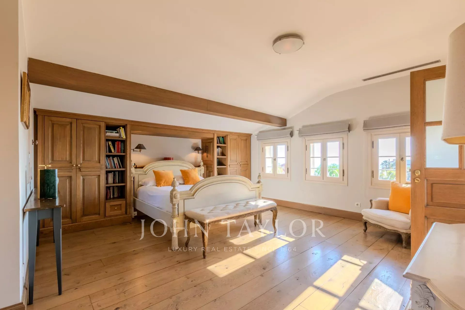 Une chambre de maitre avec dressing et salle de bains avec douche et terrasse.