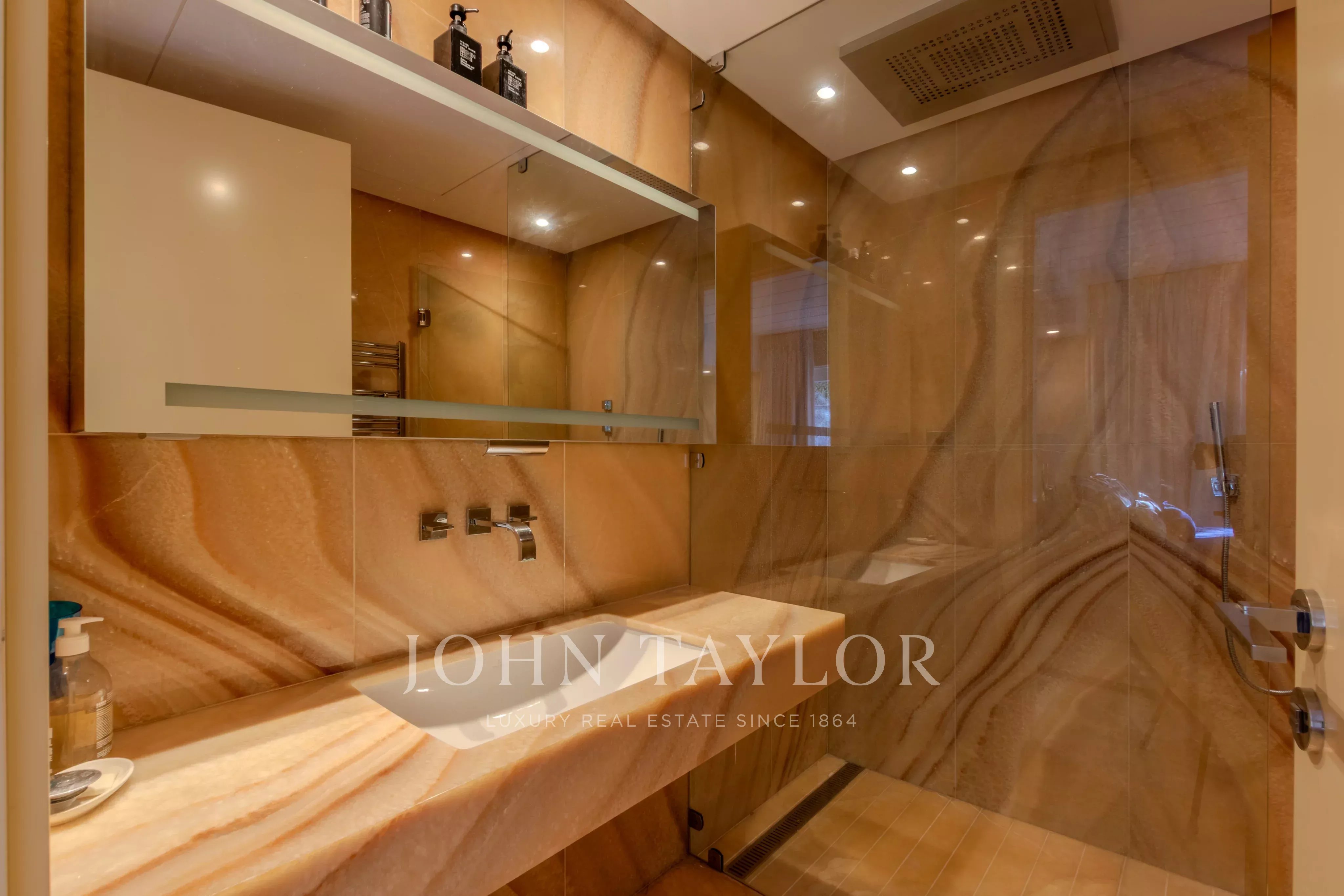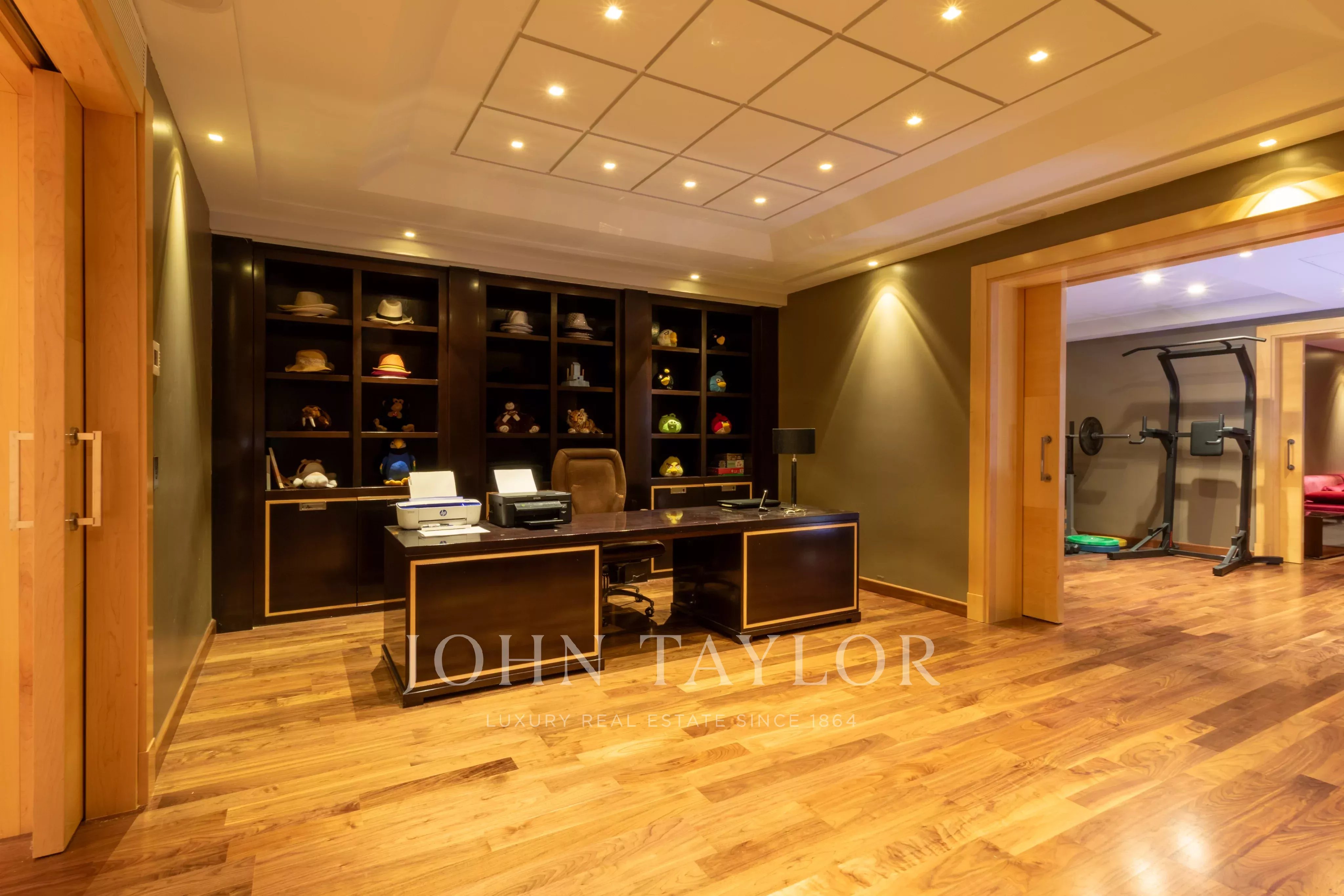 Au sous-sol: dégagement, cave à vin, salle de gym, salle de cinéma, un bureau, une chambre avec salle de douche.
