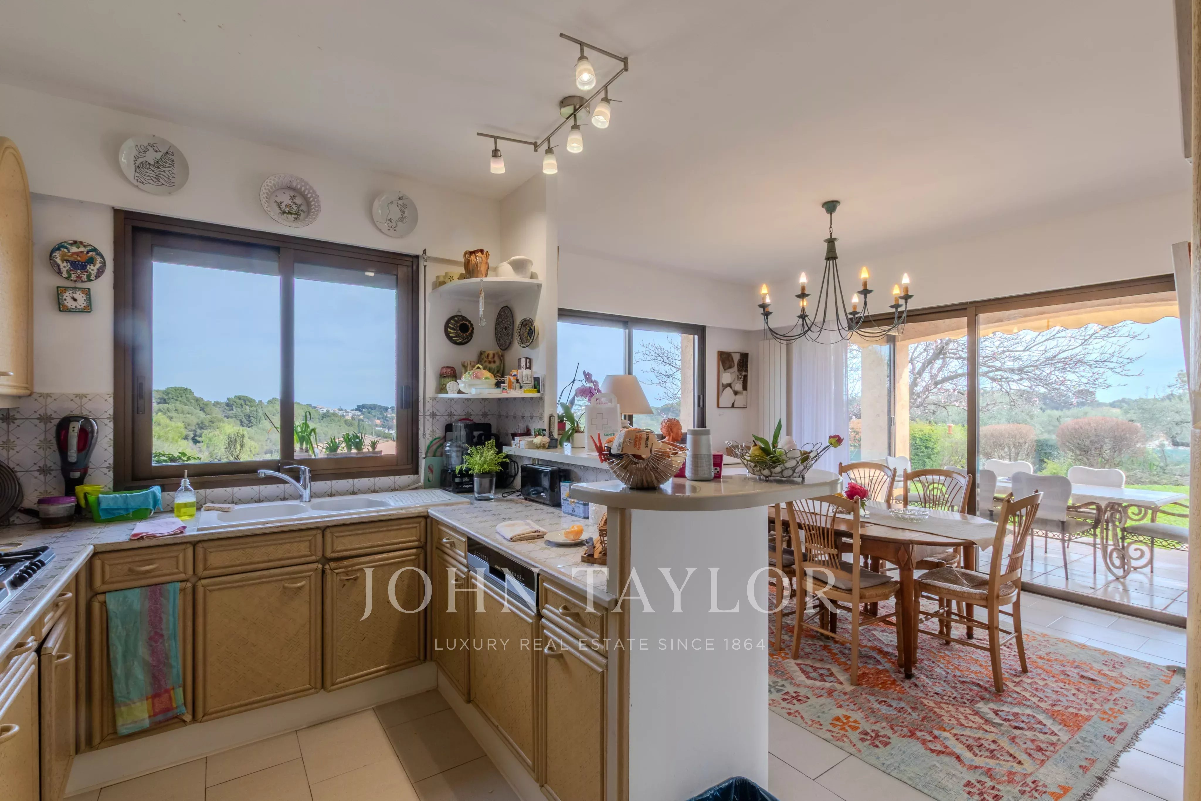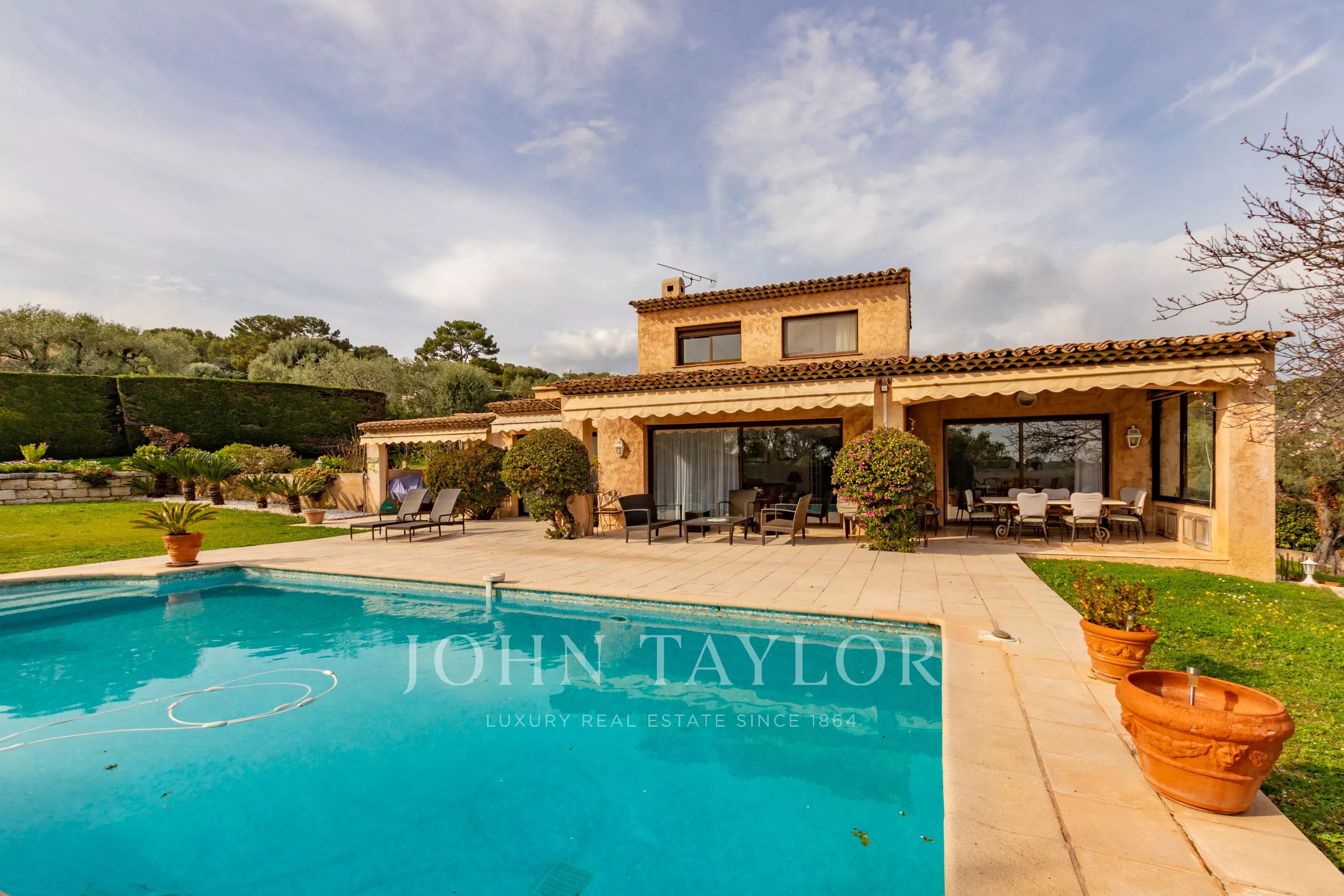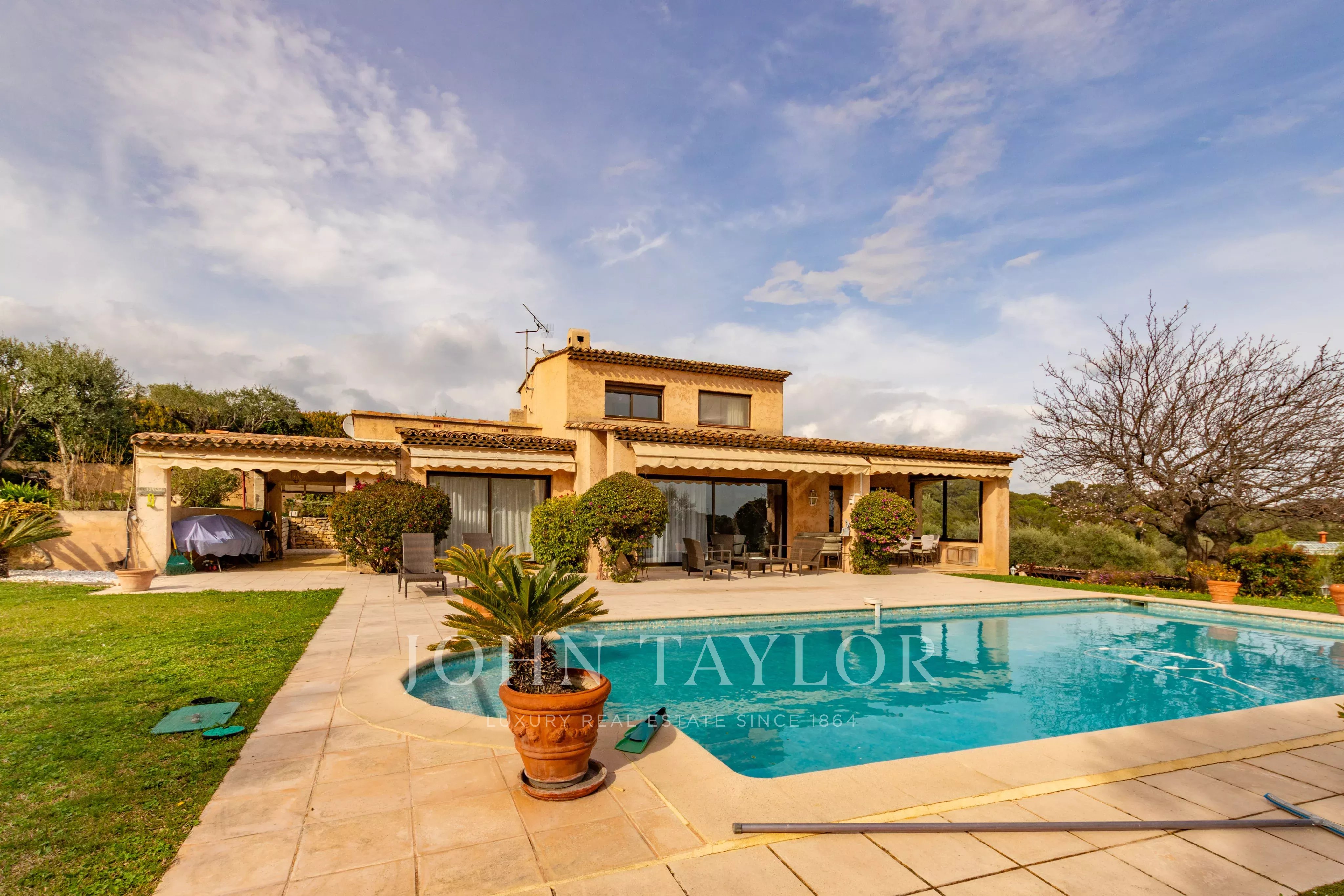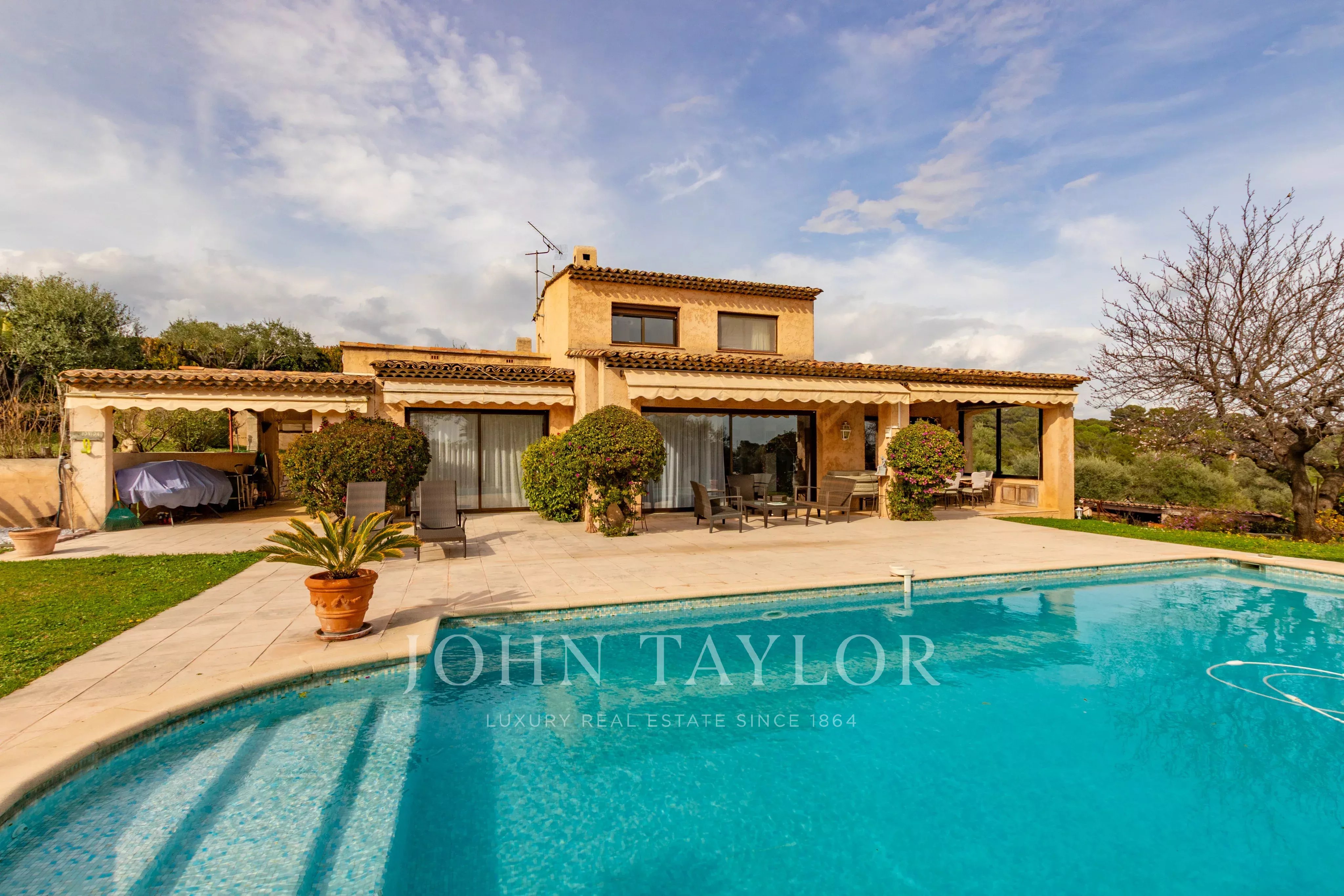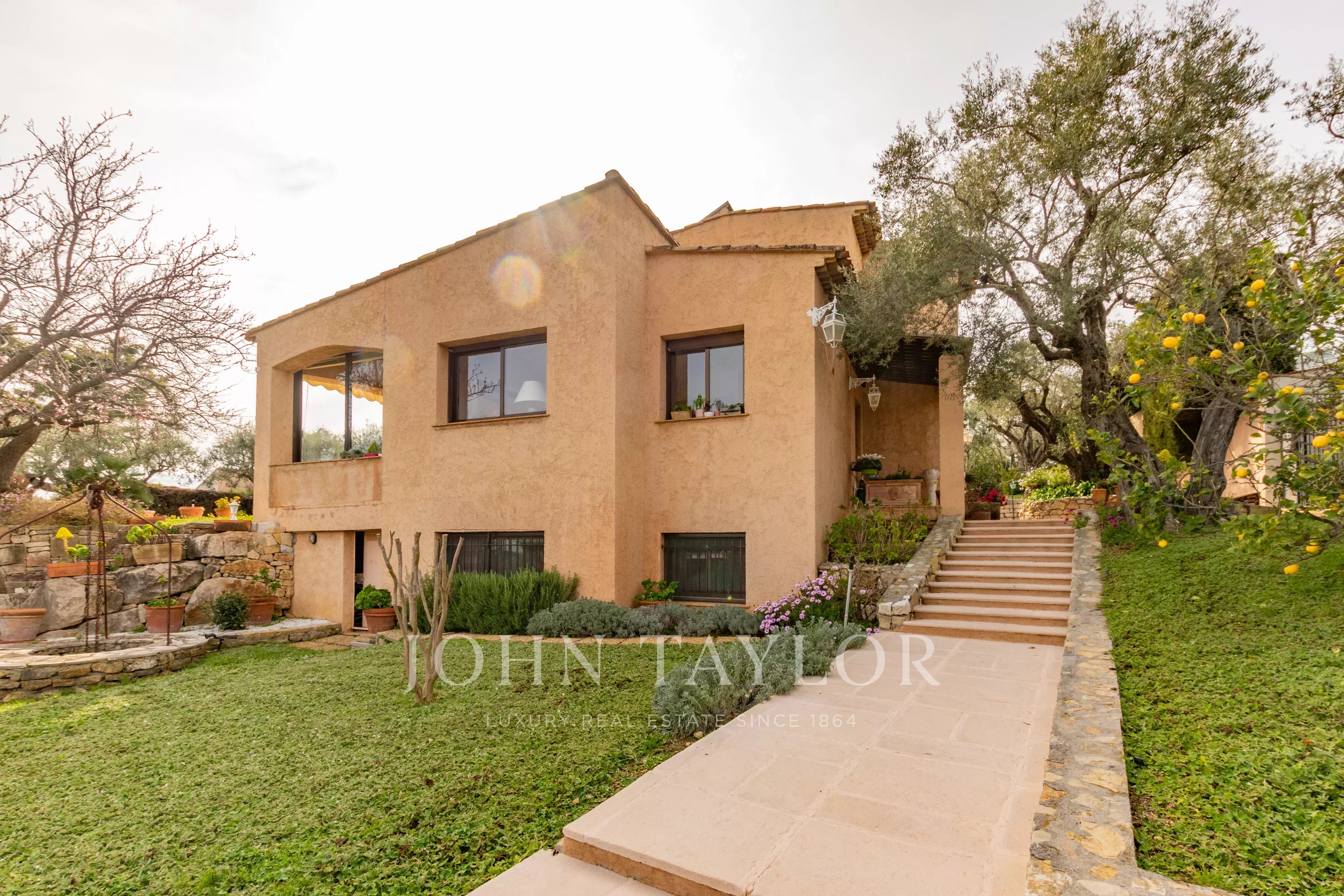 Nichée sur les hauteurs d'Antibes avec vue dégagée jusqu'à la mer, cette villa de charme jouit d'une exposition sud généreuse. Les façades dorées, les terrasses orientées sur un jardin magnifiquement arborisé avec oliviers productifs, abricotiers et arbre à citron, invitent à profiter pleinement du climat méditerranéen. La piscine bien exposée, la cuisine d'été et l'accès direct à la terrasse depuis le salon complètent ce cadre de vie exceptionnel.