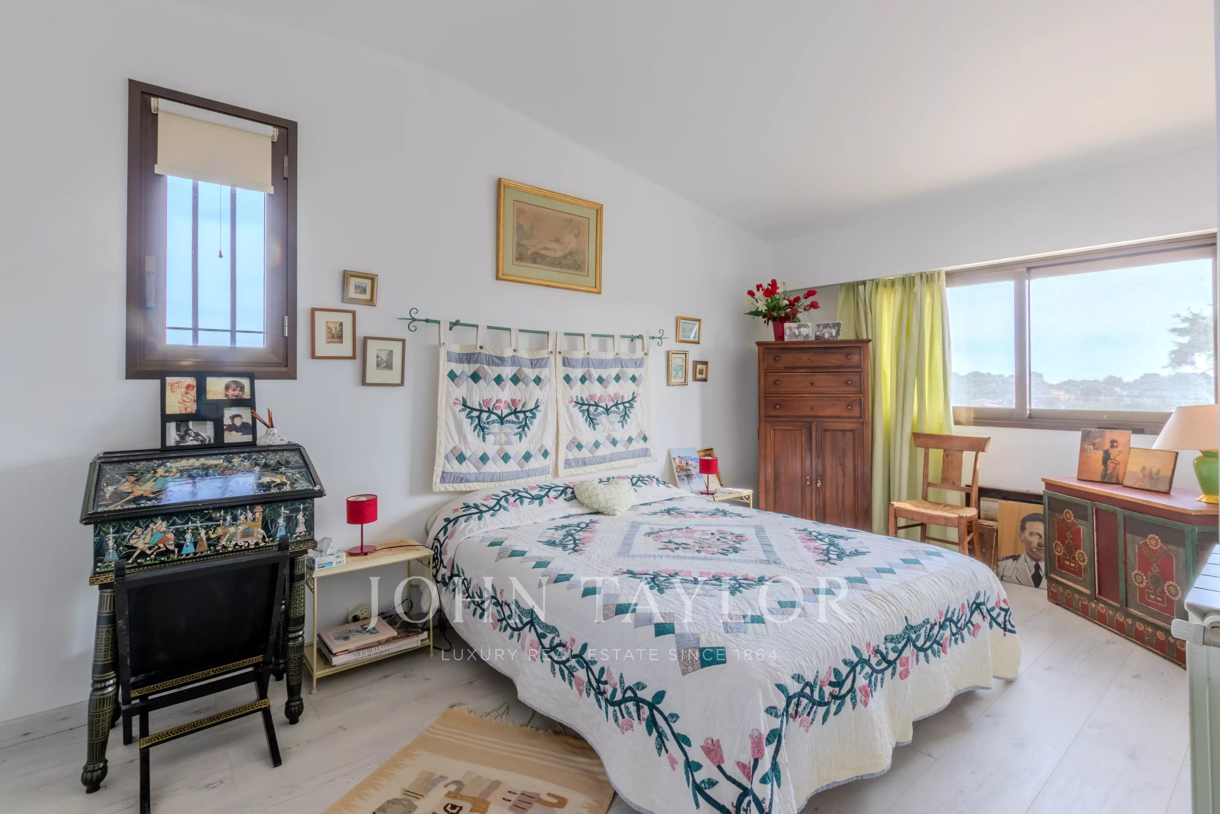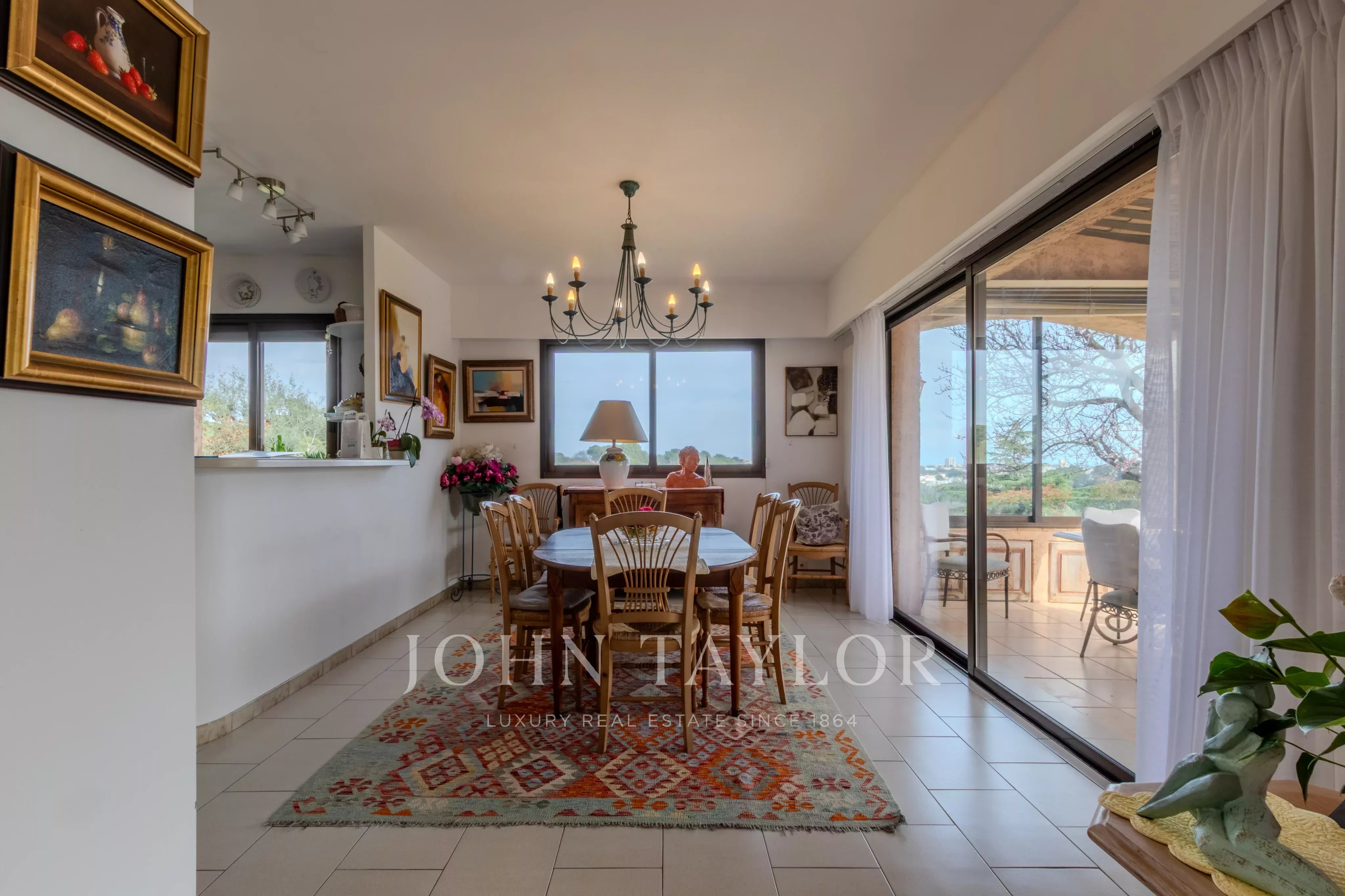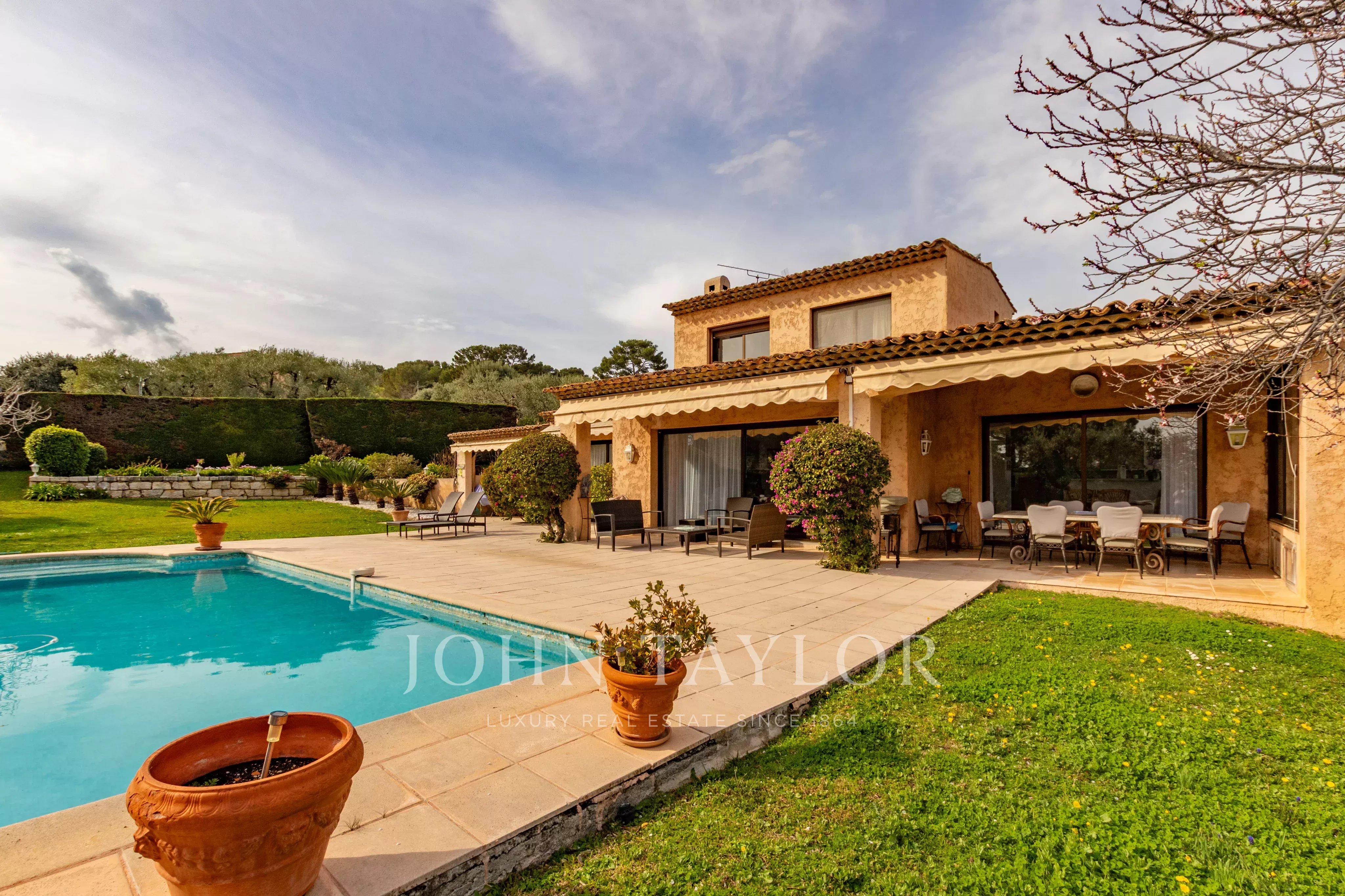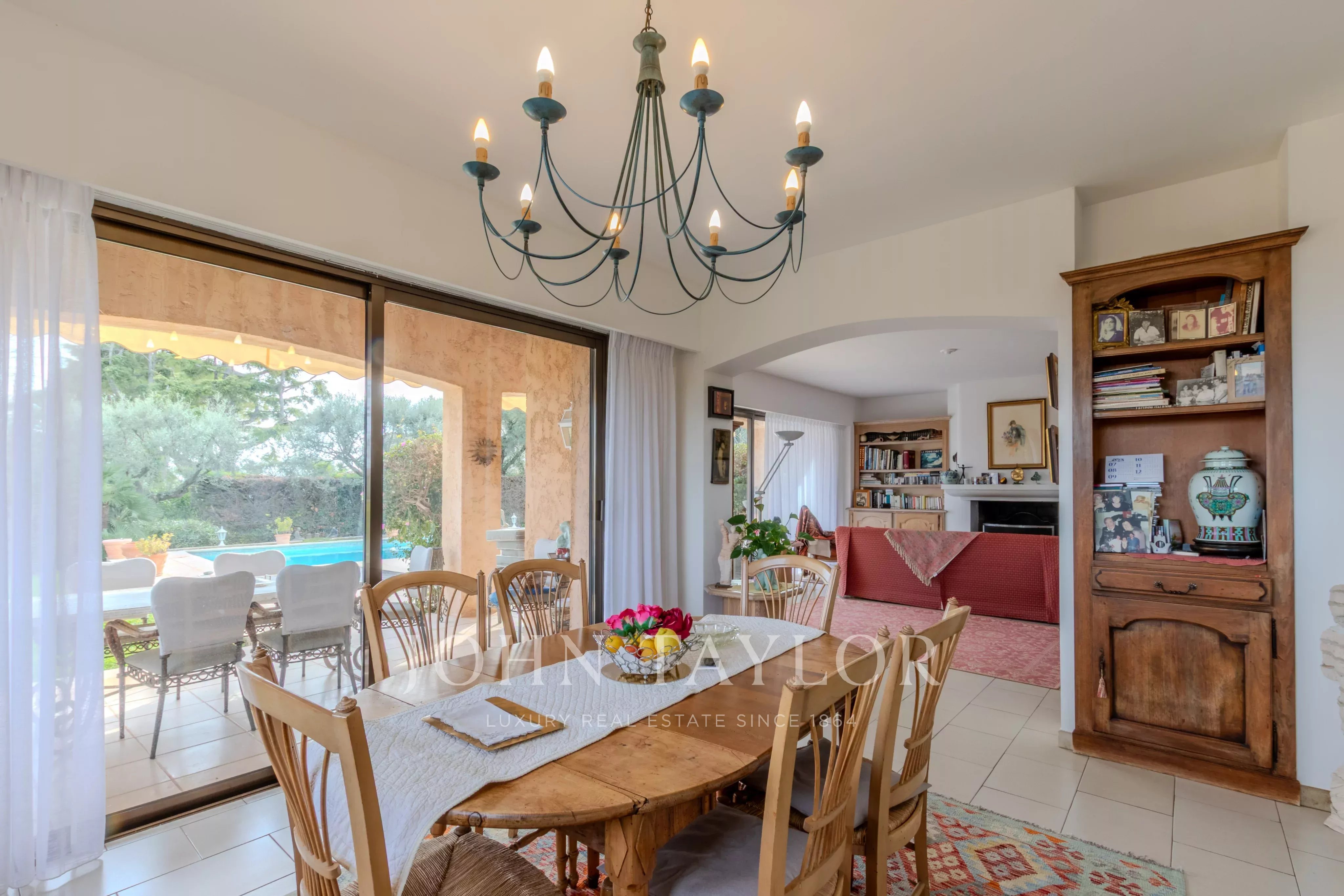 Nichée sur les hauteurs d'Antibes avec vue dégagée jusqu'à la mer, cette villa de charme jouit d'une exposition sud généreuse. Les façades dorées, les terrasses orientées sur un jardin magnifiquement arborisé avec oliviers productifs, abricotiers et arbre à citron, invitent à profiter pleinement du climat méditerranéen. La piscine bien exposée, la cuisine d'été et l'accès direct à la terrasse depuis le salon complètent ce cadre de vie exceptionnel.