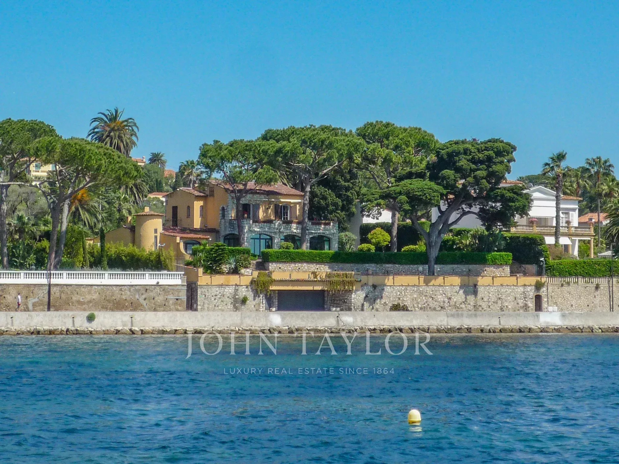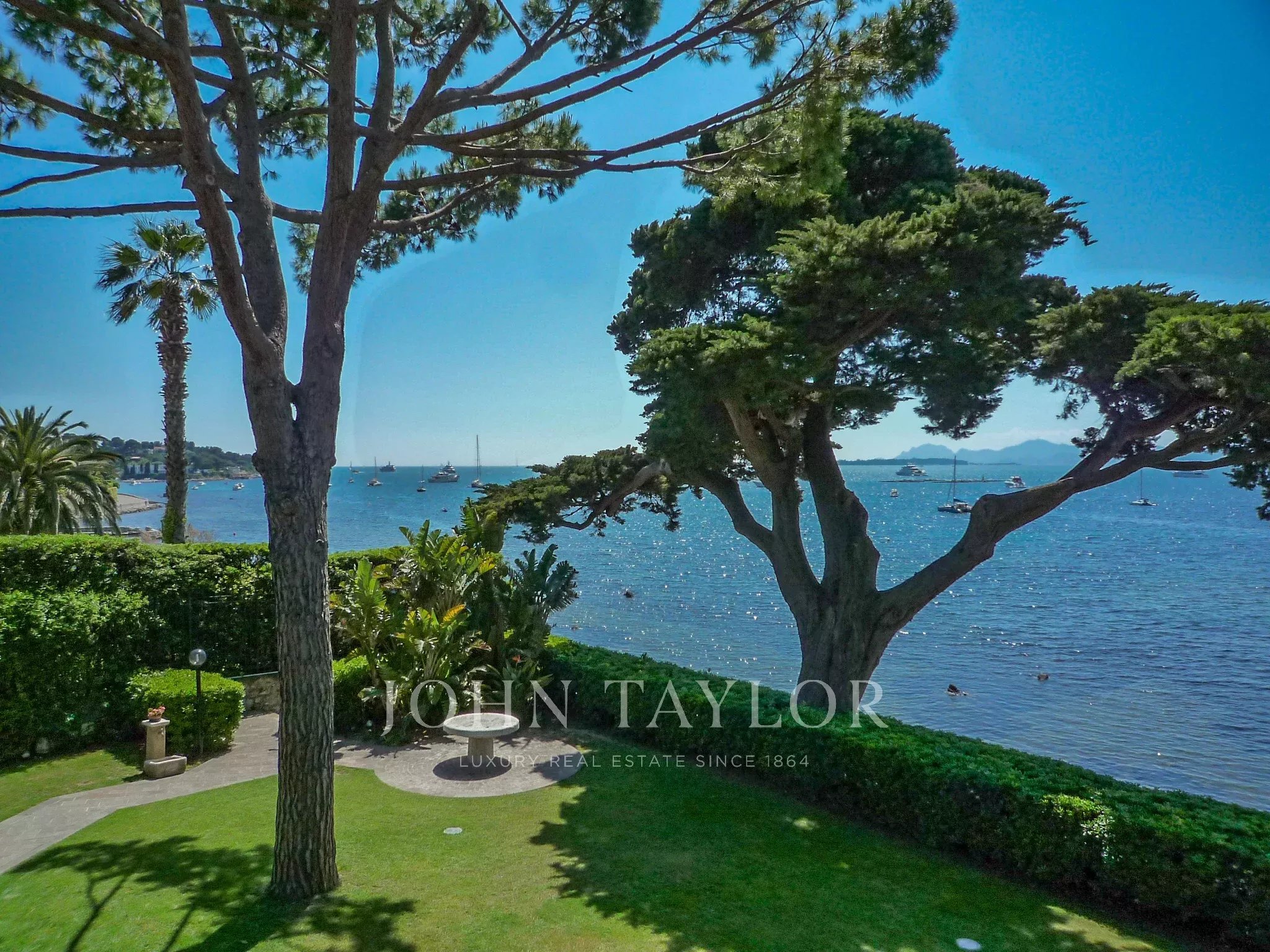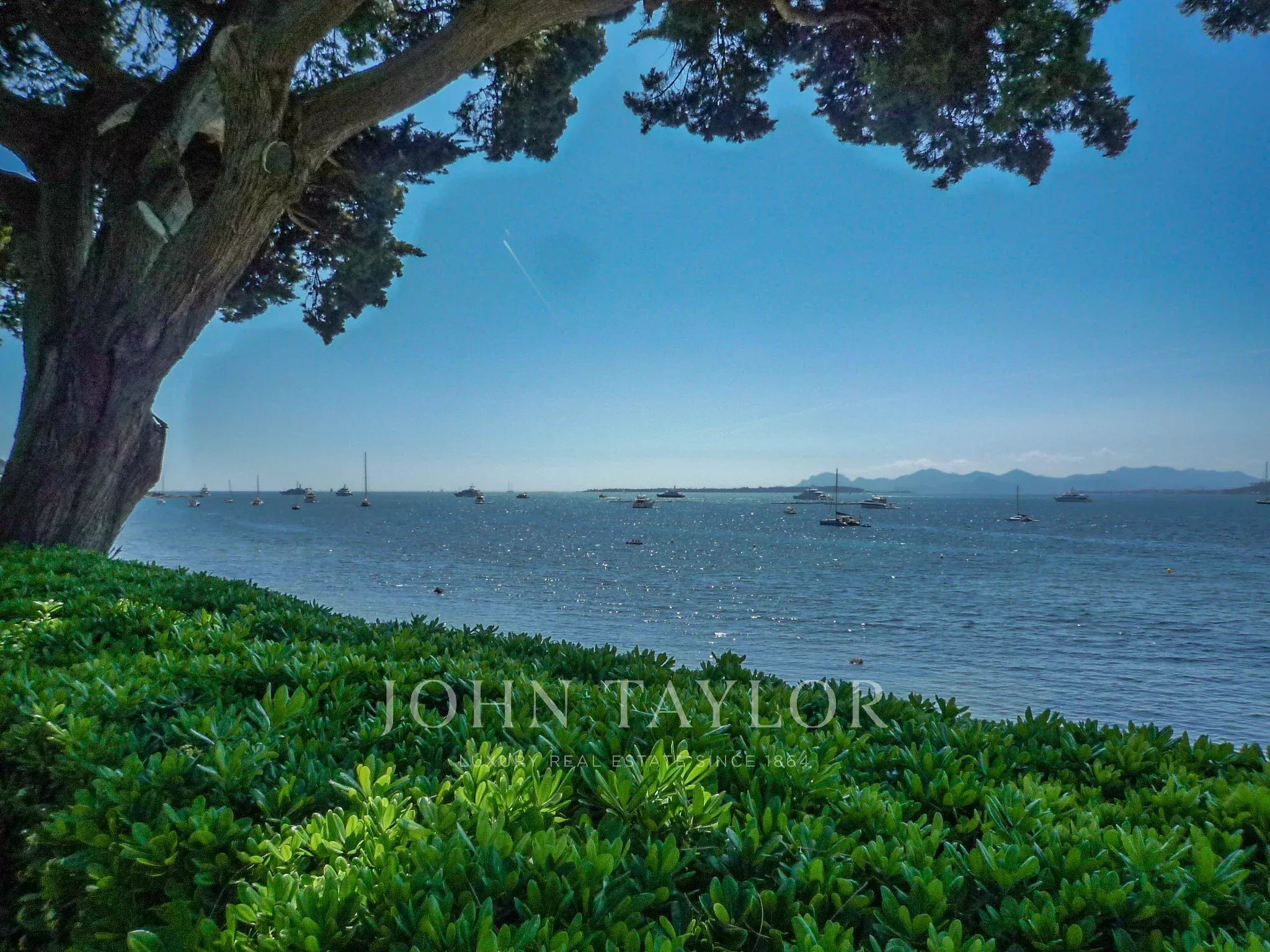 Magnifique propriété située sur le versant ouest du Cap d'Antibes. Elle offre une vue panoramique sur la mer, un vaste jardin plat avec des arbres centenaires.