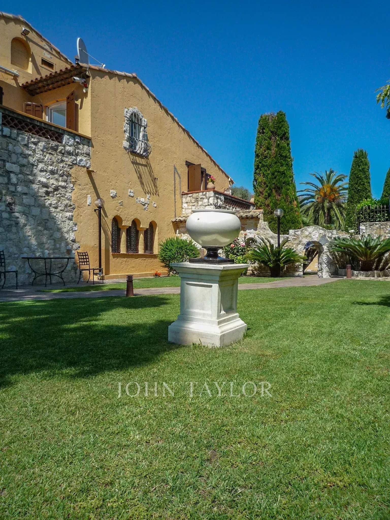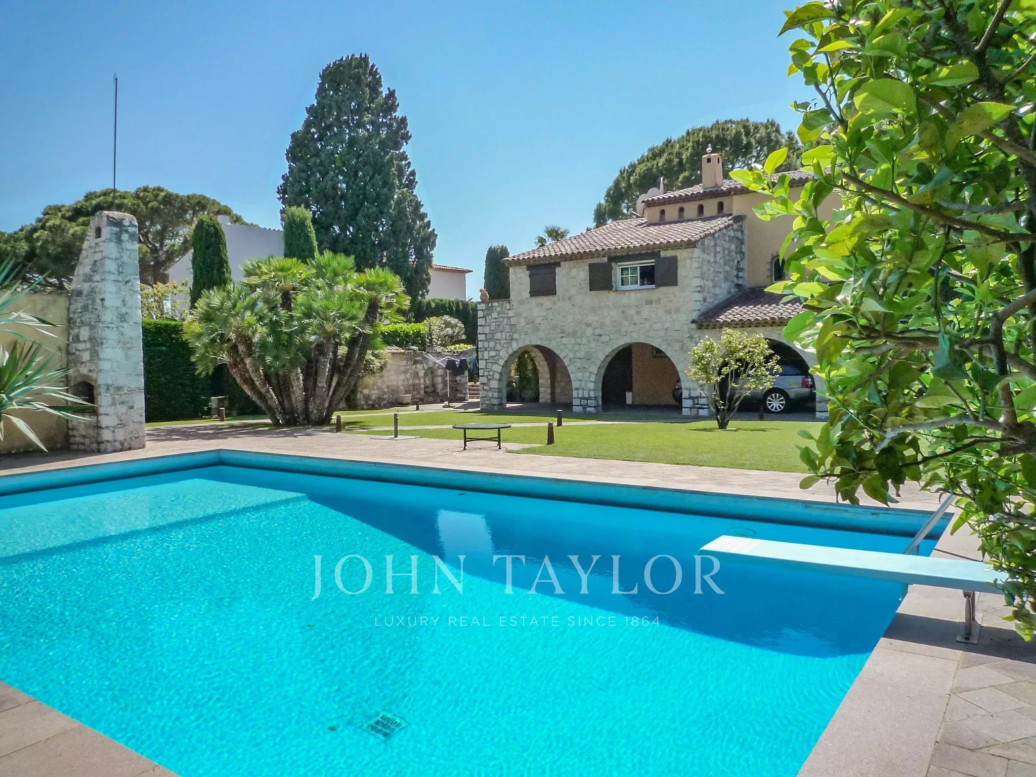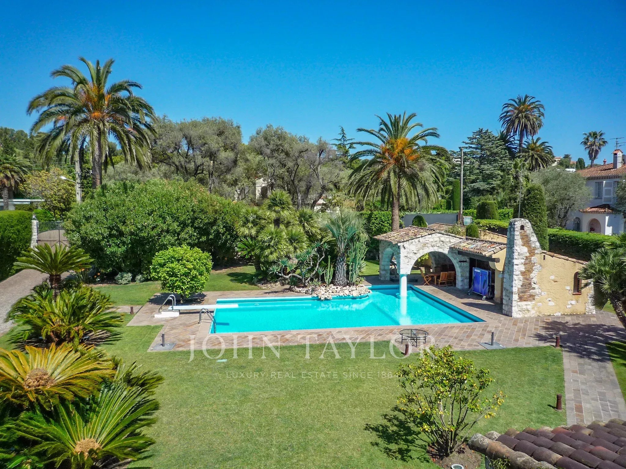 Magnifique propriété située sur le versant ouest du Cap d'Antibes. Elle offre une vue panoramique sur la mer, un vaste jardin plat avec des arbres centenaires.