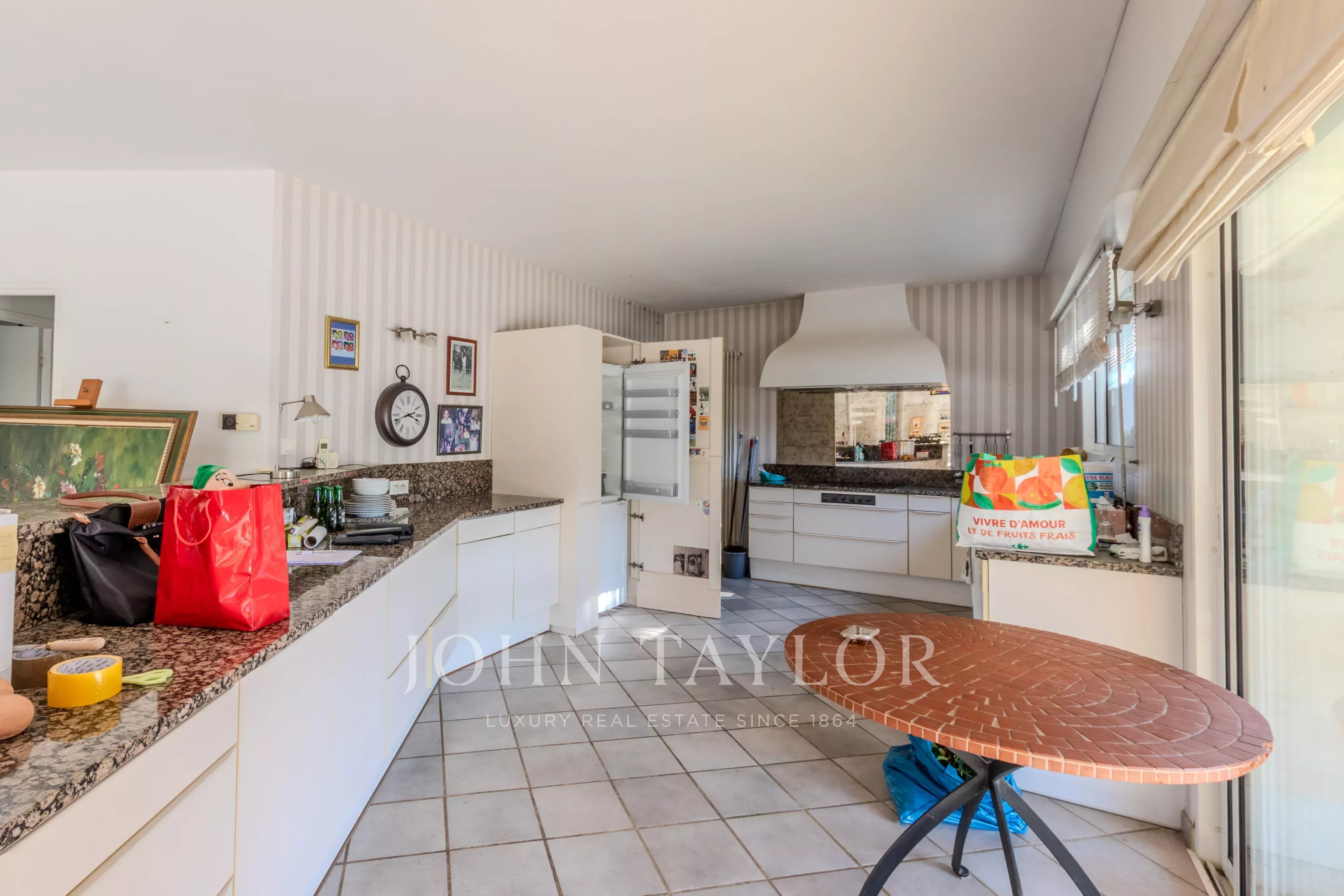 Nichée dans un cadre verdoyant et paisible d'Antibes, cette villa séduit par ses volumes généreux et ses espaces de vie baignés de lumière. Le vaste séjour s'ouvre généreusement sur une cuisine américaine fonctionnelle pour un total de 83m², agrémentée d'une buanderie avec chaudière gaz. De grandes baies vitrées offrent une vue imprenable sur la piscine et le jardin, invitant à profiter du climat méditerranéen toute l'année.
