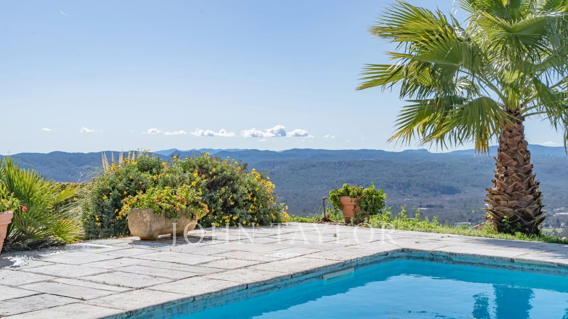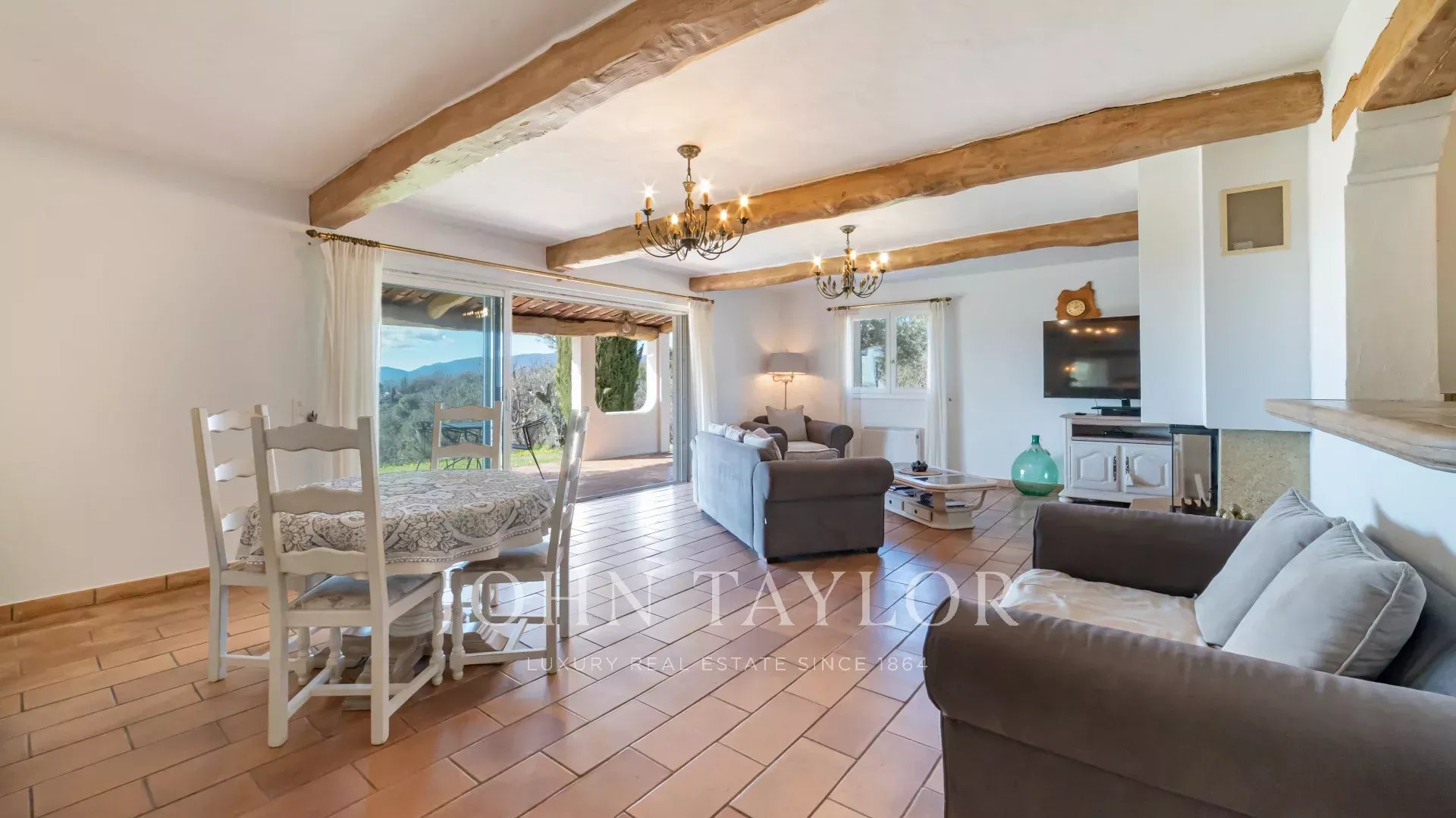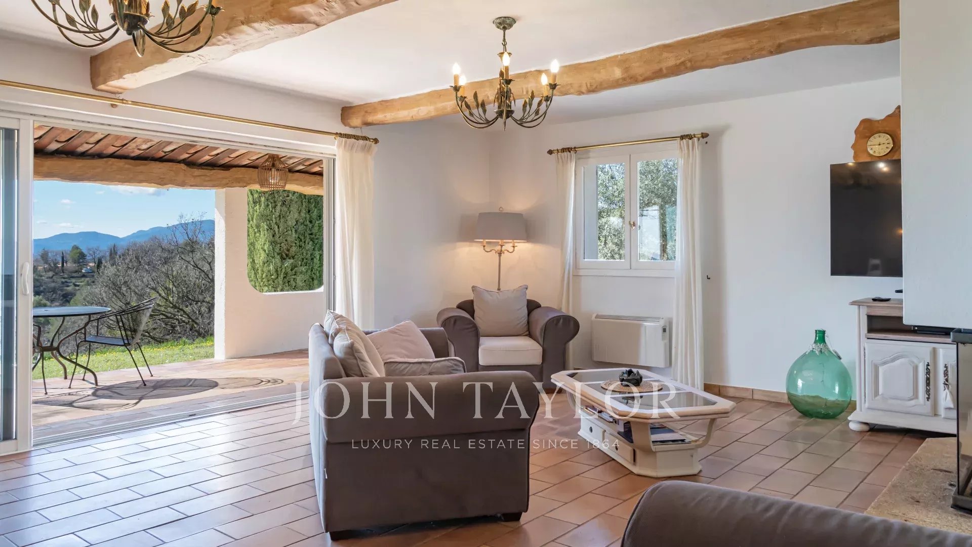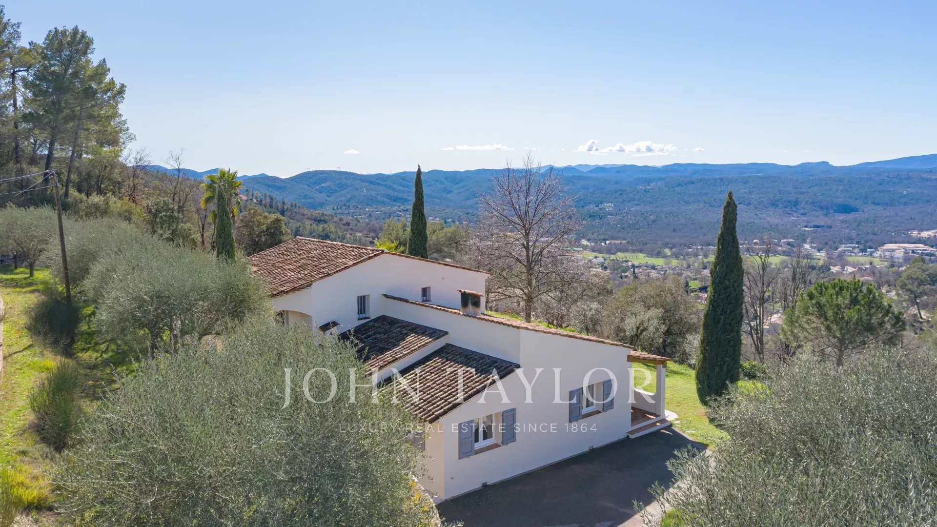 Dans un quartier résidentiel, à proximité des commerces et du village de Montauroux, villa d'environ 210 m2 sise sur un terrain de 3600 m2 avec piscine et oliviers bénéficiant d'une vue panoramique sur le Canton de Fayence.