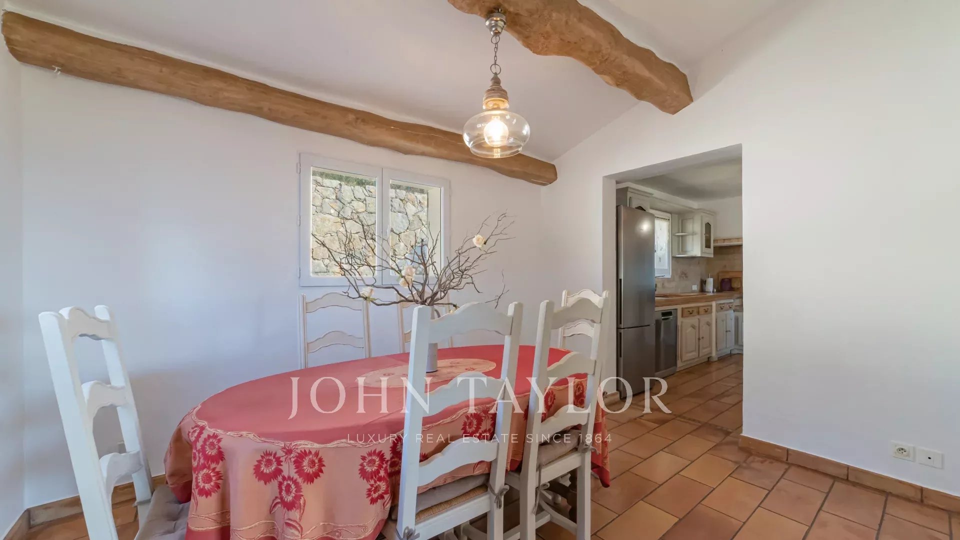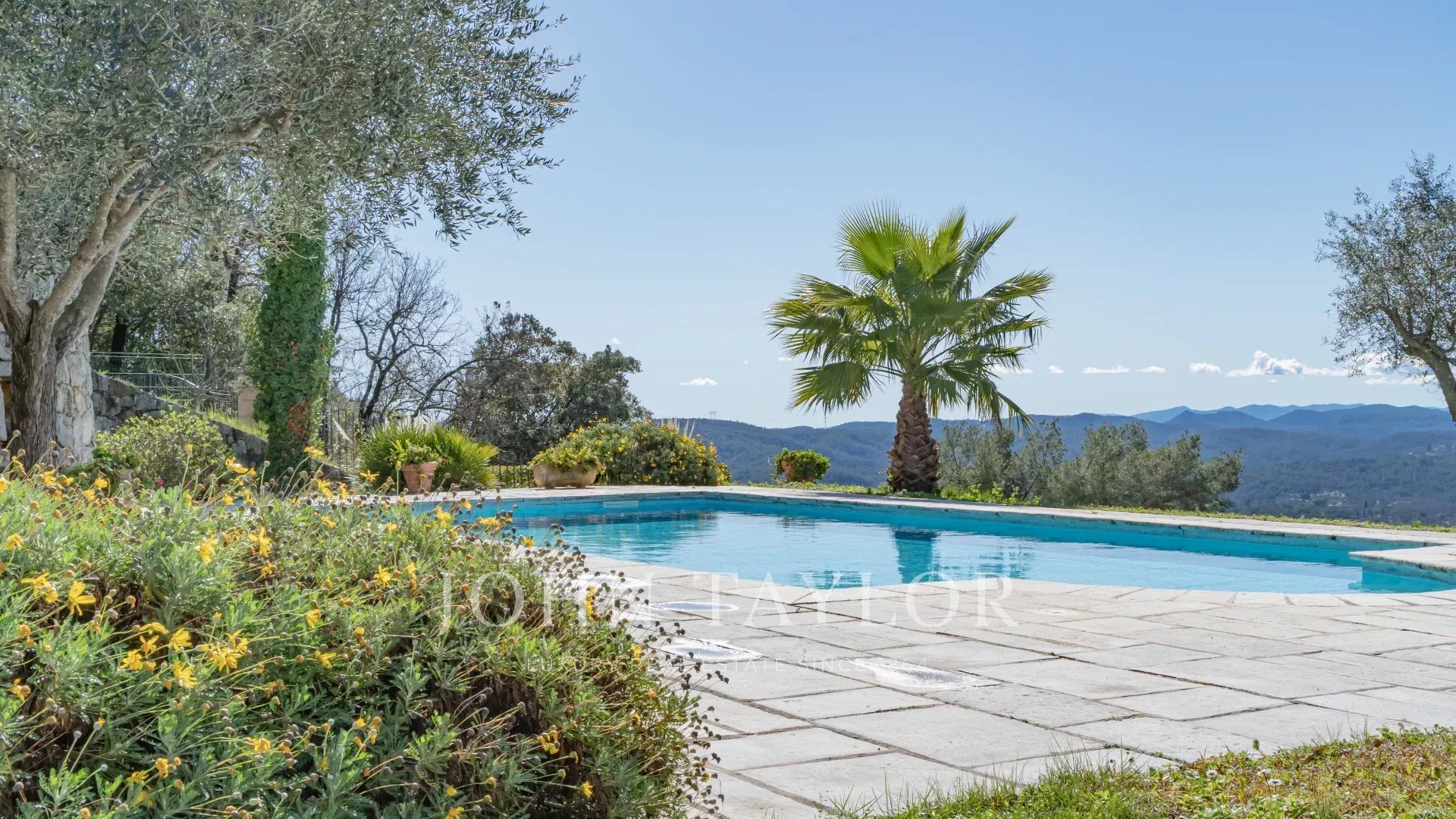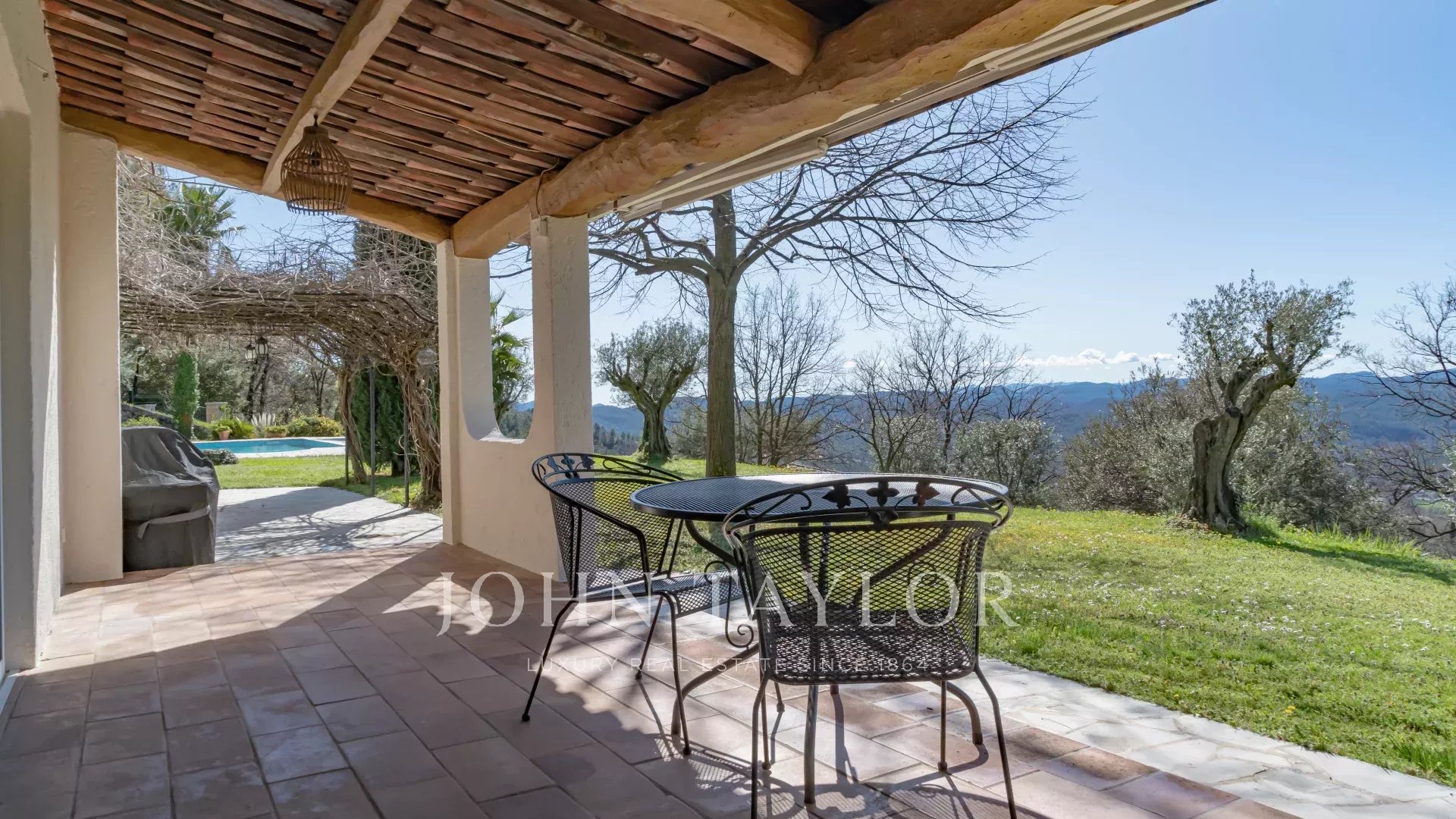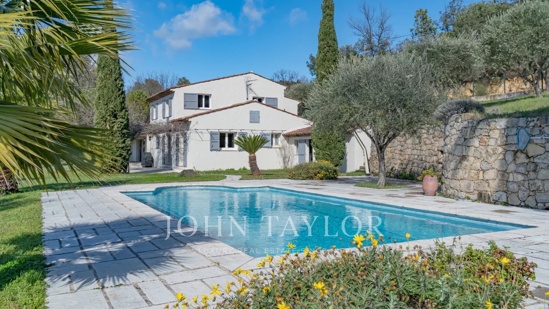 Dans un quartier résidentiel, à proximité des commerces et du village de Montauroux, villa d'environ 210 m2 sise sur un terrain de 3600 m2 avec piscine et oliviers bénéficiant d'une vue panoramique sur le Canton de Fayence.