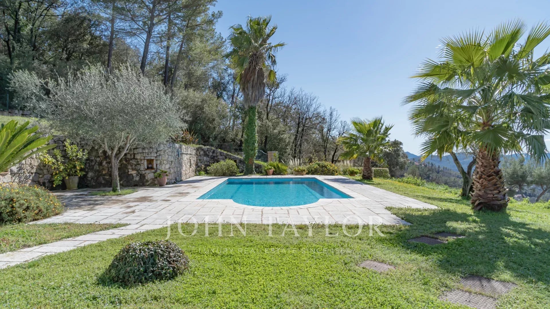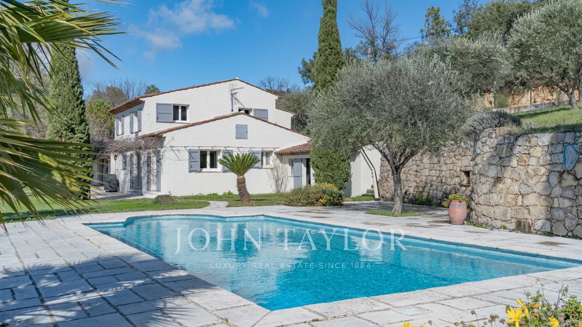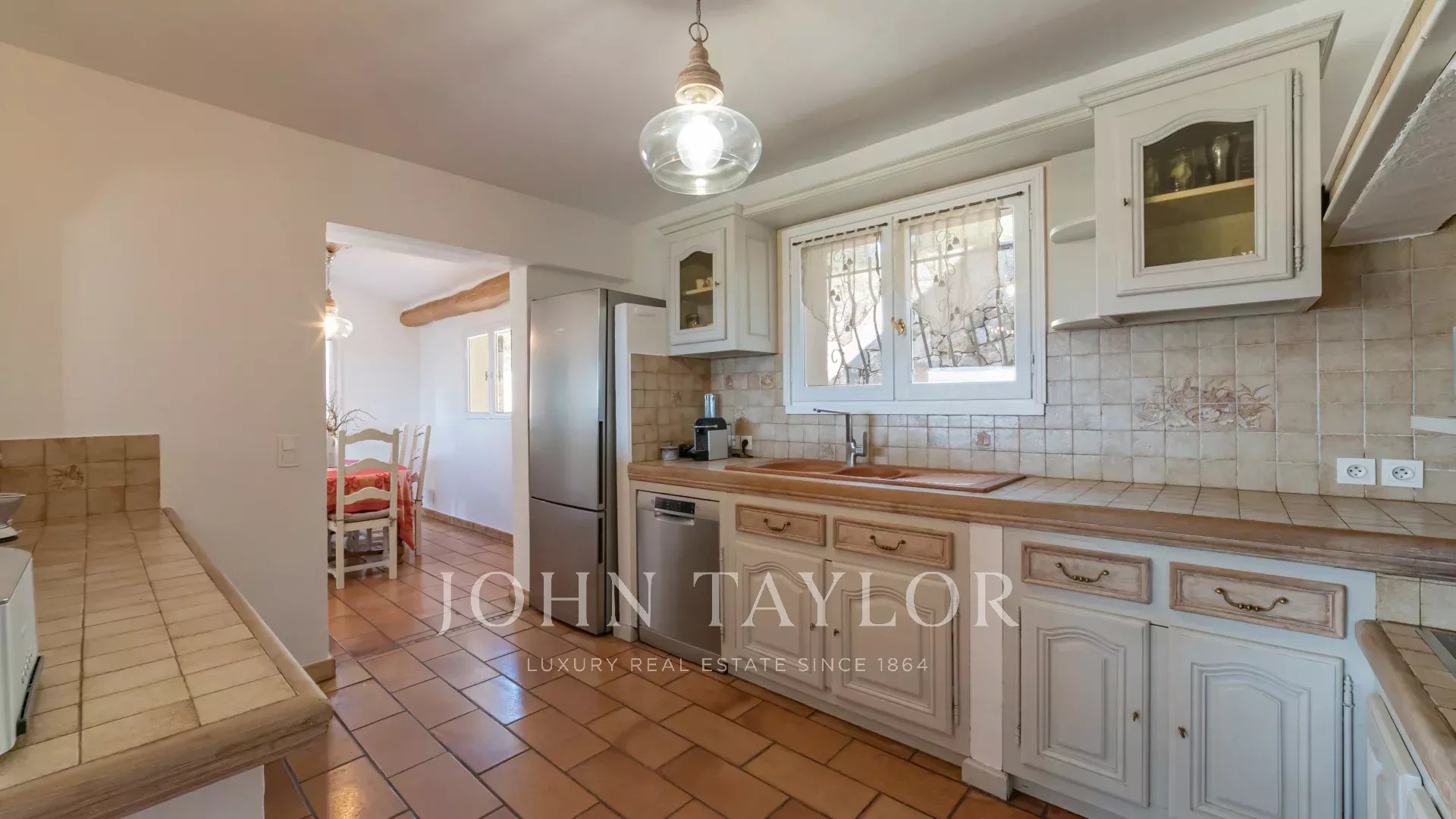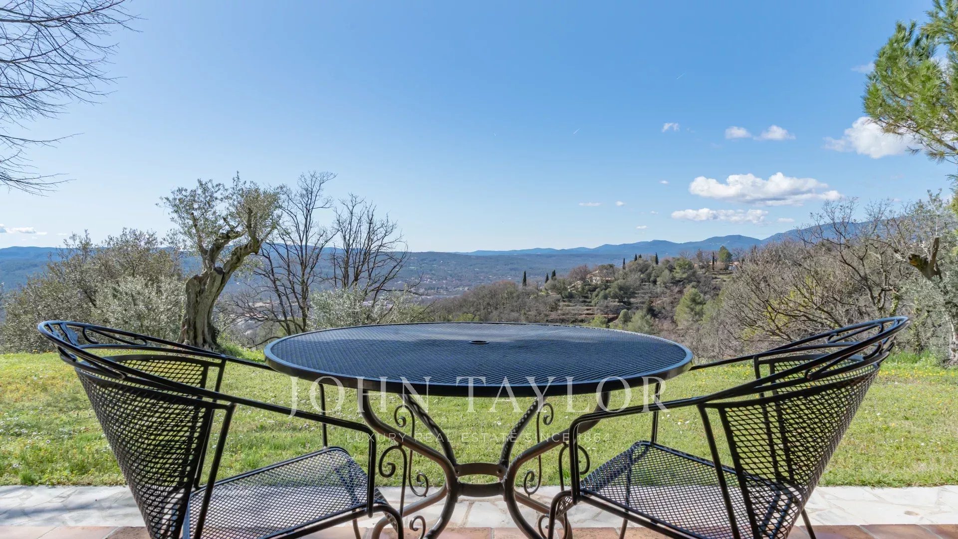 Dans un quartier résidentiel, à proximité des commerces et du village de Montauroux, villa d'environ 210 m2 sise sur un terrain de 3600 m2 avec piscine et oliviers bénéficiant d'une vue panoramique sur le Canton de Fayence.