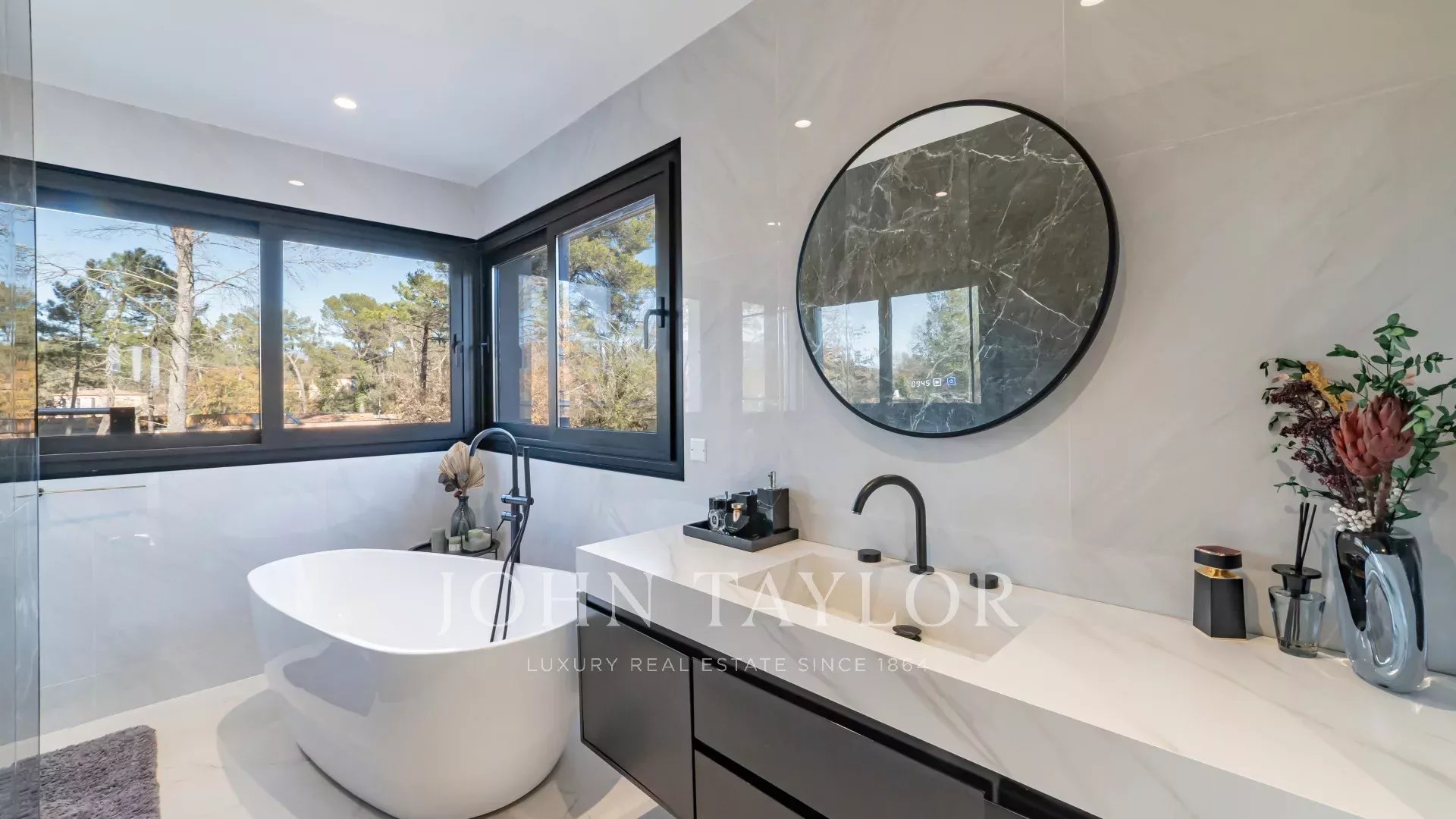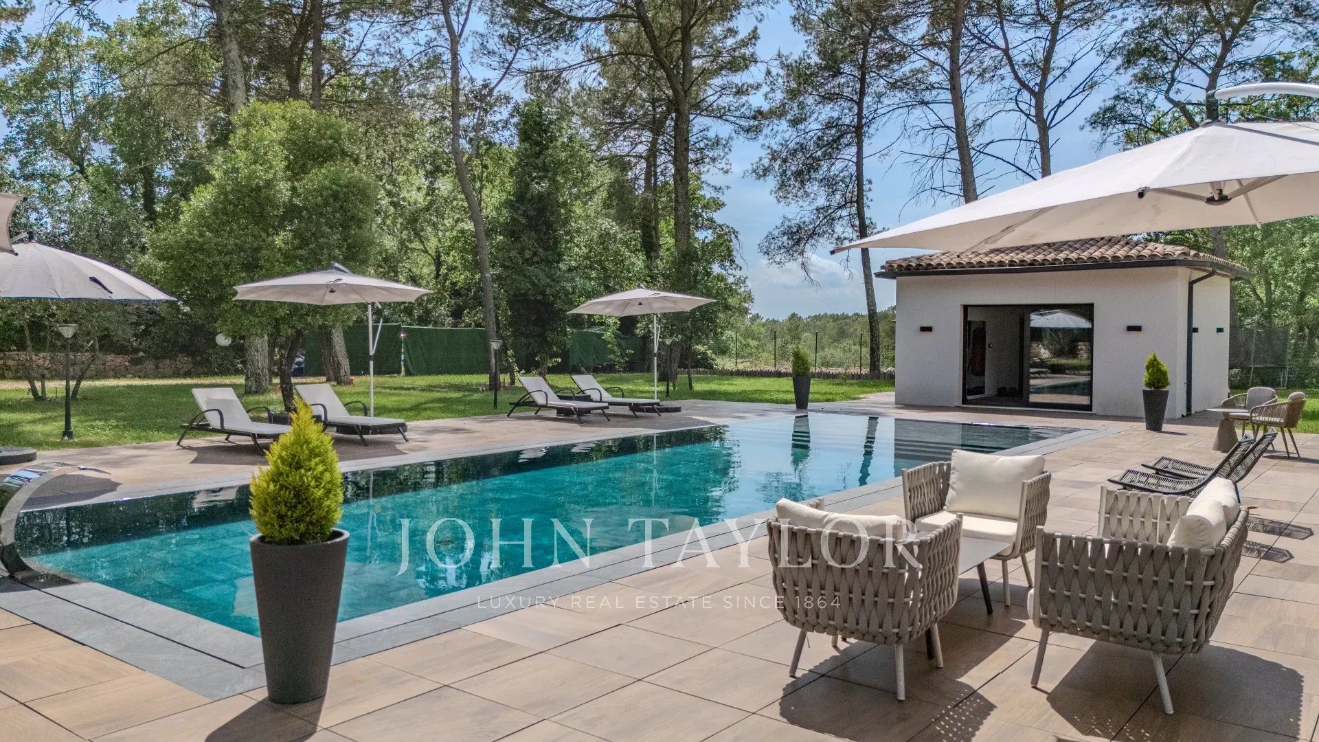 Dans un environnement résidentiel prisé, au calme absolu et à proximité immédiate du prestigieux domaine de Terre Blanche, découvrez cette villa d’architecte contemporaine édifiée en 2023, d’une superficie totale d’environ 543 m², implantée sur un terrain plat de 4 200 m².