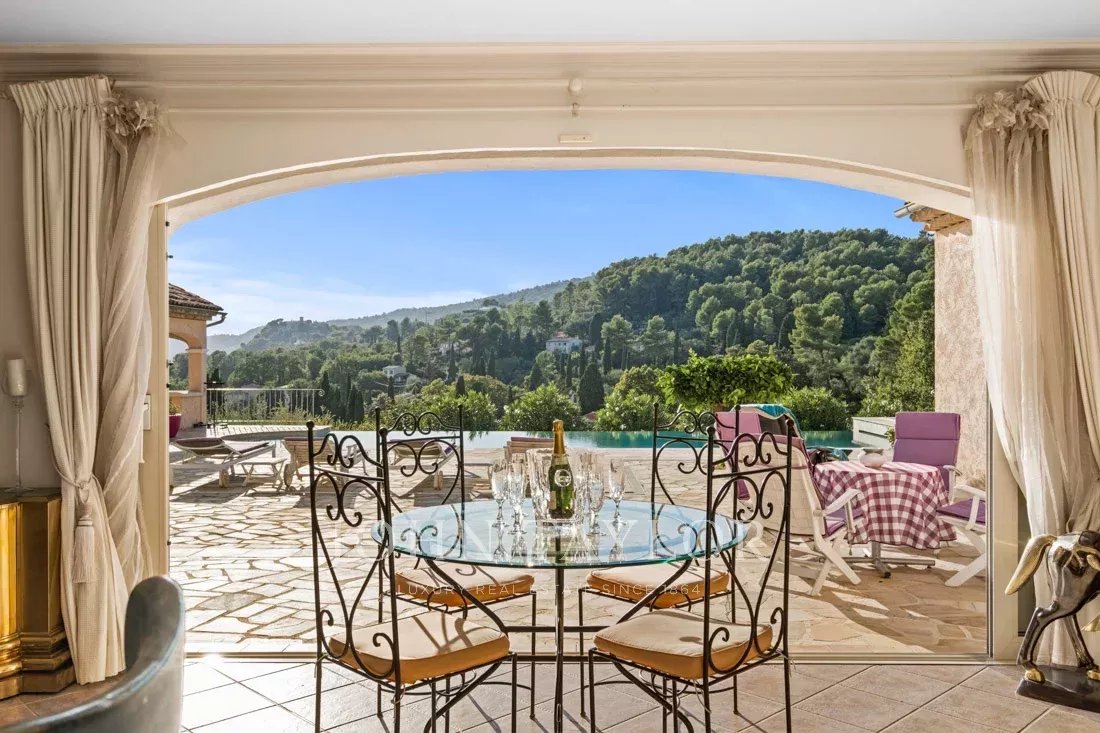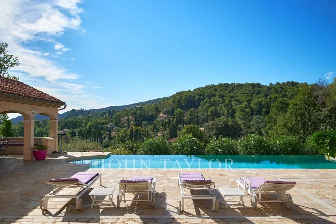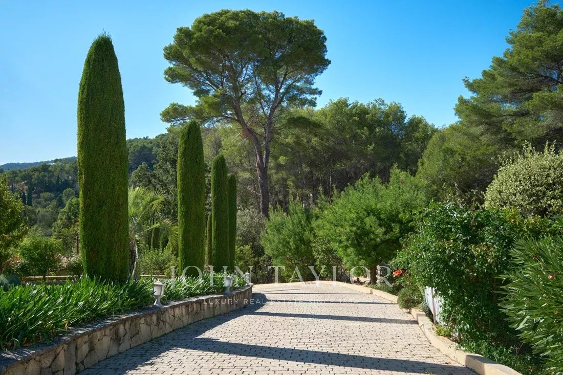 Un élégant accès vous mène à cette très charmante propriété de 2 864 m² avec une magnifique vue sur le pittoresque village de Cabris et ses collines environnantes.