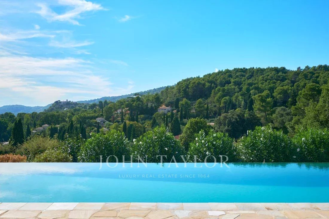 Un élégant accès vous mène à cette très charmante propriété de 2 864 m² avec une magnifique vue sur le pittoresque village de Cabris et ses collines environnantes !