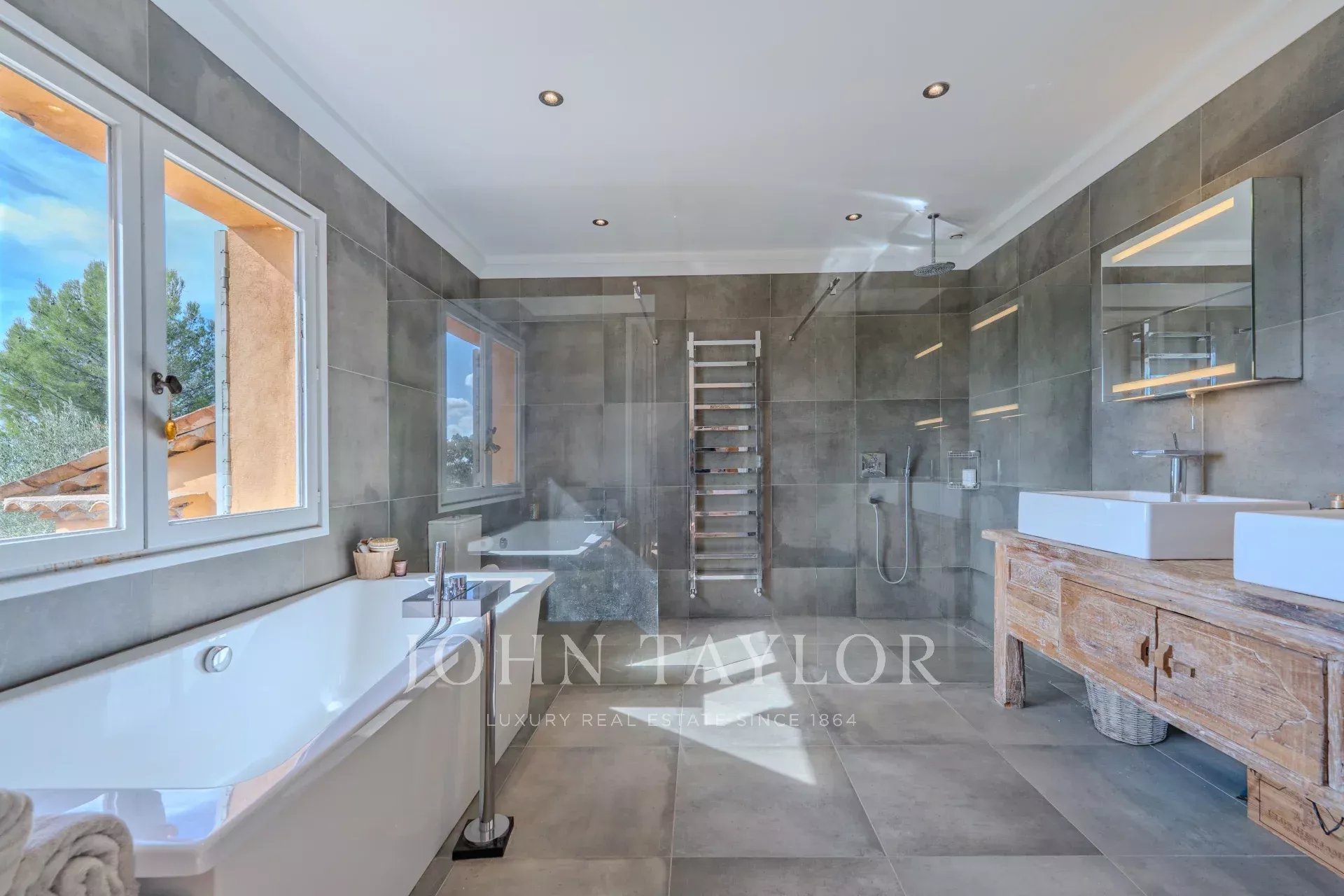 Un abri pour trois véhicules vient parfaire le confort de ce superbe domaine, idéalement situé à proximité de golfs renommés, d’établissements scolaires, et à seulement 40 minutes de Cannes.
