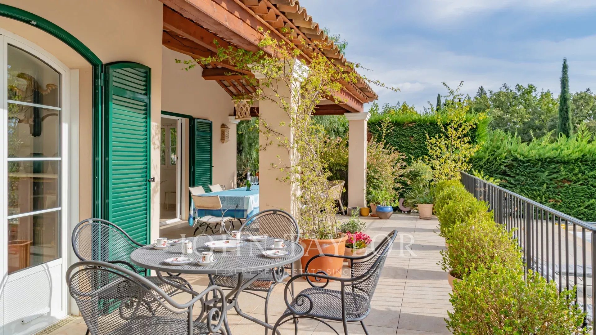 Située dans un petit domaine sans charges, au calme absolu, cette villa bénéficie d’un emplacement privilégié, à proximité des commodités, des golfs et des plages, et à seulement 35 minutes de l’aéroport de Nice.