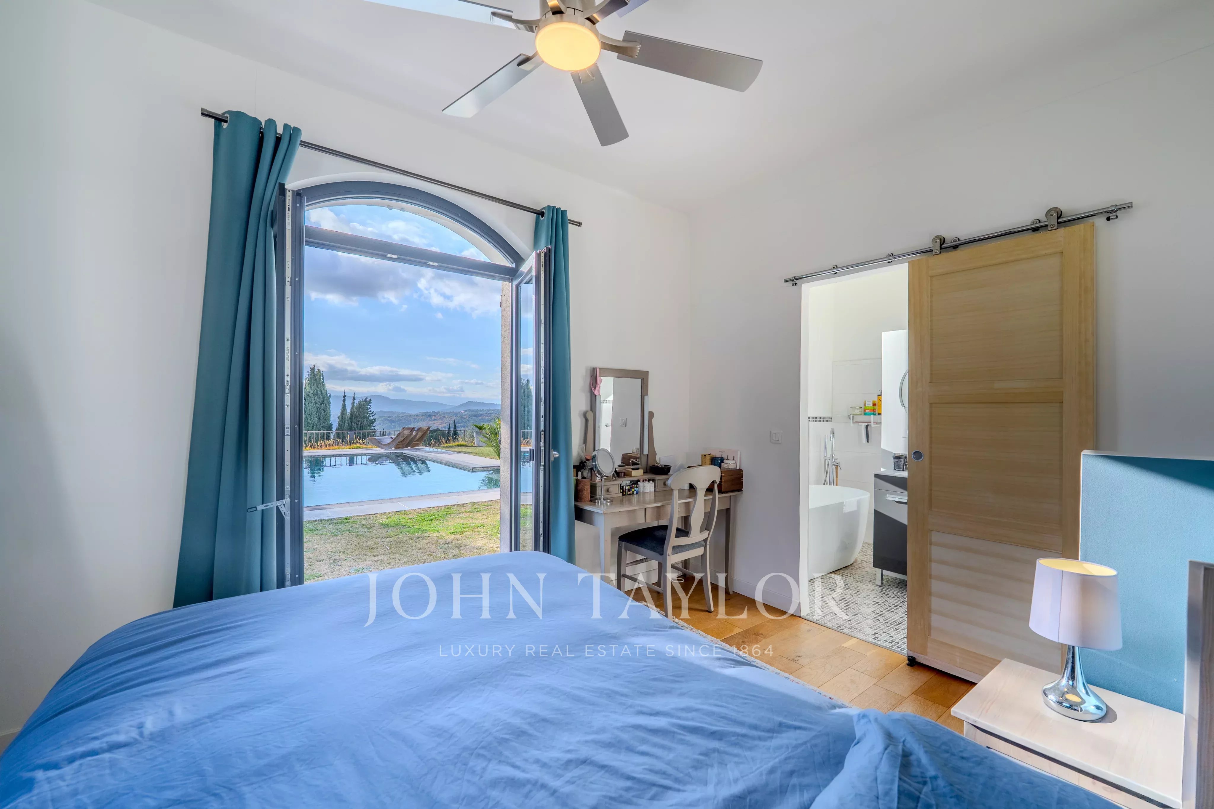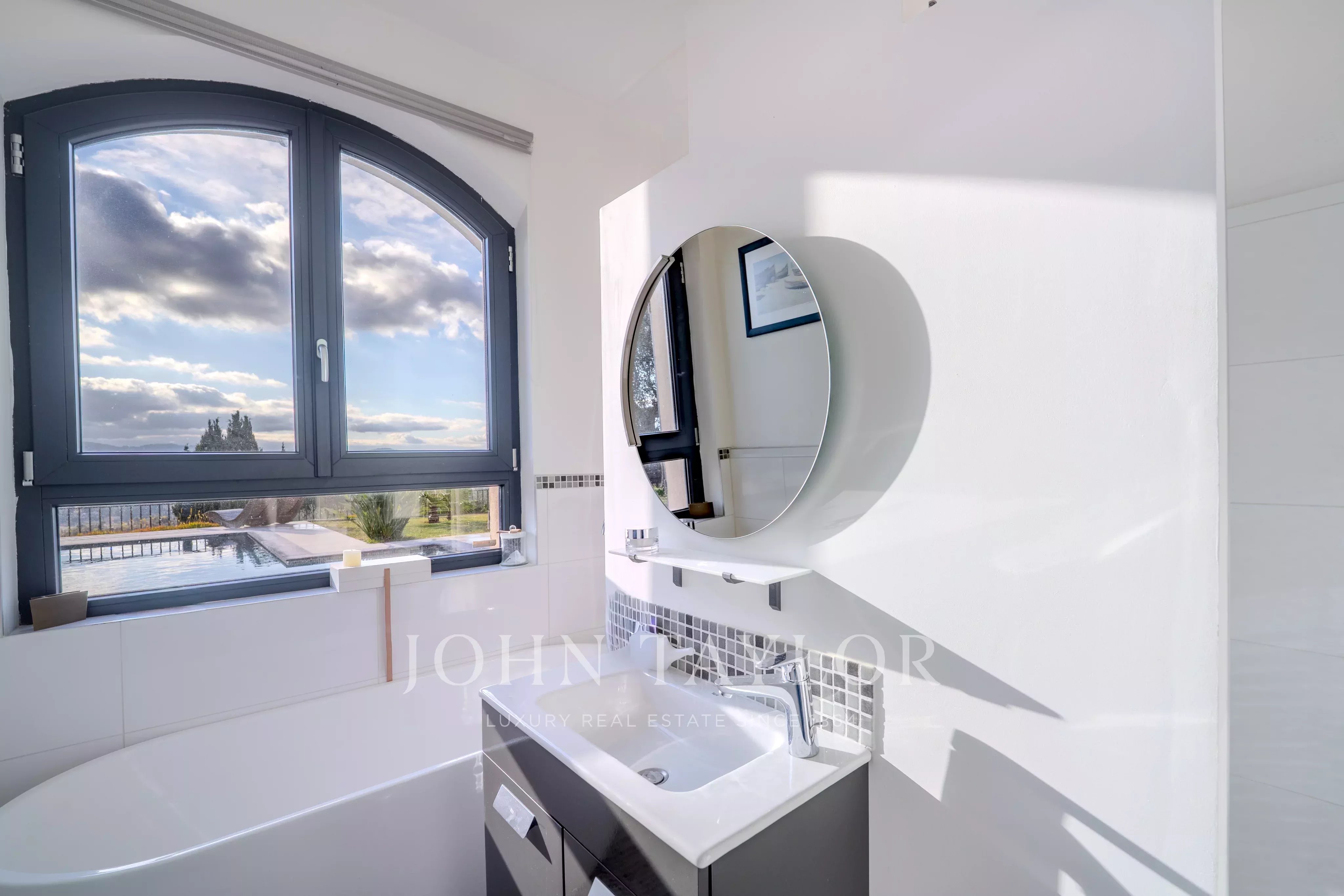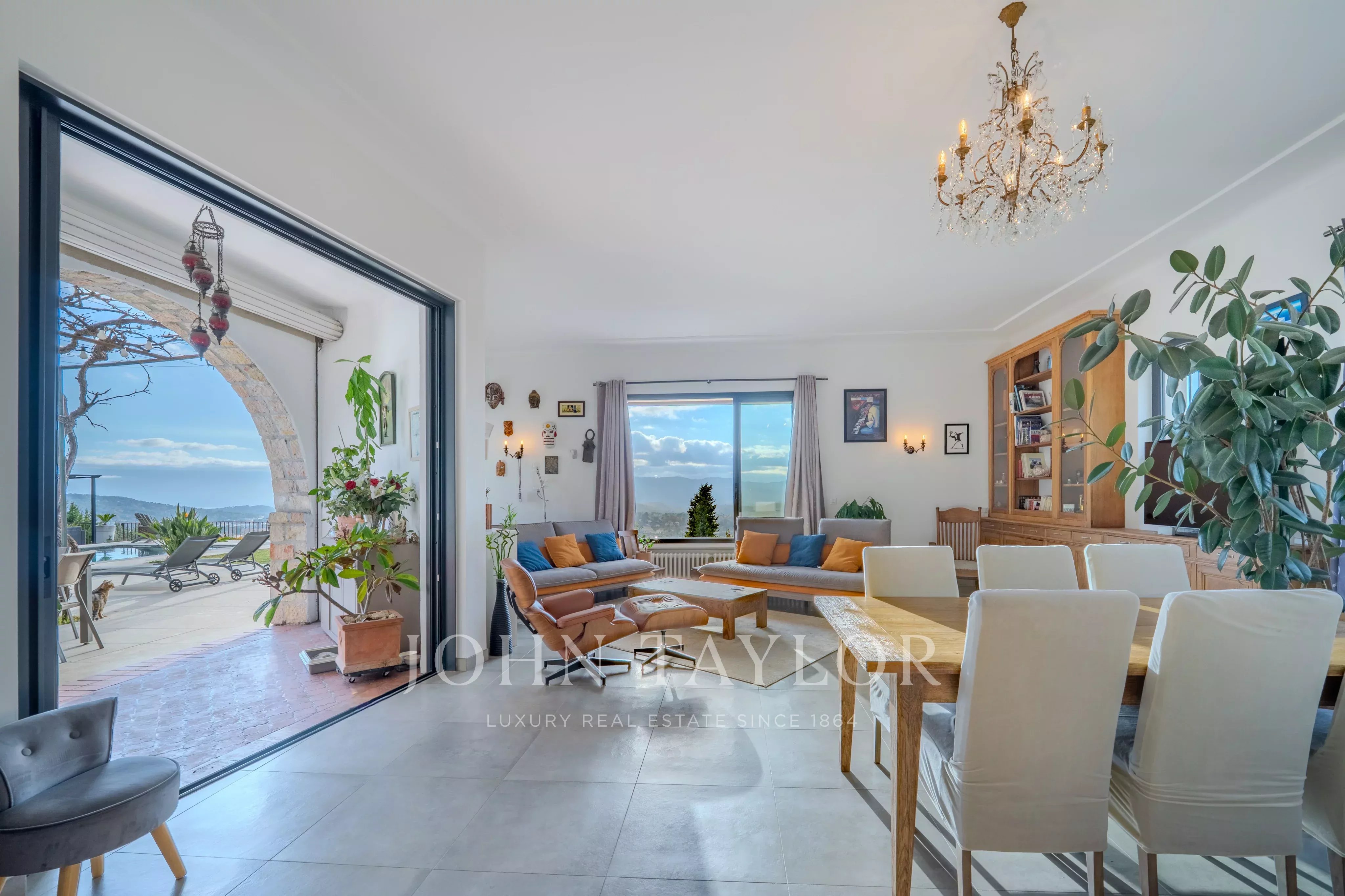 A seulement quelques minutes du village de Valbonne, cette propriété rénovée de 217m2 avec piscine et jacuzzi, vous séduira par sa vue panoramique et spectaculaire, de la baie de Cannes aux montagnes de Grasse, le tout sur un terrain paysagé de 3500m2 environ.