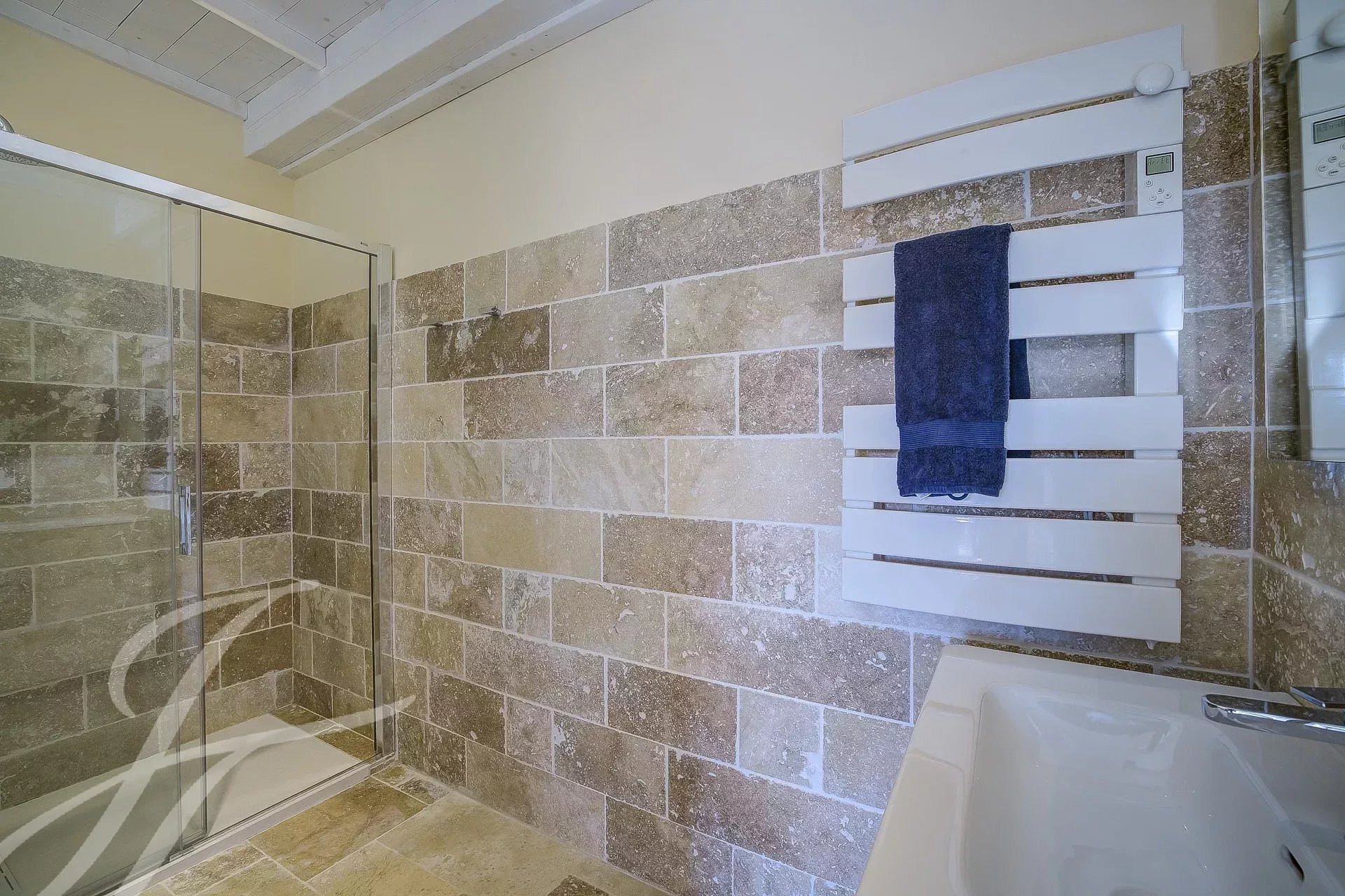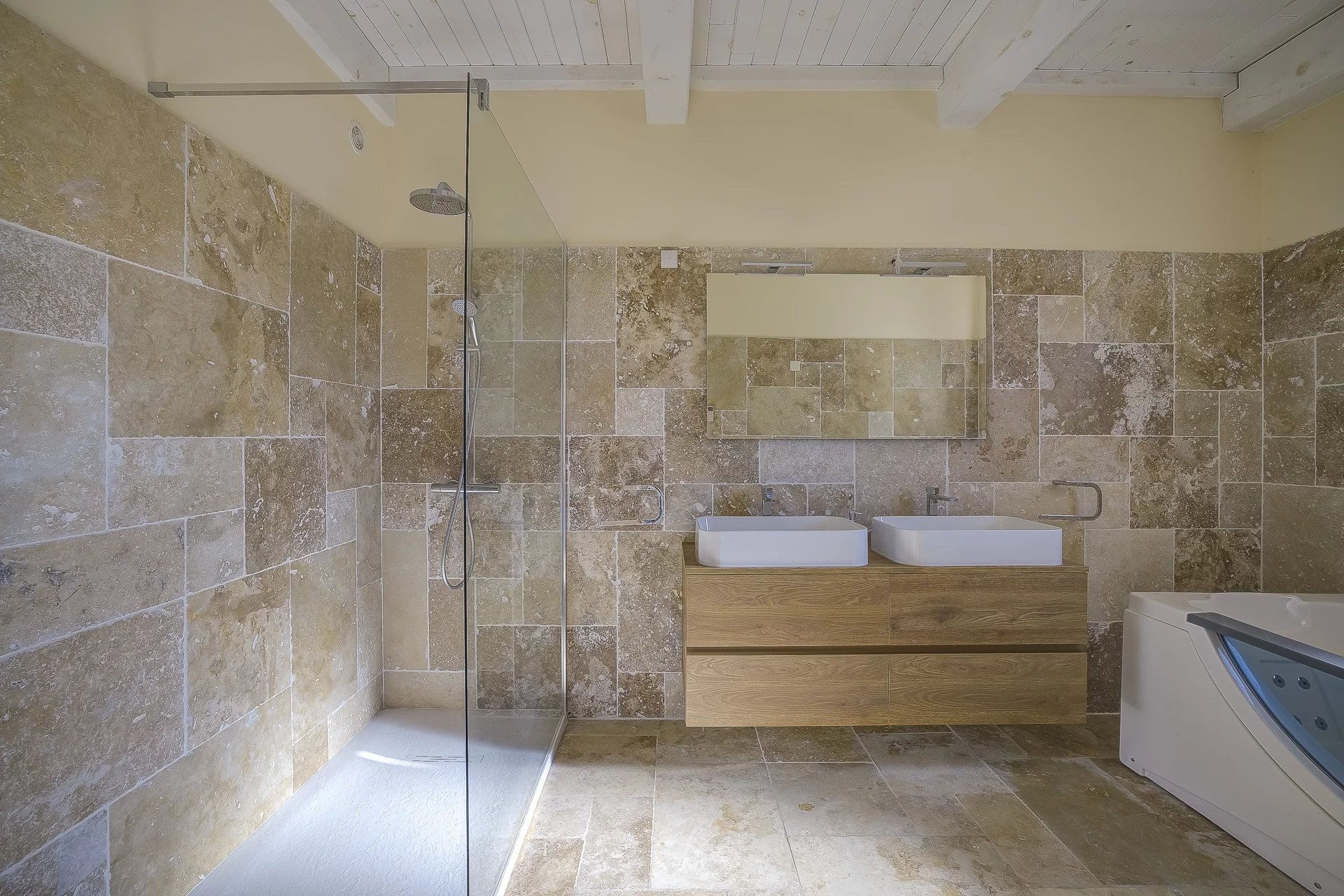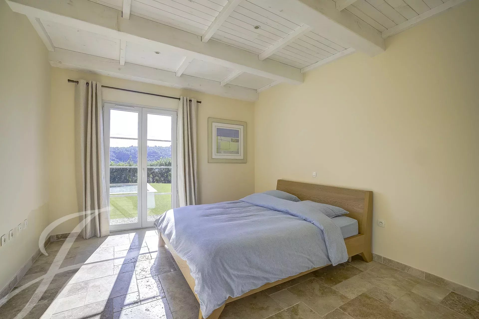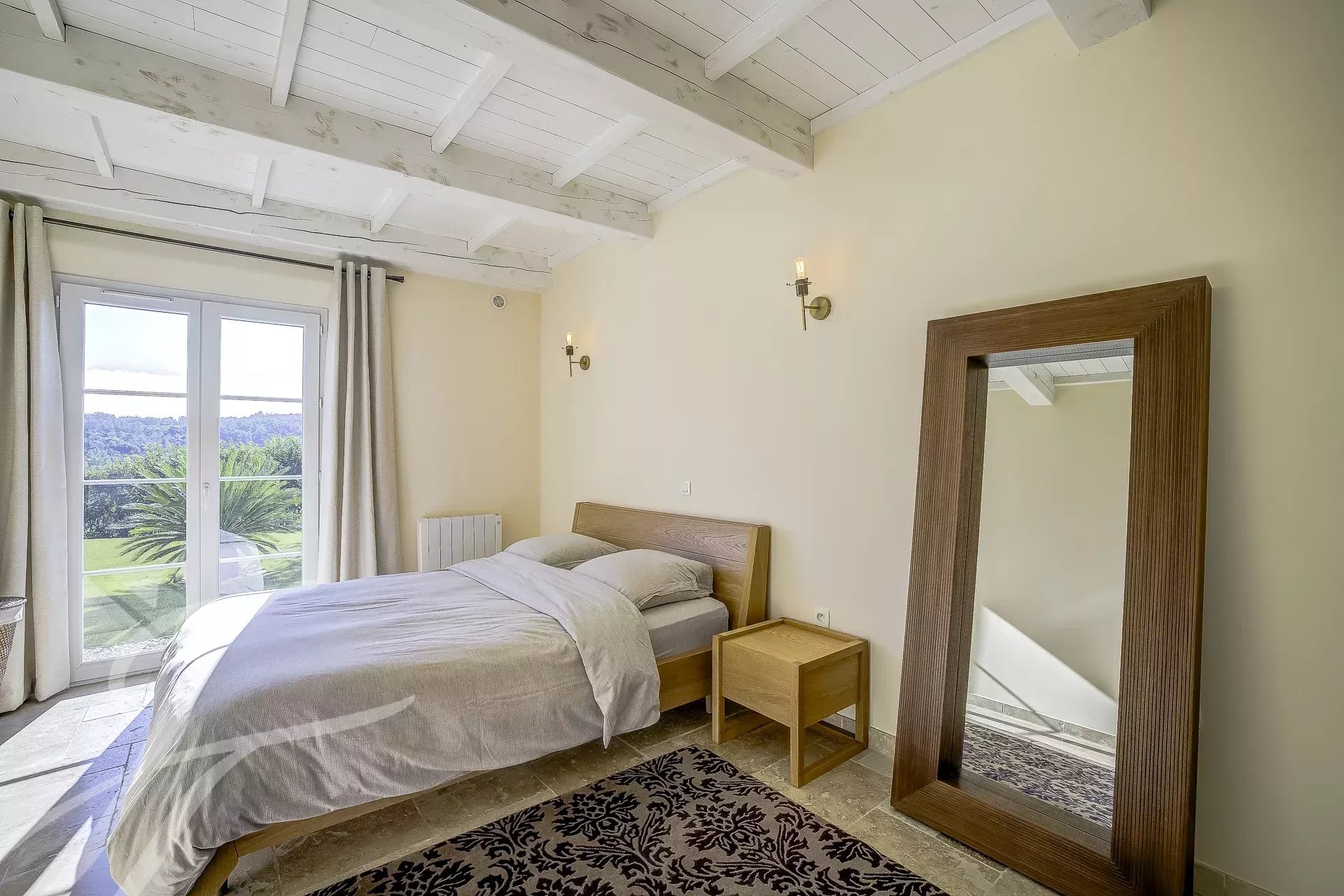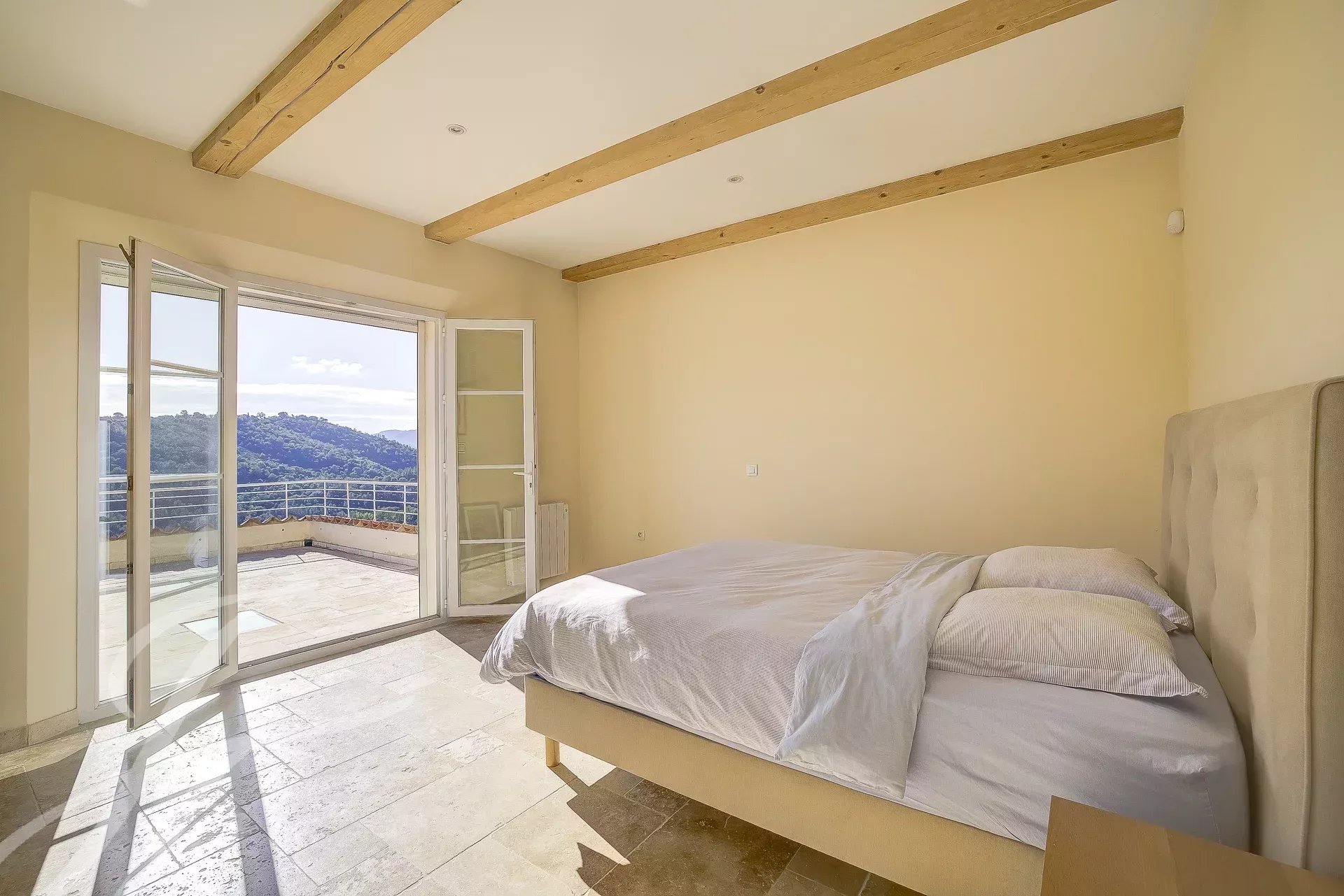 L'étage supérieur est dédié à la chambre principale disposant d'une salle de bains et d'un balcon privé avec vue sur les collines.