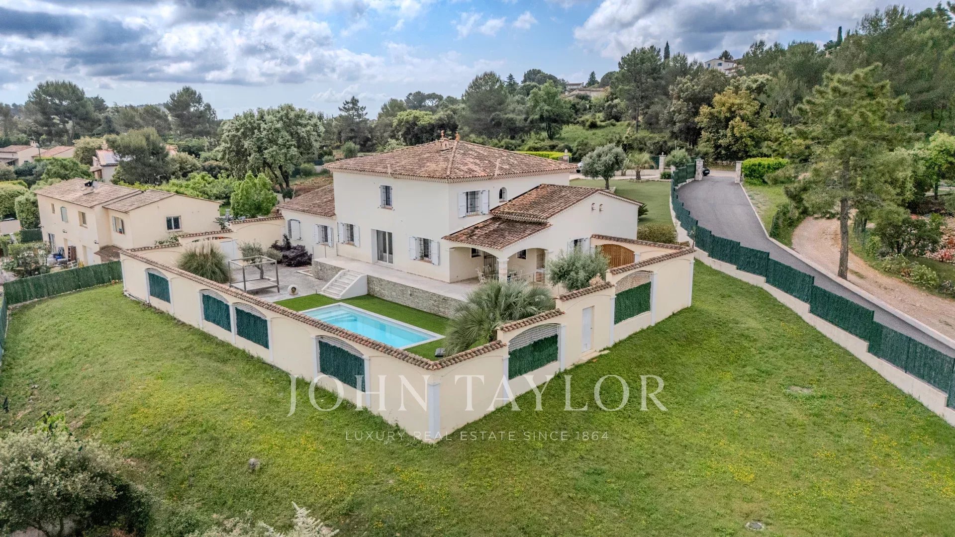 Dans un environnement paisible et recherché, charmante villa avec de très beaux volumes édifiée sur un beau terrain arboré de 2 951 m², agrémentée de plusieurs terrasses, d’une piscine, d’un garage double avec mezzanin, d'une grande cave et d’une pergola.