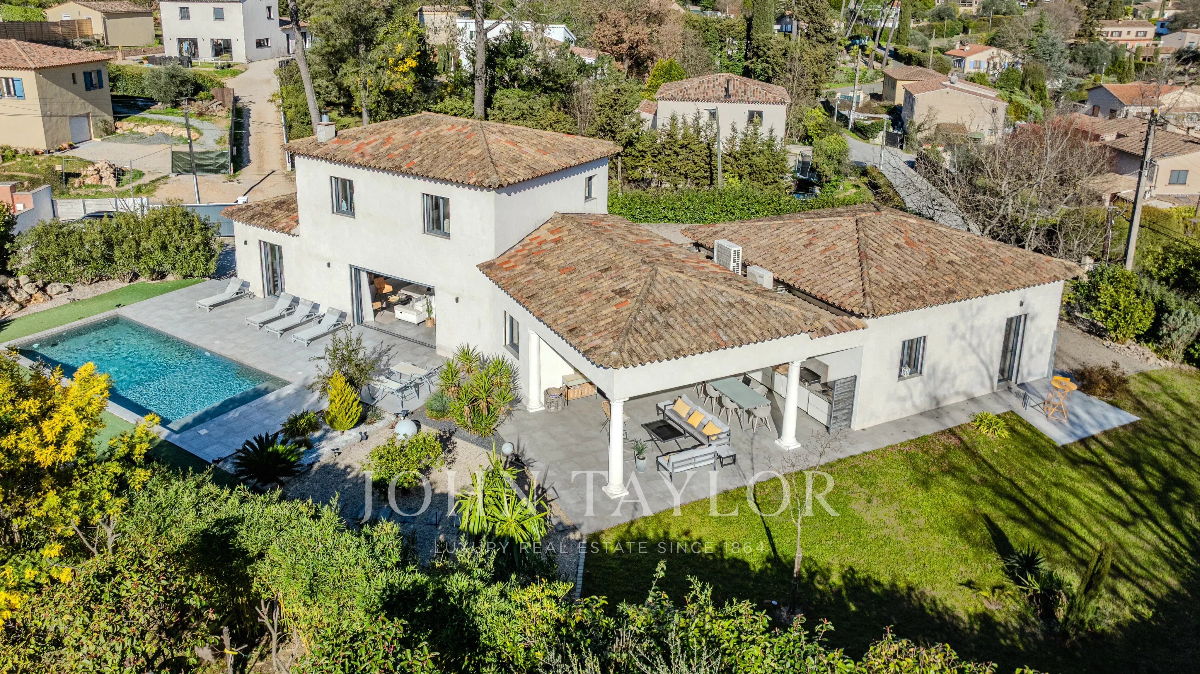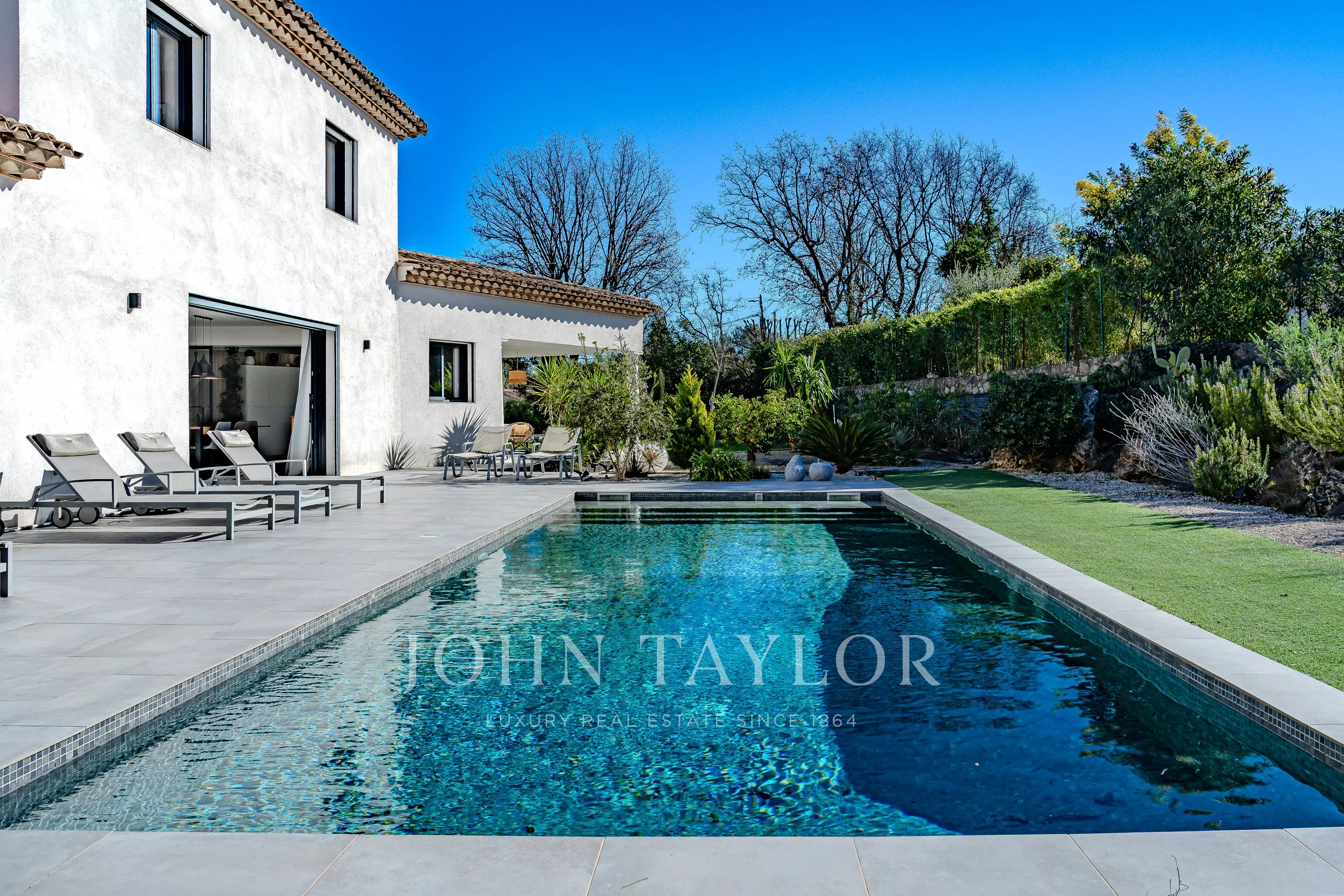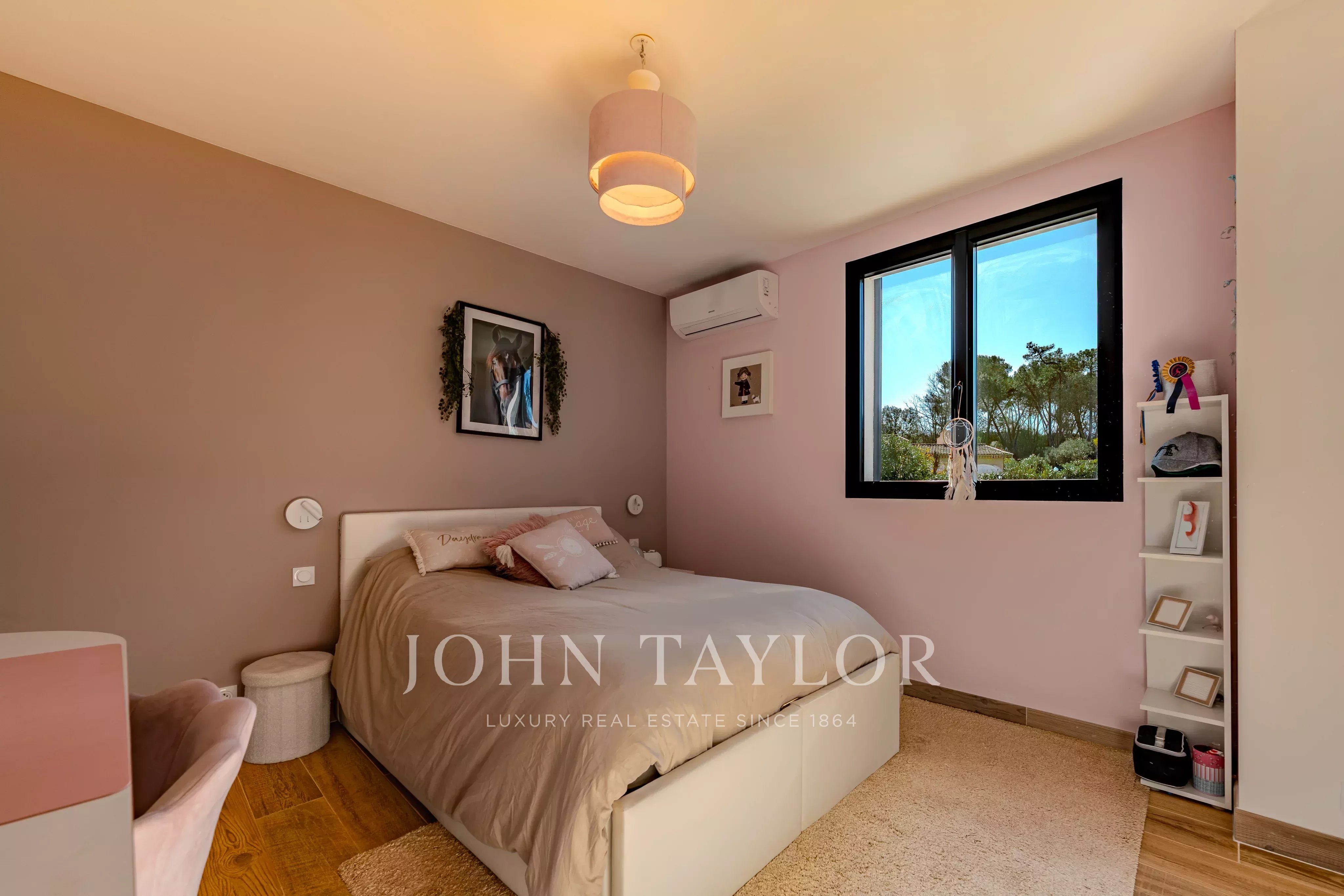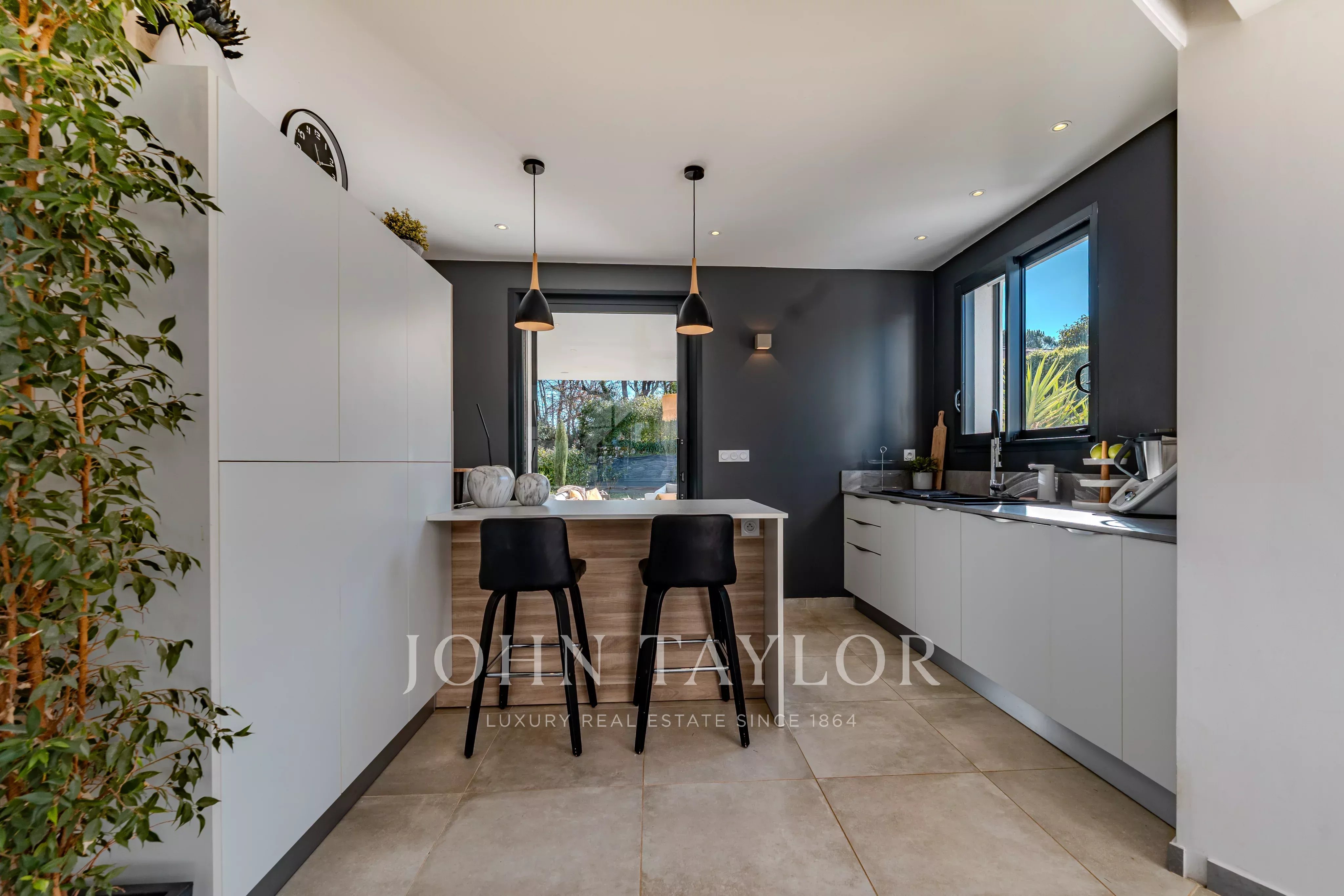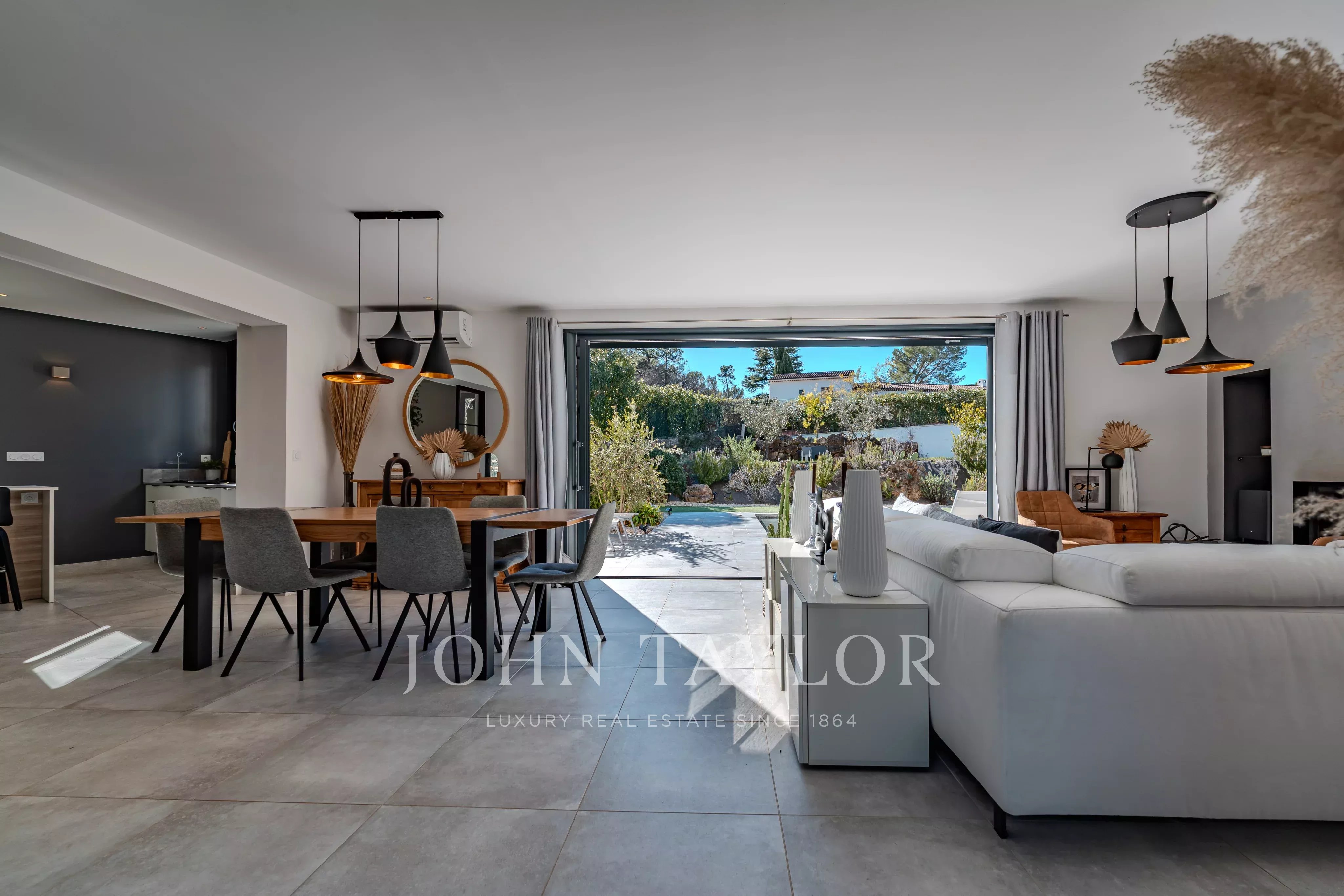 Le tout sur un terrain plat de 1 787 m², clos et paysager, avec terrasse couverte, piscine chauffée sans vis-à-vis, nombreux stationnements, cuisine d’été, cave et domotique.
