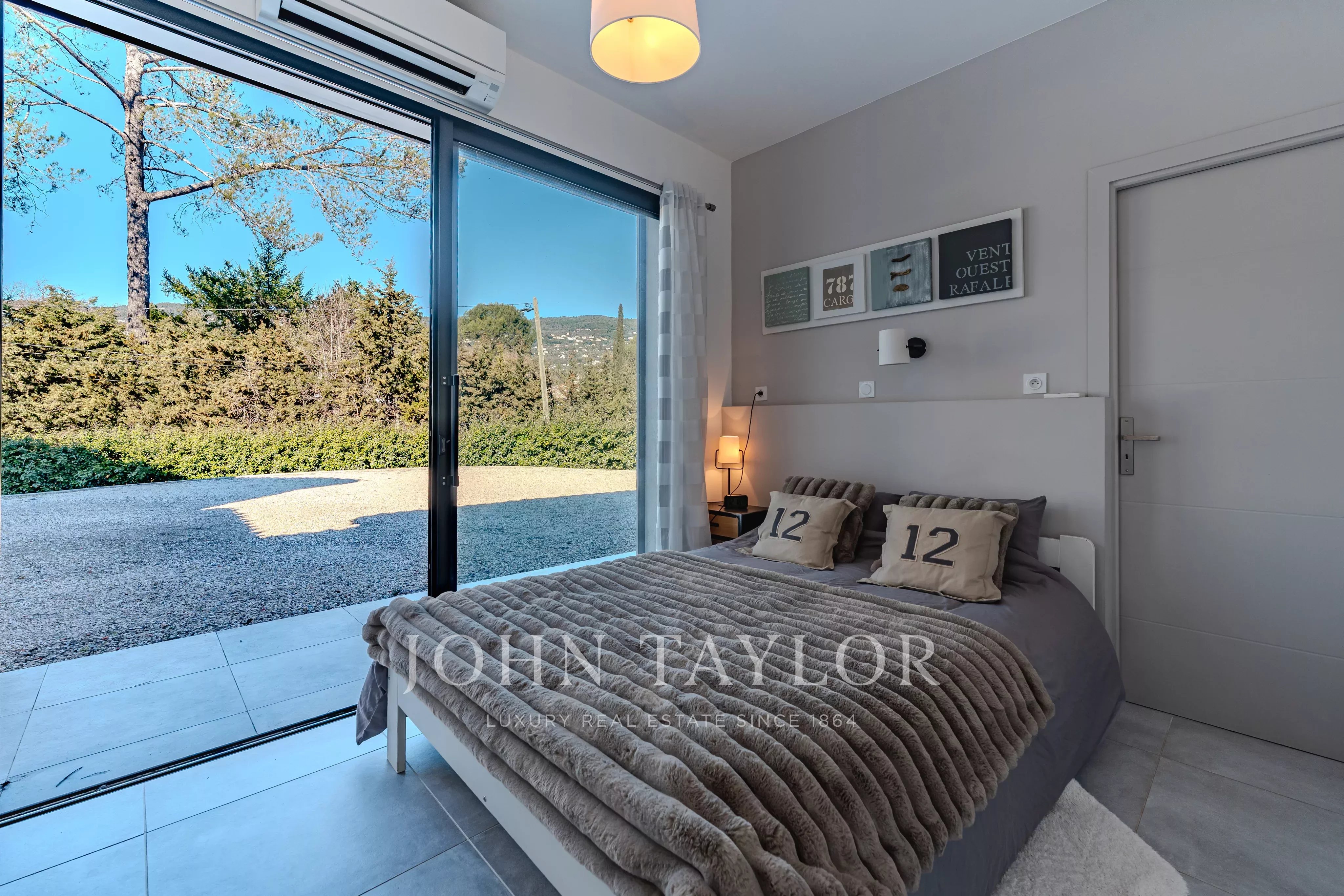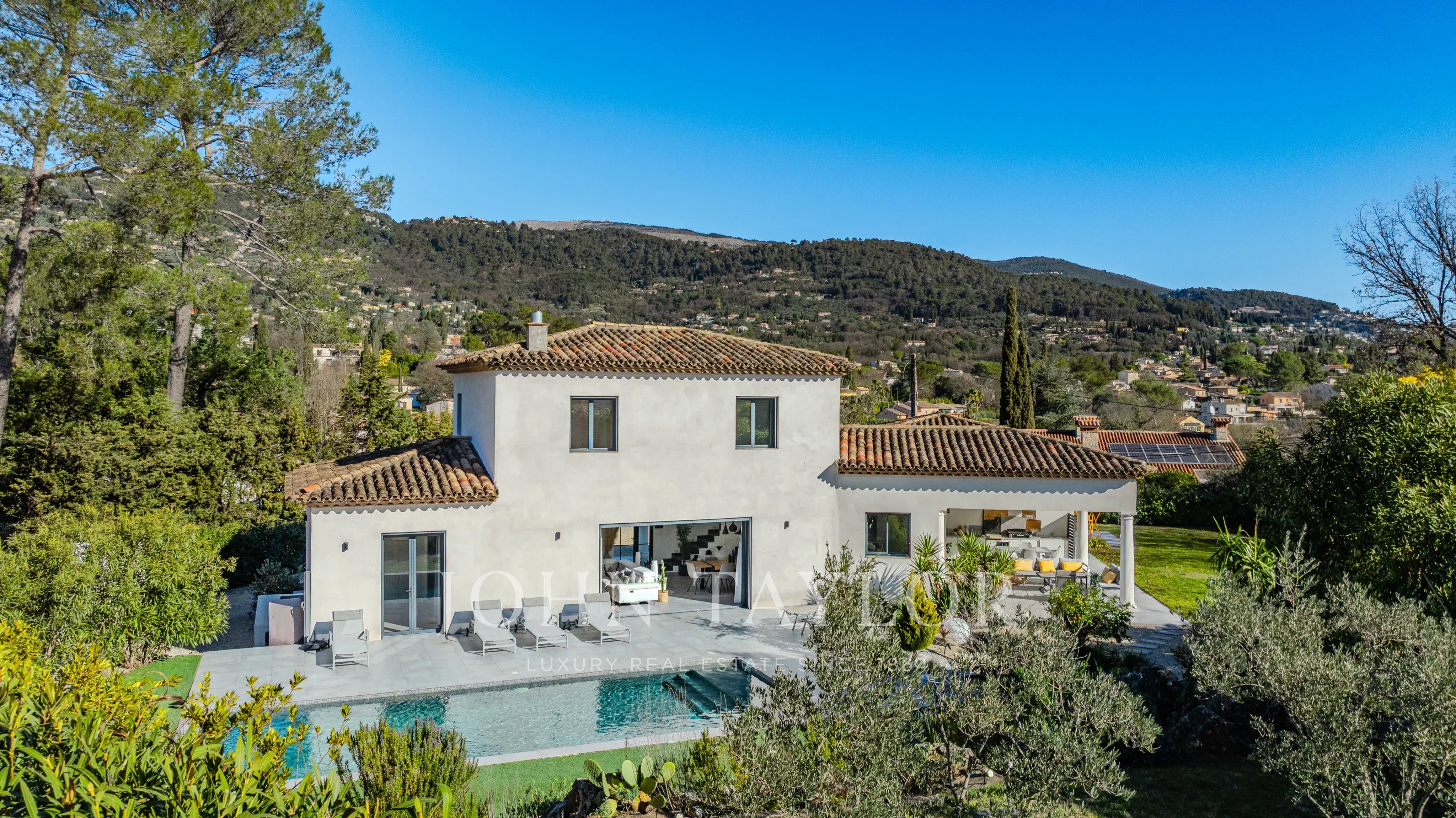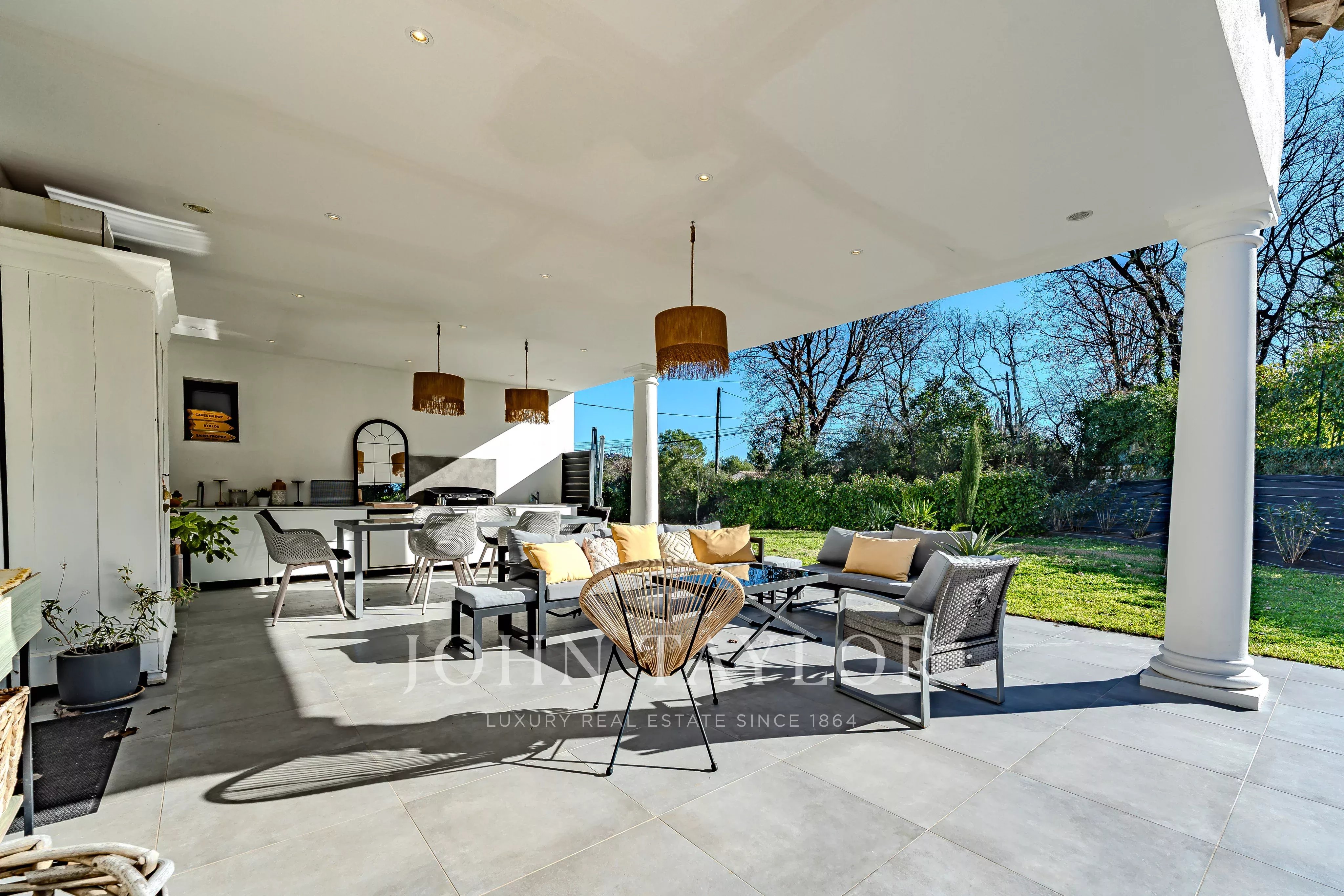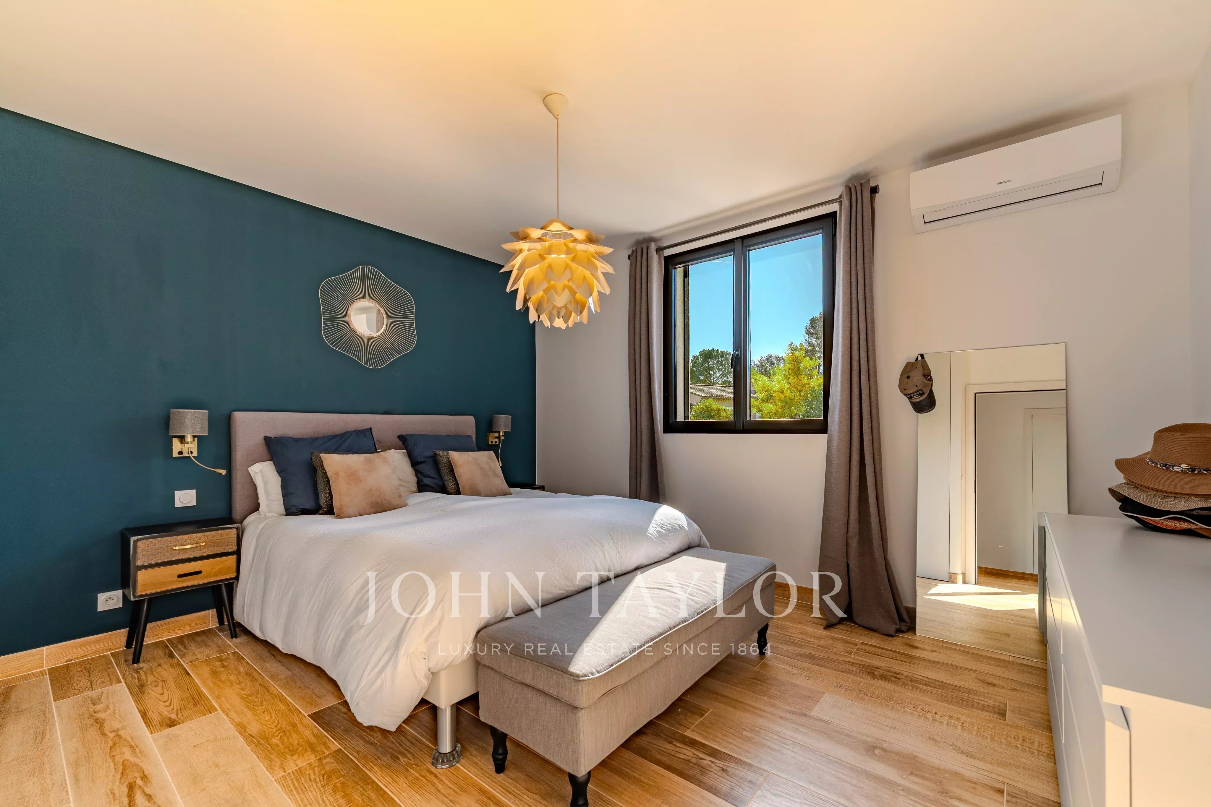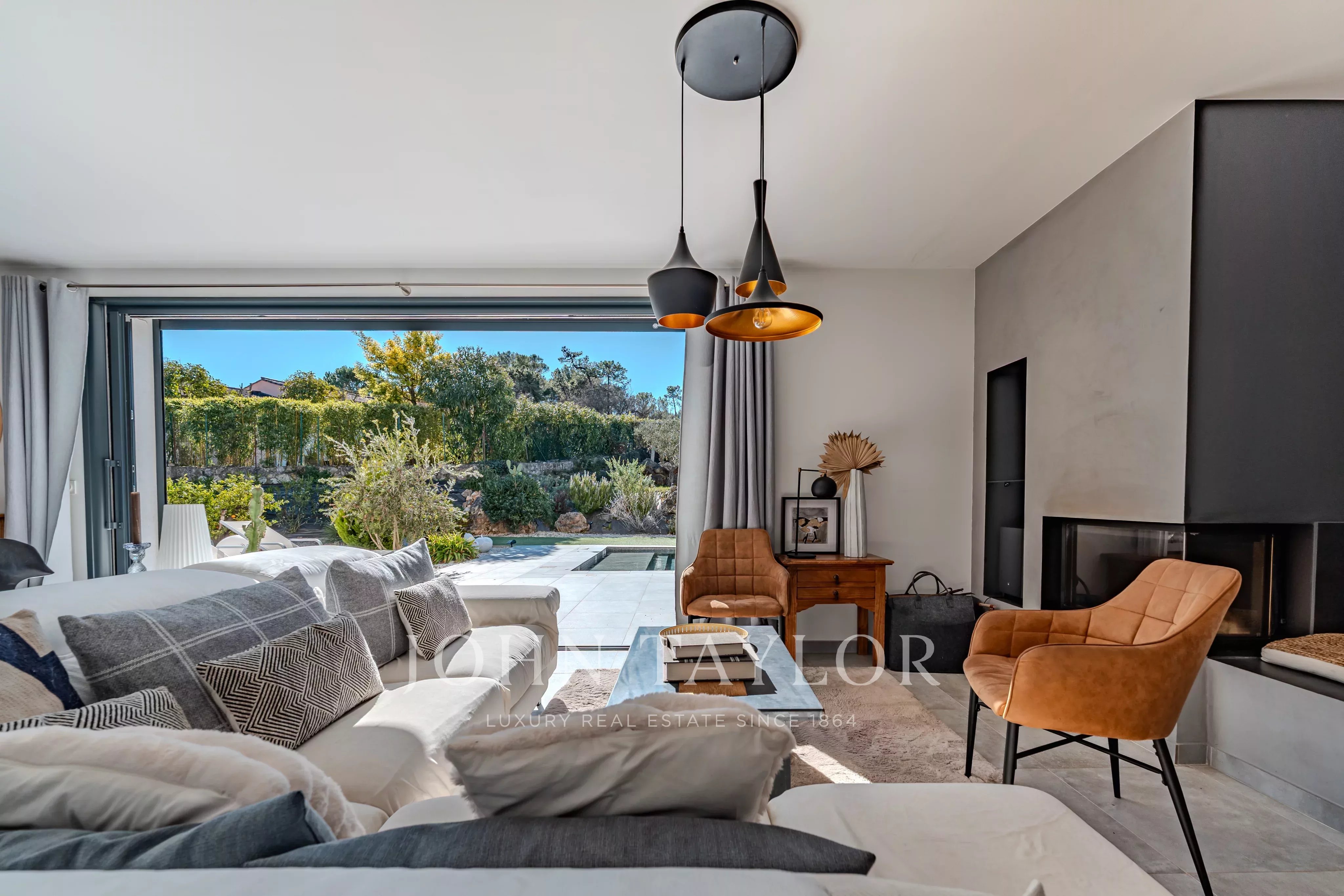 Le tout sur un terrain plat de 1 787 m², clos et paysager, avec terrasse couverte, piscine chauffée sans vis-à-vis, nombreux stationnements, cuisine d’été, cave et domotique.