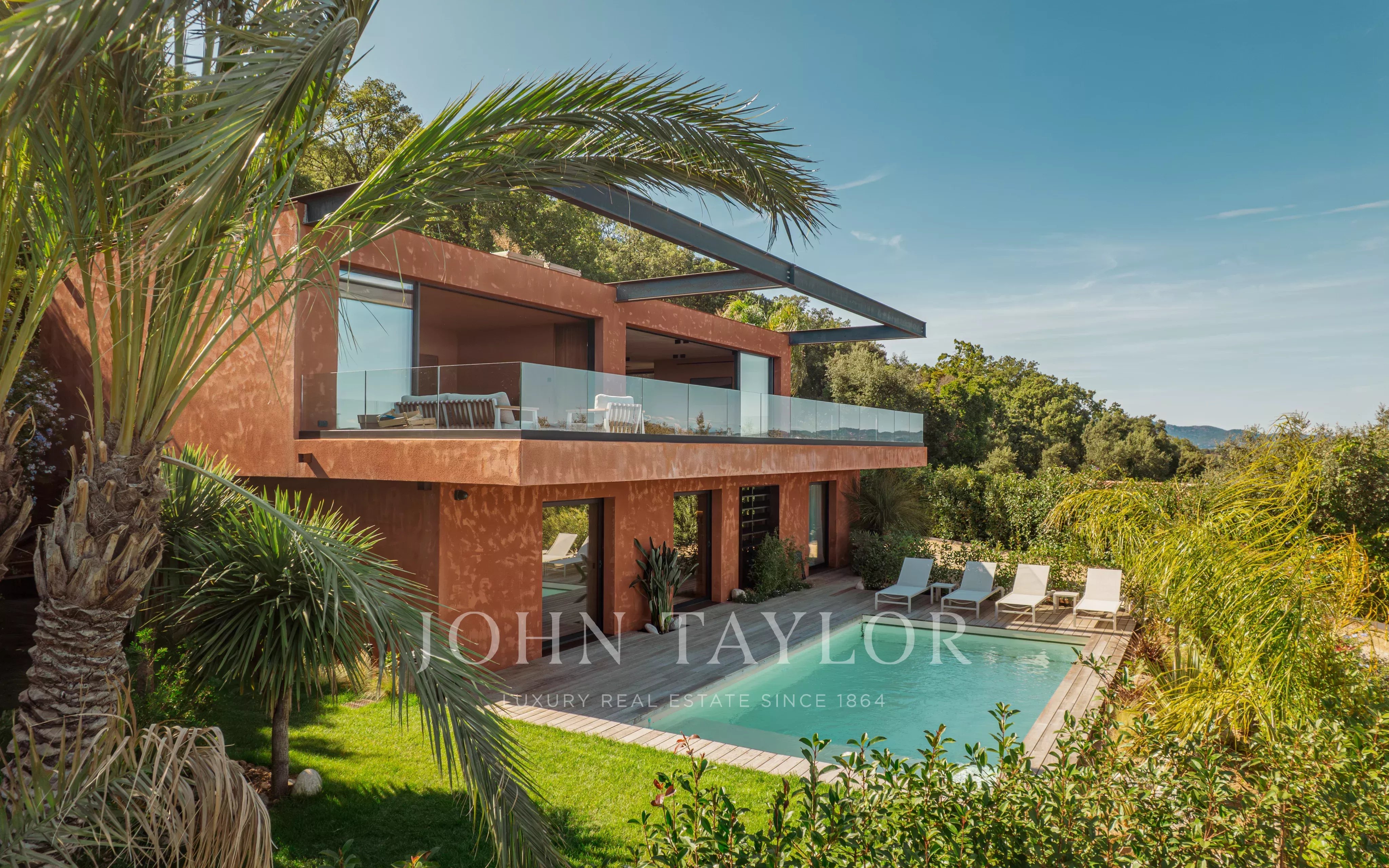 Cette propriété d’architecte exceptionnelle est nichée dans l’un des quartiers les plus prisés de La Croix-Valmer, idéalement située entre le centre du village et le golfe de Saint-Tropez.