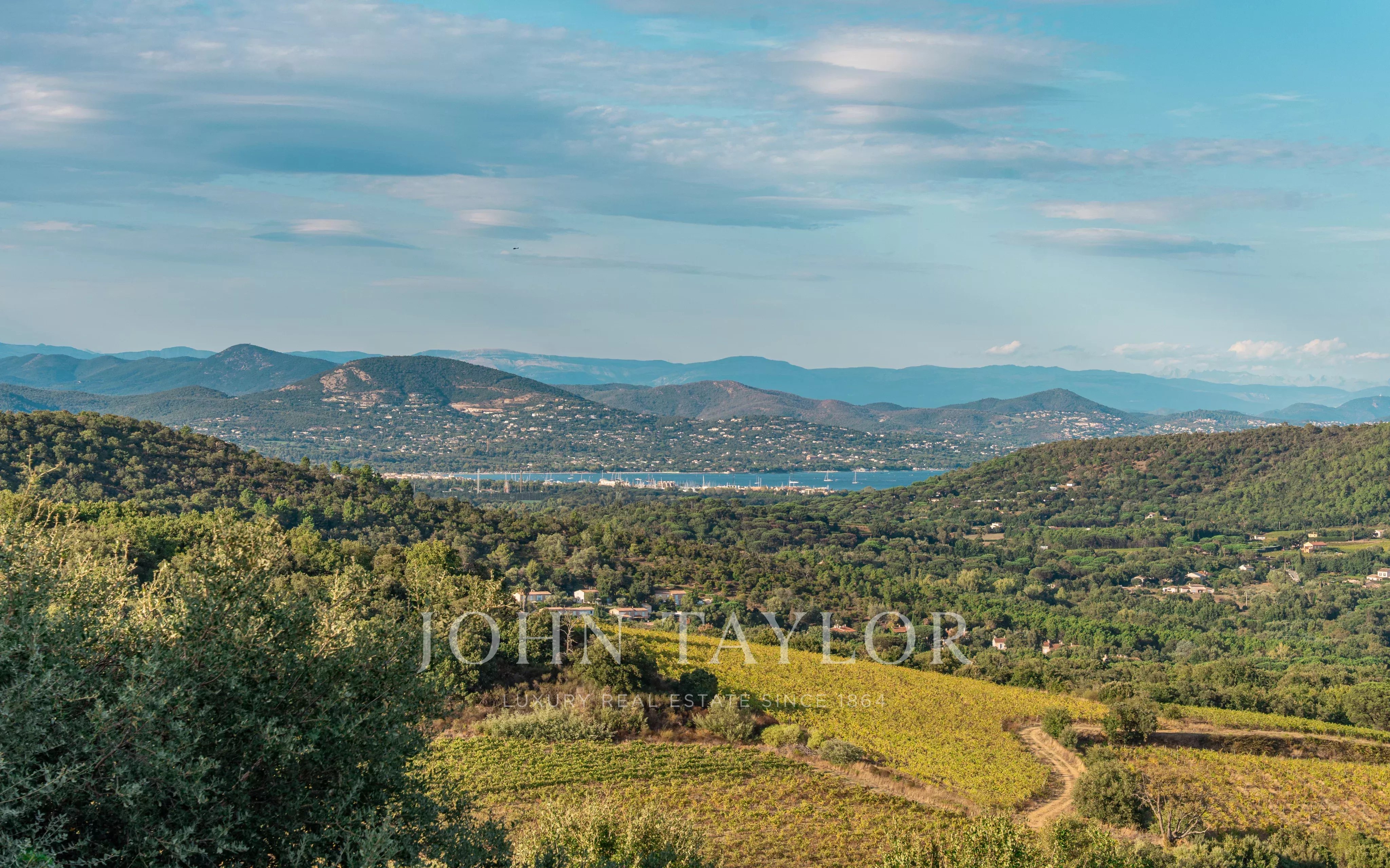 Sa position dominante offre une vue spectaculaire sur le golfe de Saint-Tropez, le village de Gassin et, à l’horizon, les sommets enneigés des Alpes.