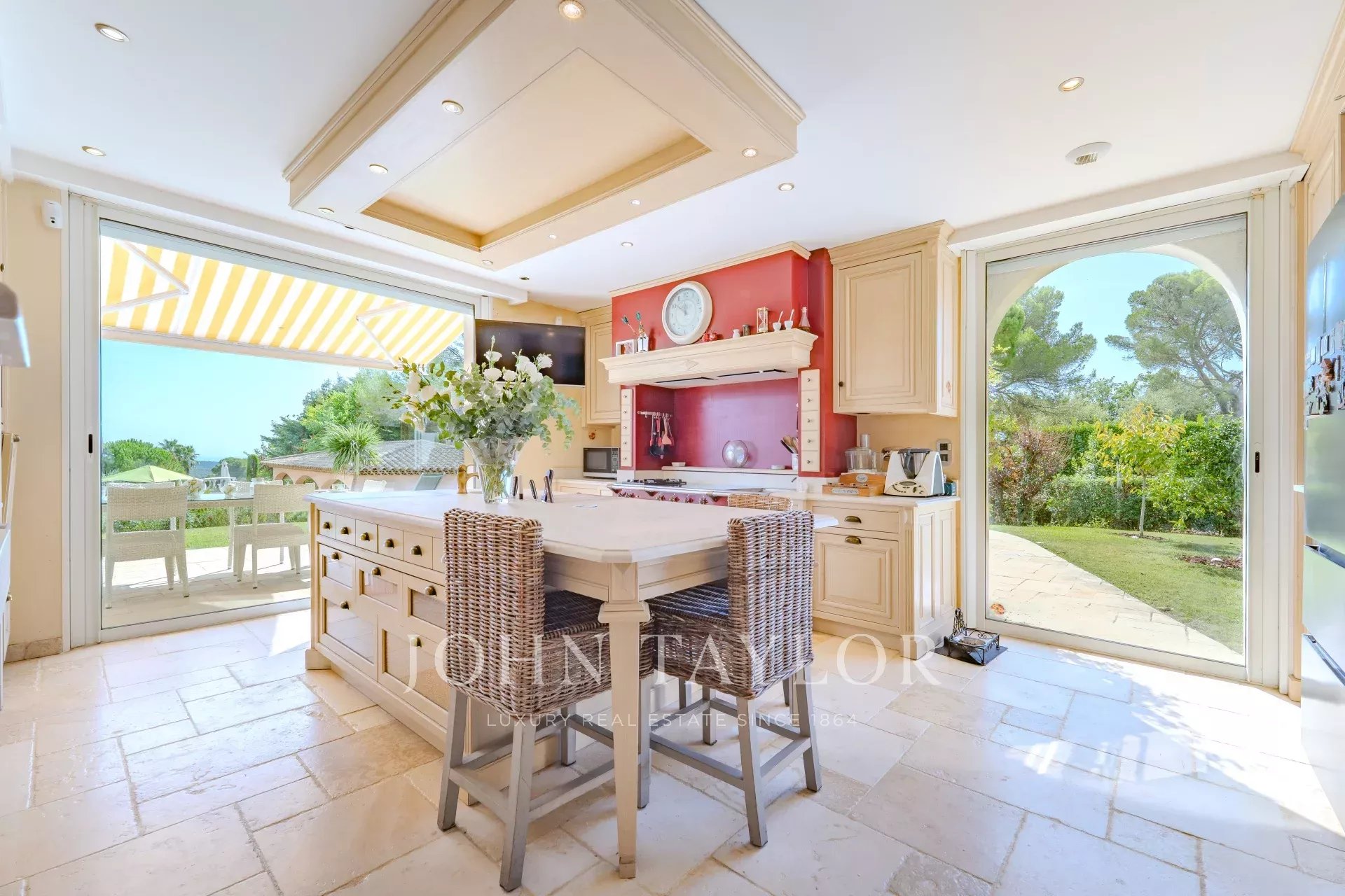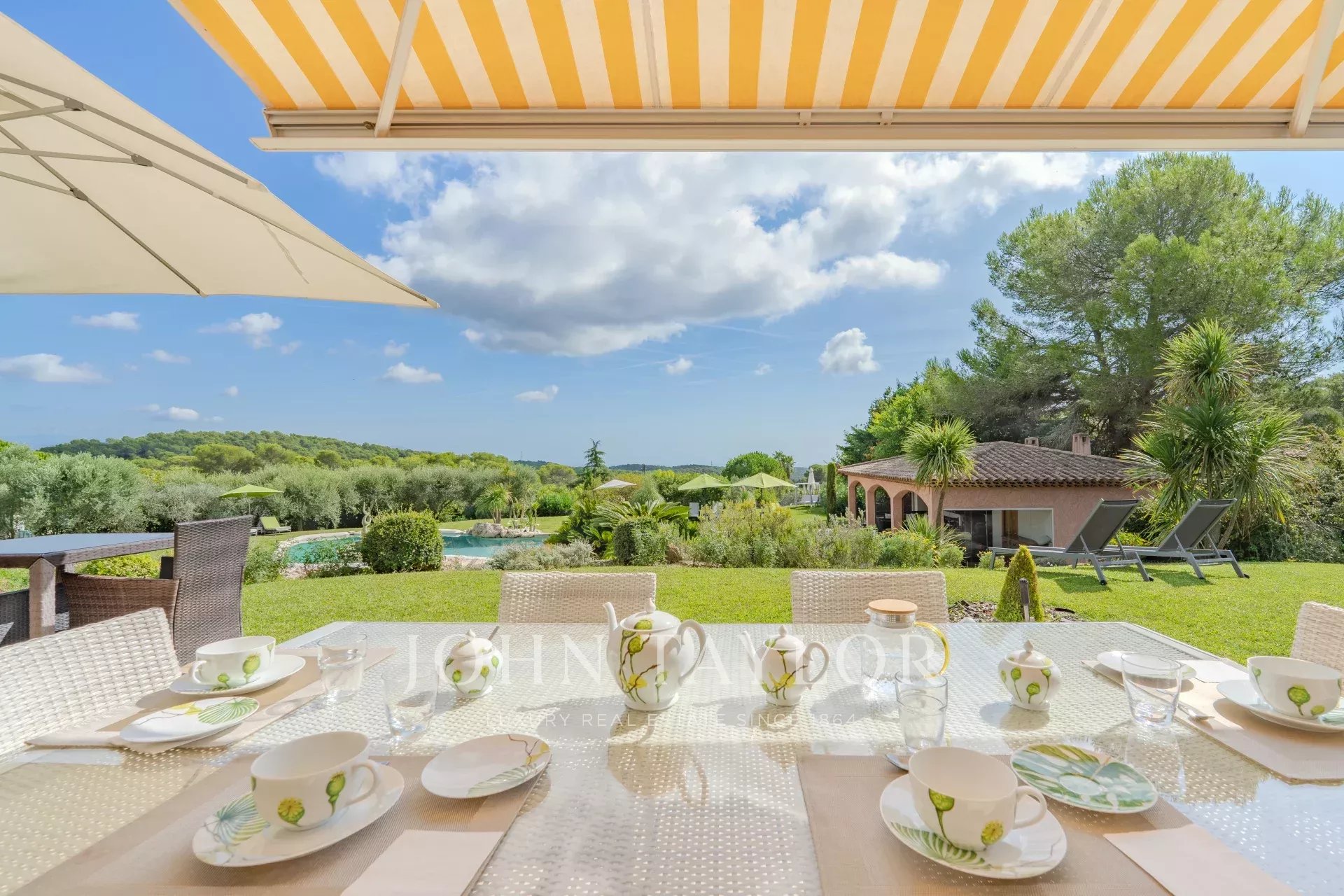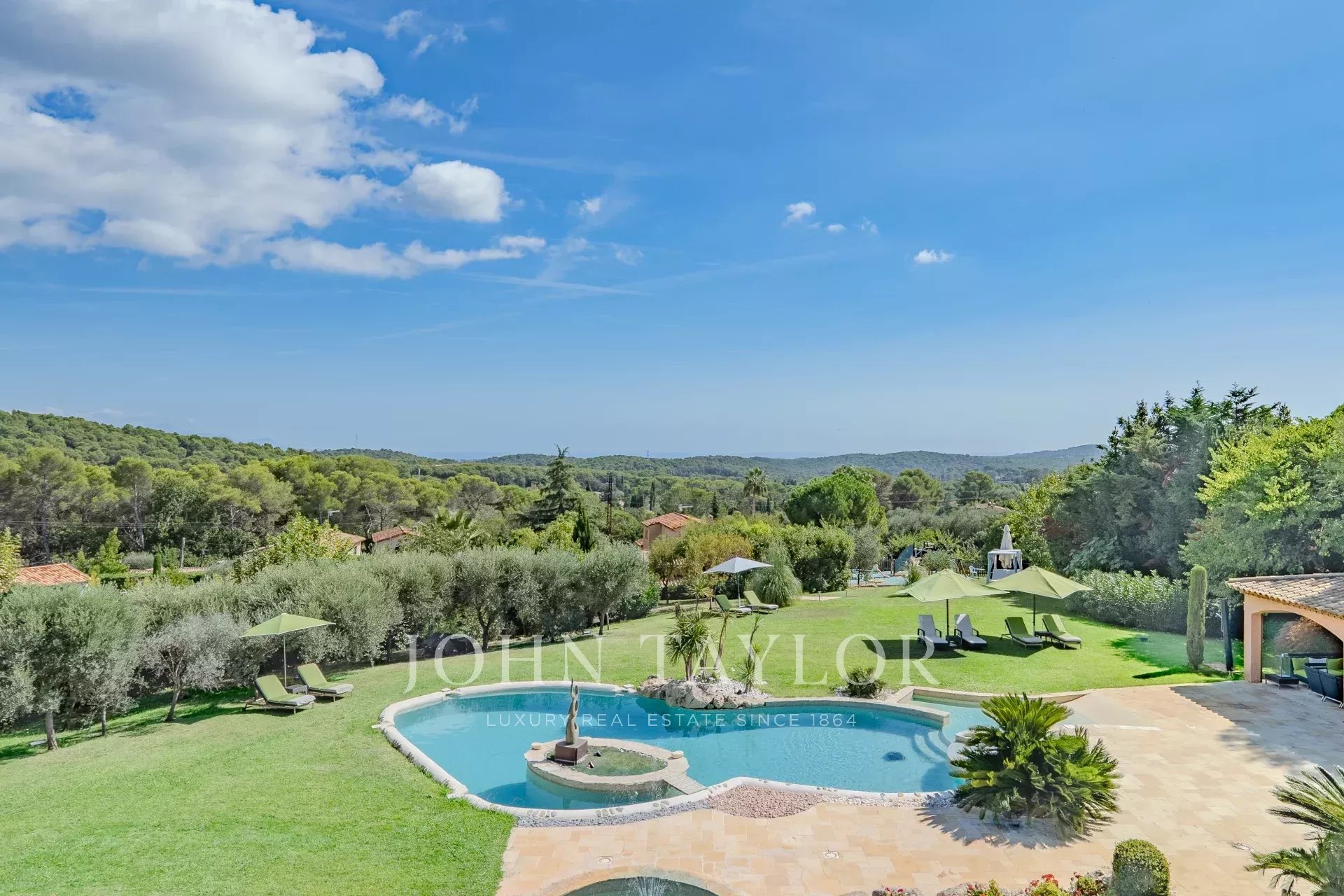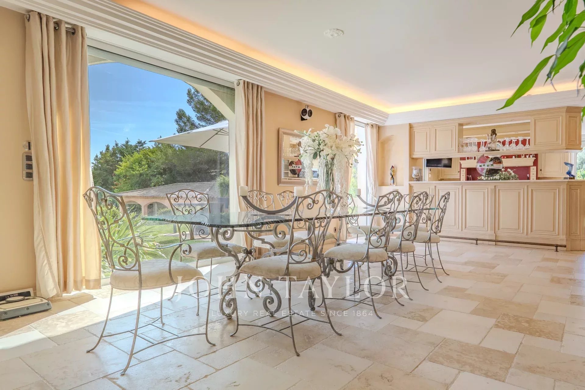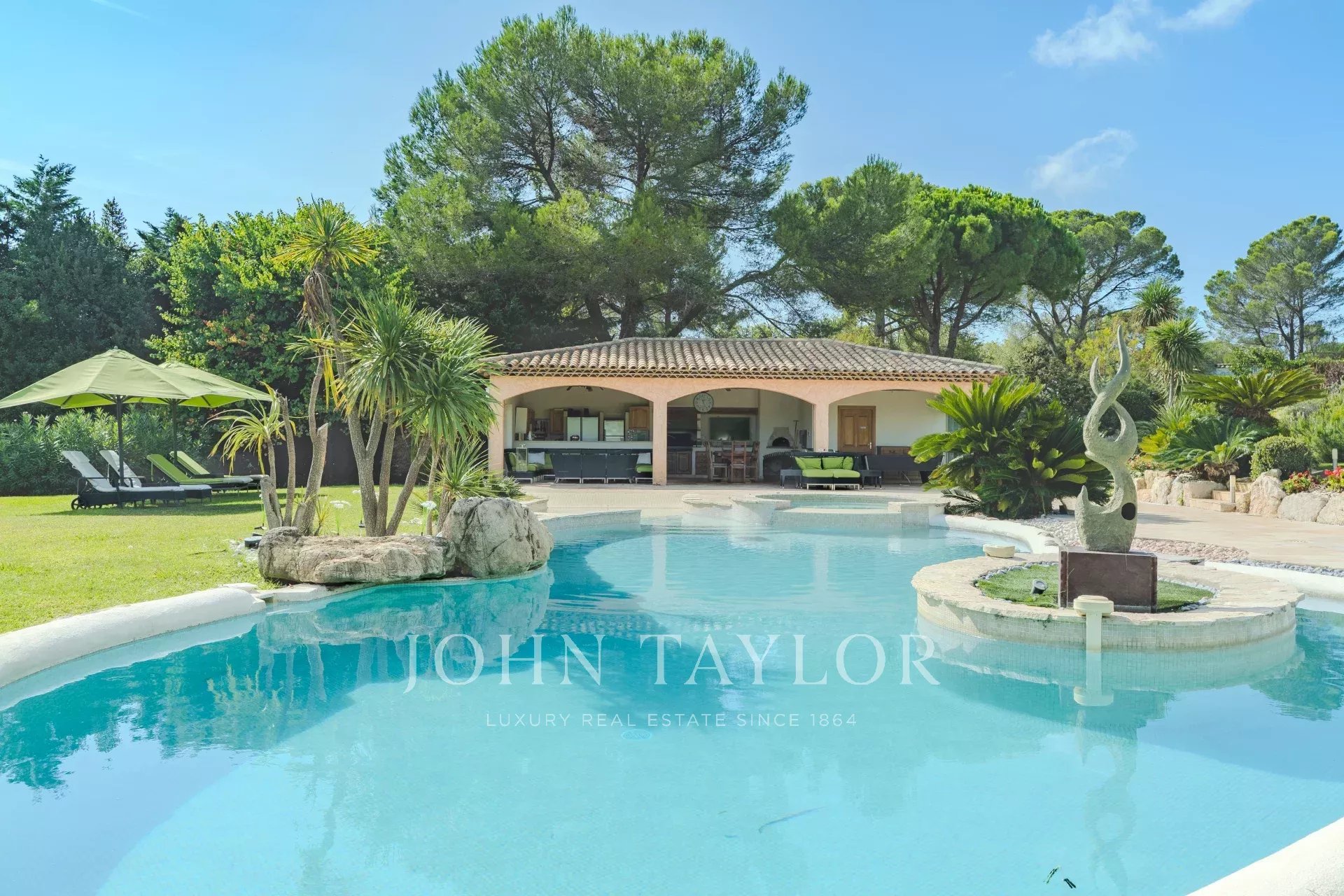 Située à Mougins, dans l'un des quartiers les plus résidentiels, à seulement 5 minutes du Golf de Mougins, 15 minutes de la célèbre Croisette de Cannes, vous serez charmés par cette propriété et son magnifique jardin agrémenté d'une somptueuse piscine en forme libre avec son jacuzzi, son pool-house entièrement aménagé avec salon et cuisine d'été.