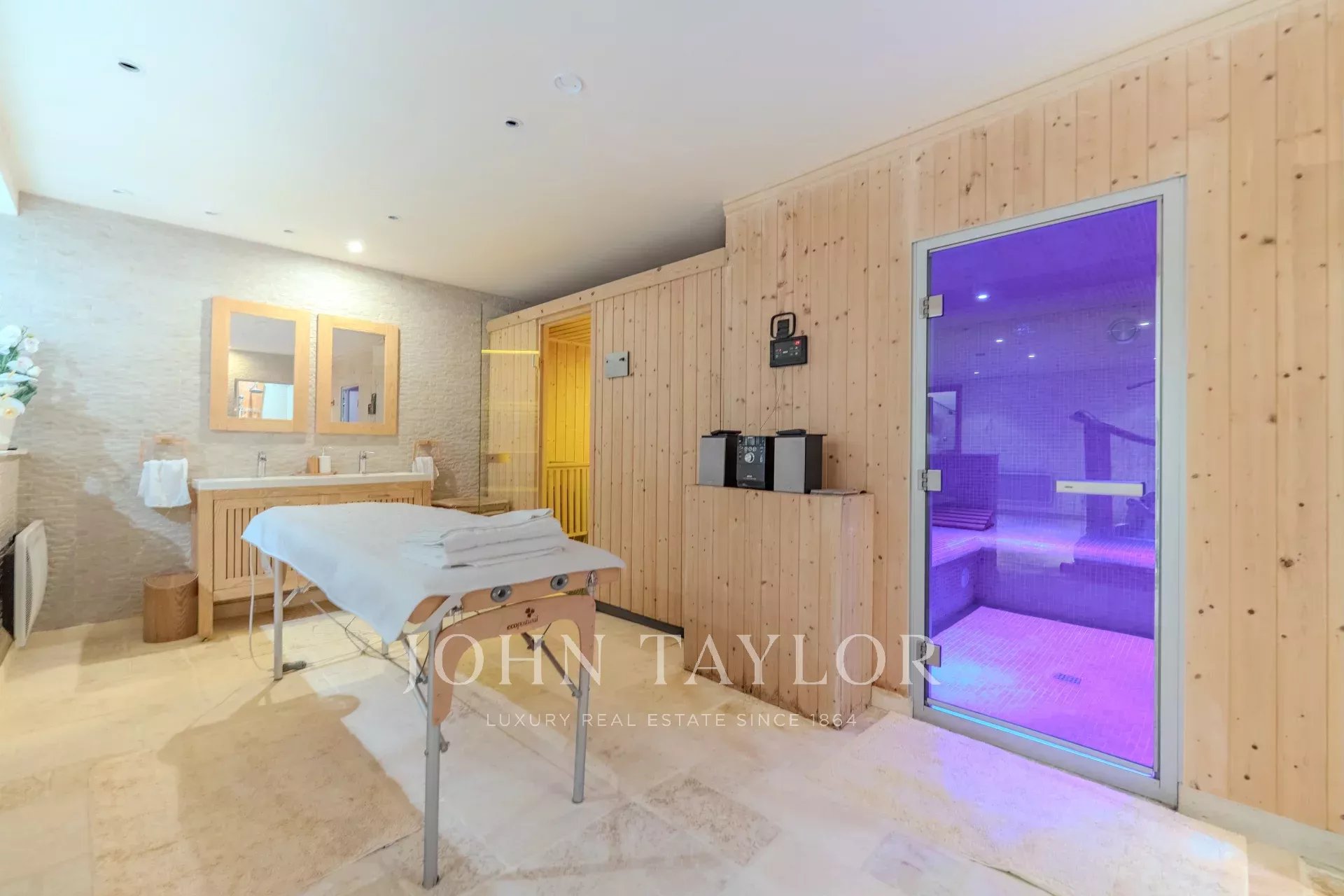 La décoration est raffinée, toute la propriété est aménagée pour des personnes à mobilité réduite, ascenseur pour les 3 niveaux.