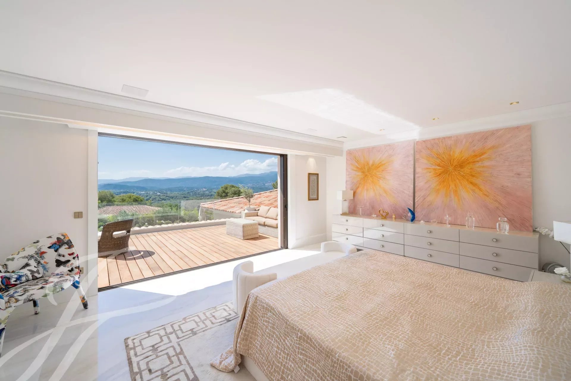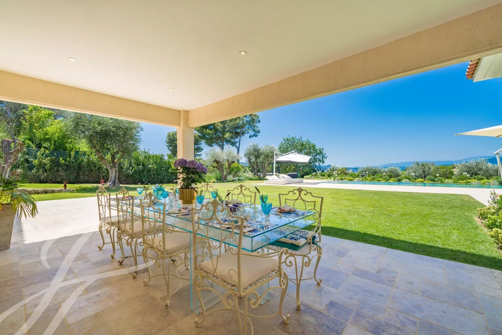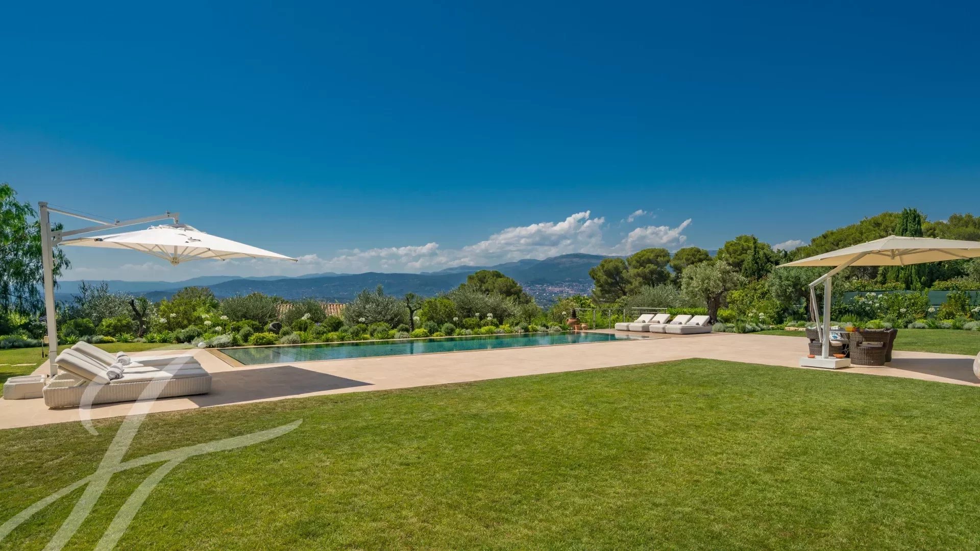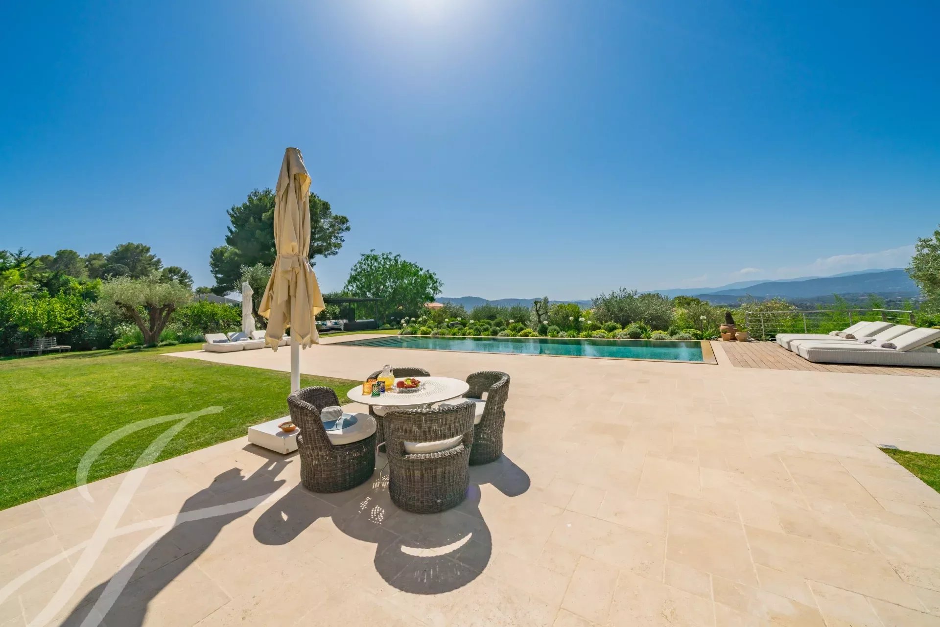 Exposée à l'ouest, la villa offre des couchers de soleil à couper le souffle sur les Alpes maritimes et les villages environnants à seulement 15 Minutes de Cannes et 25 minutes de l’aéroport de Nice.
