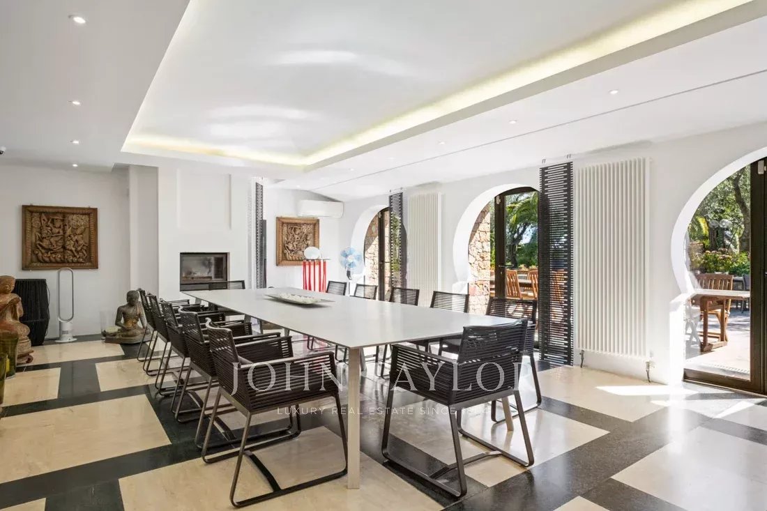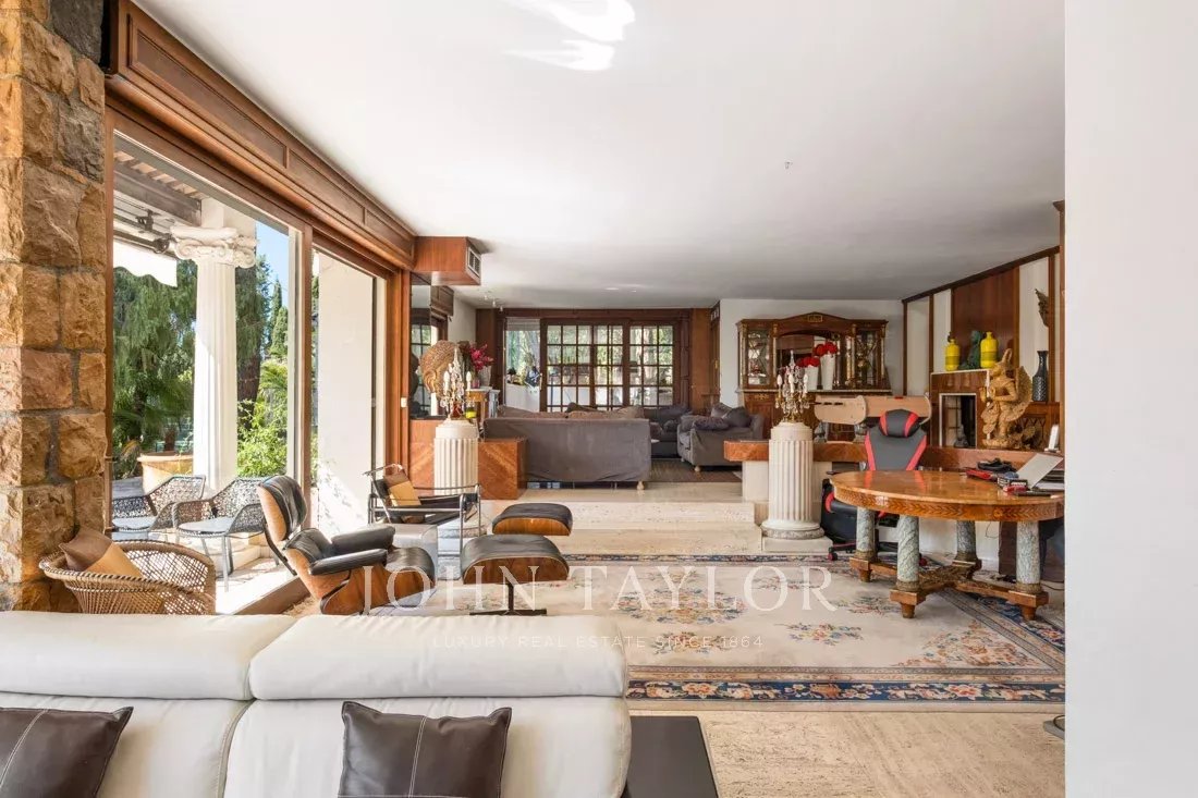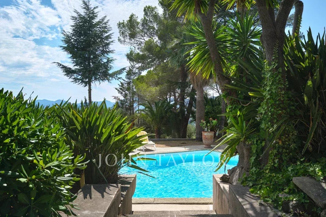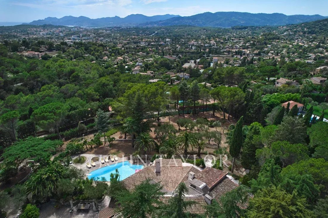 Dans un des quartier les plus prestigieux de Mougins, propriété d'architecte sise sur terrain de 9 200 m2 avec piscine chauffée et tennis.