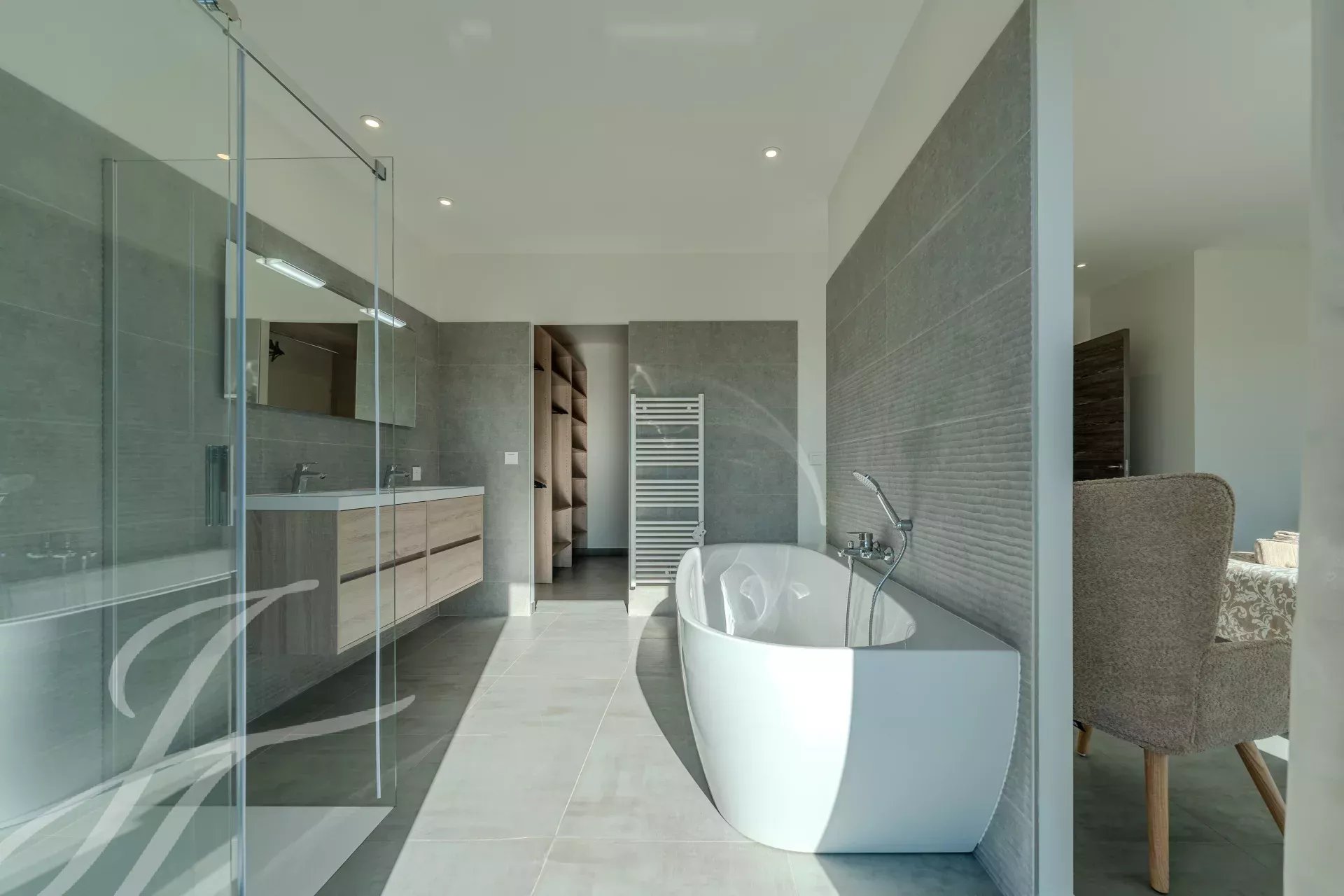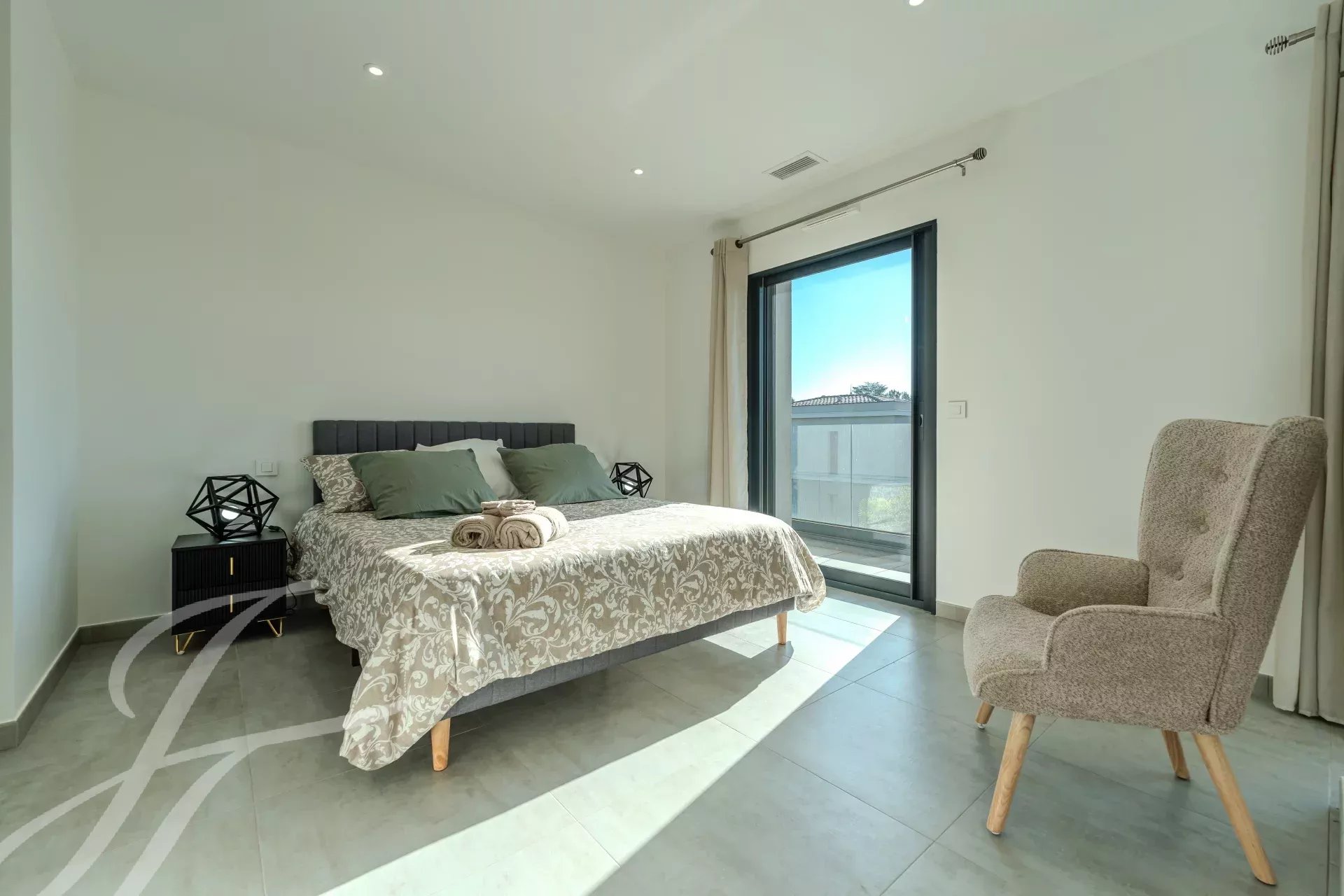 La villa se compose de quatre suites, chacune avec sa salle d’eau privative, offrant à ses occupants intimité et confort absolu.