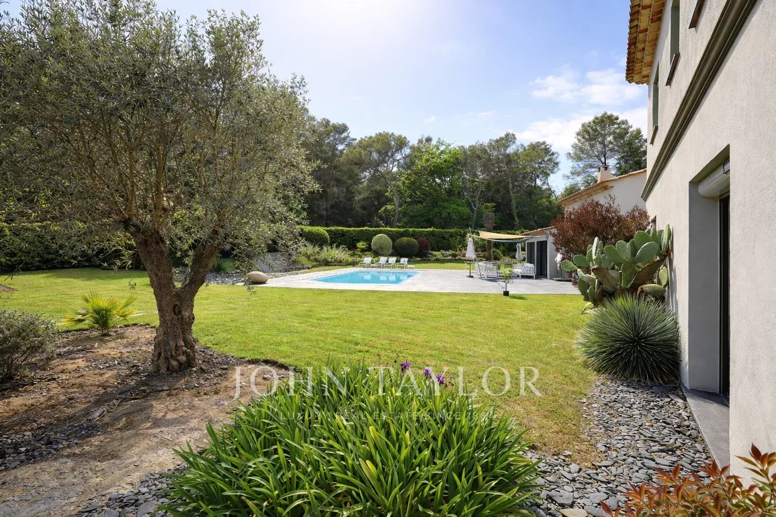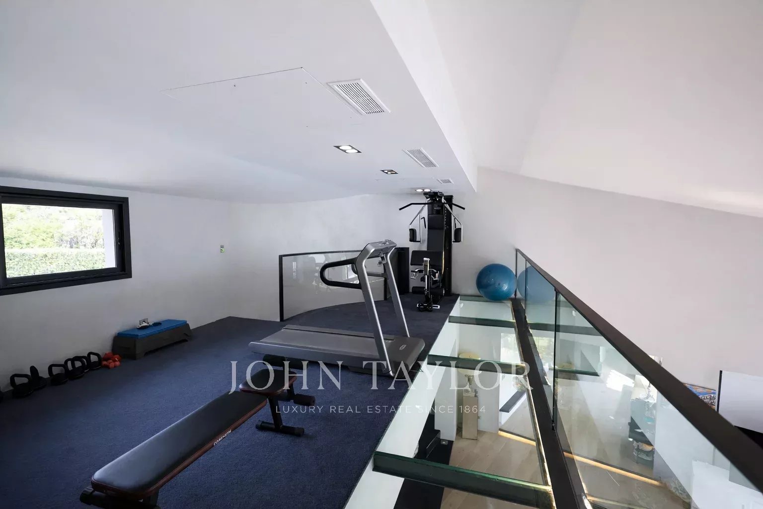 Au sein du prestigieux domaine des Parcs de Mougins, adresse confidentielle parmi les plus recherchées de la région, bénéficiant d’une sécurité 24h/24, cette propriété d’exception d’environ 310 m² incarne un art de vivre rare, alliant élégance, sérénité et raffinement absolu. Nichée au cœur d’un sublime jardin paysager plat de 2 500 m², elle offre un cadre de vie d’une quiétude remarquable.