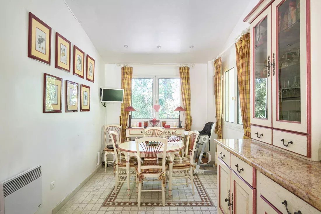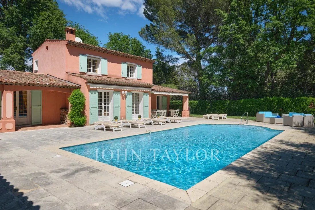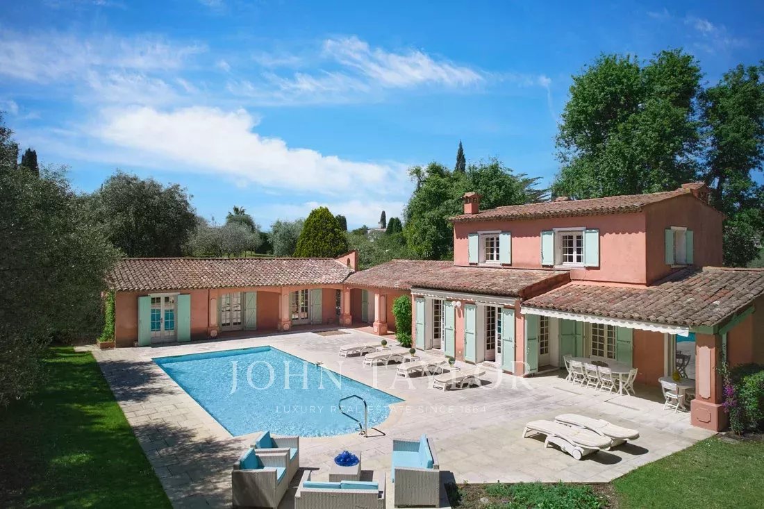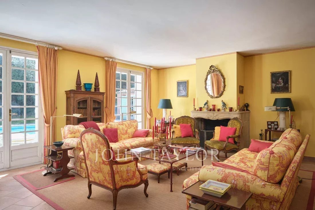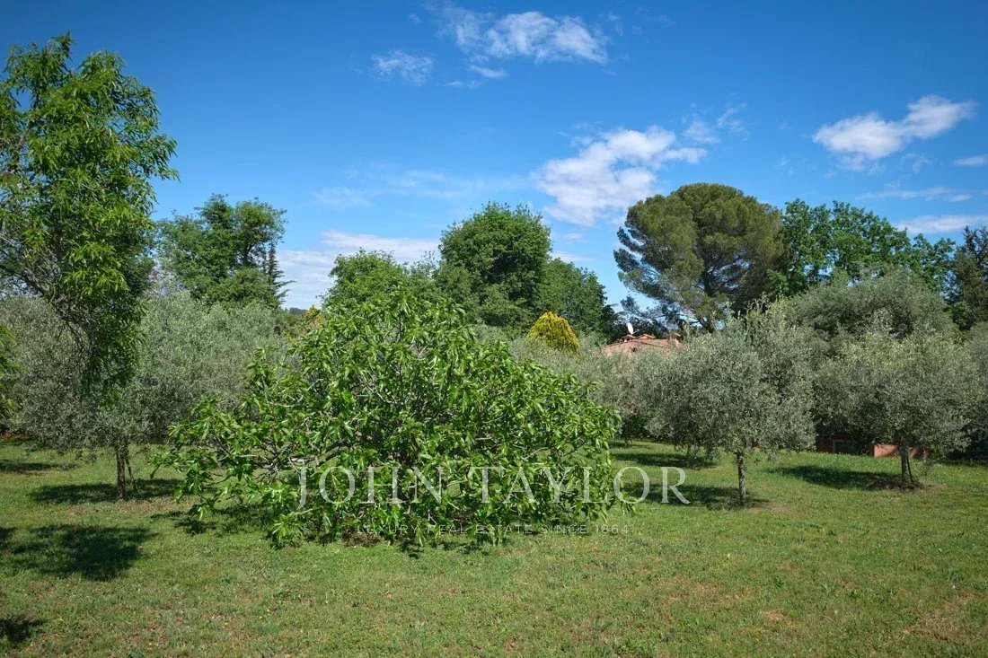 Co-exclusivité : Sur la colline de Mougins, à quelques pas du vieux village, cette belle propriété provençale de 234 m² bénéficie d’un terrain plat de 3 218 m² avec une oliveraie.
