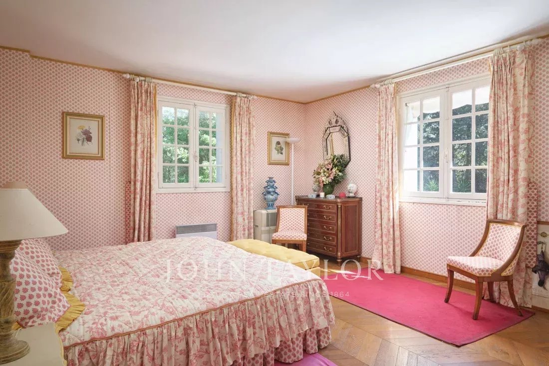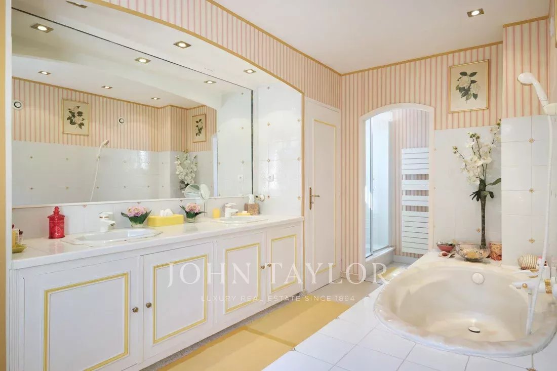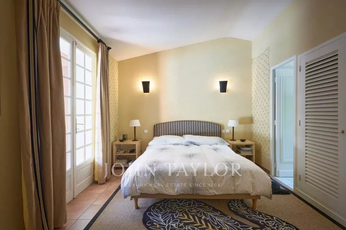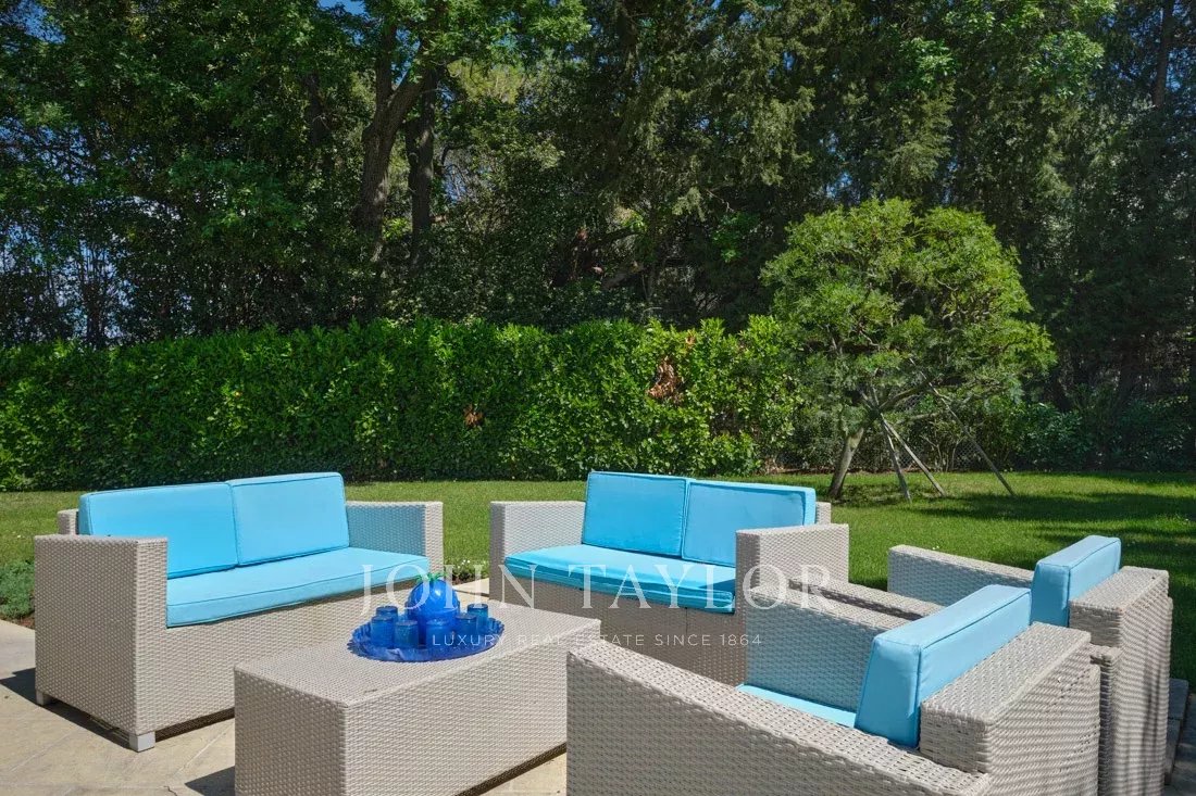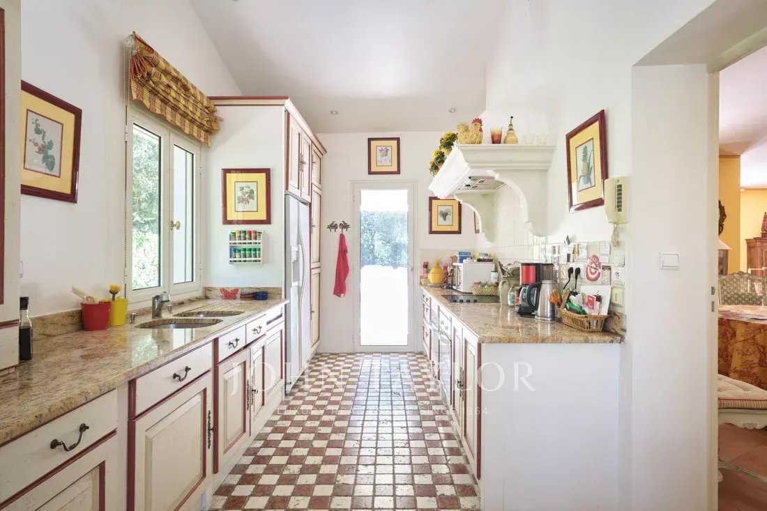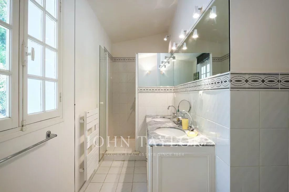 Co-exclusivité : Sur la colline de Mougins, à quelques pas du vieux village, cette belle propriété provençale de 234 m² bénéficie d’un terrain plat de 3 218 m² avec une oliveraie.