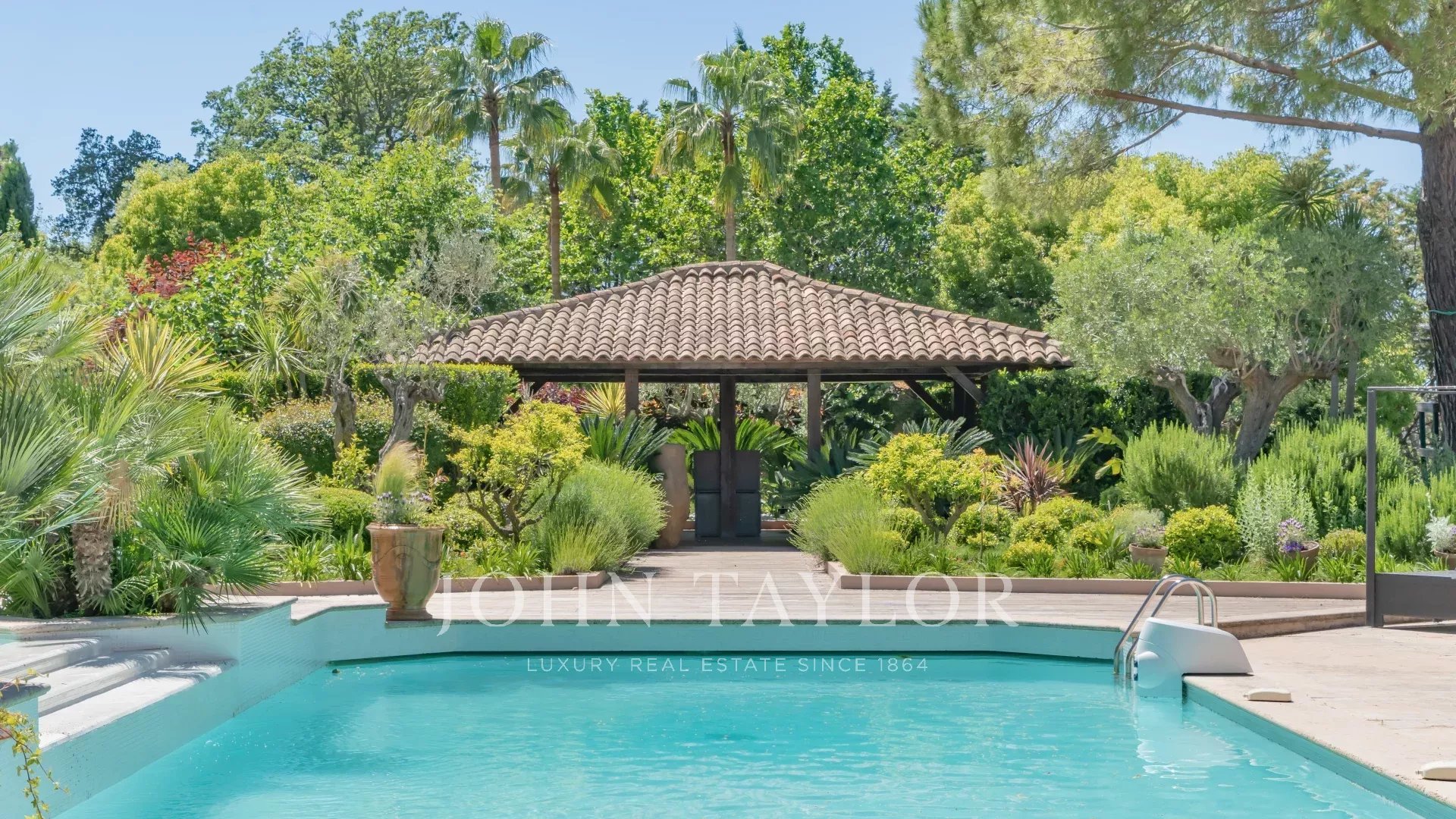 Dans un domaine fermé et sécurisé au calme, superbe propriété sise sur un terrain paysagé d'environ 7 700 m2 avec piscine et tennis.