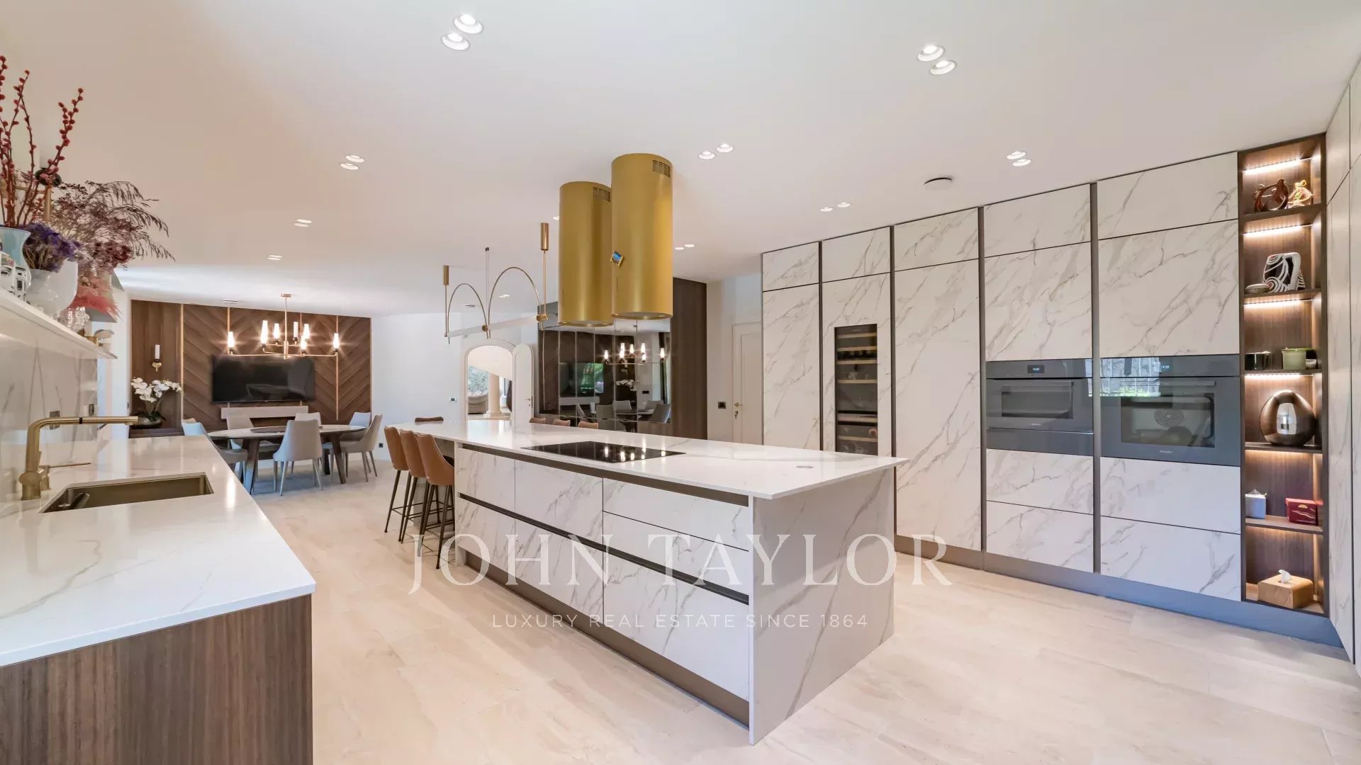 Offrant de généreux volumes d'espace de vie, d'une grande cuisine, d'une salle de jeux/TV, de 5 suites dont la Master avec double dressing et salle de bains complète.