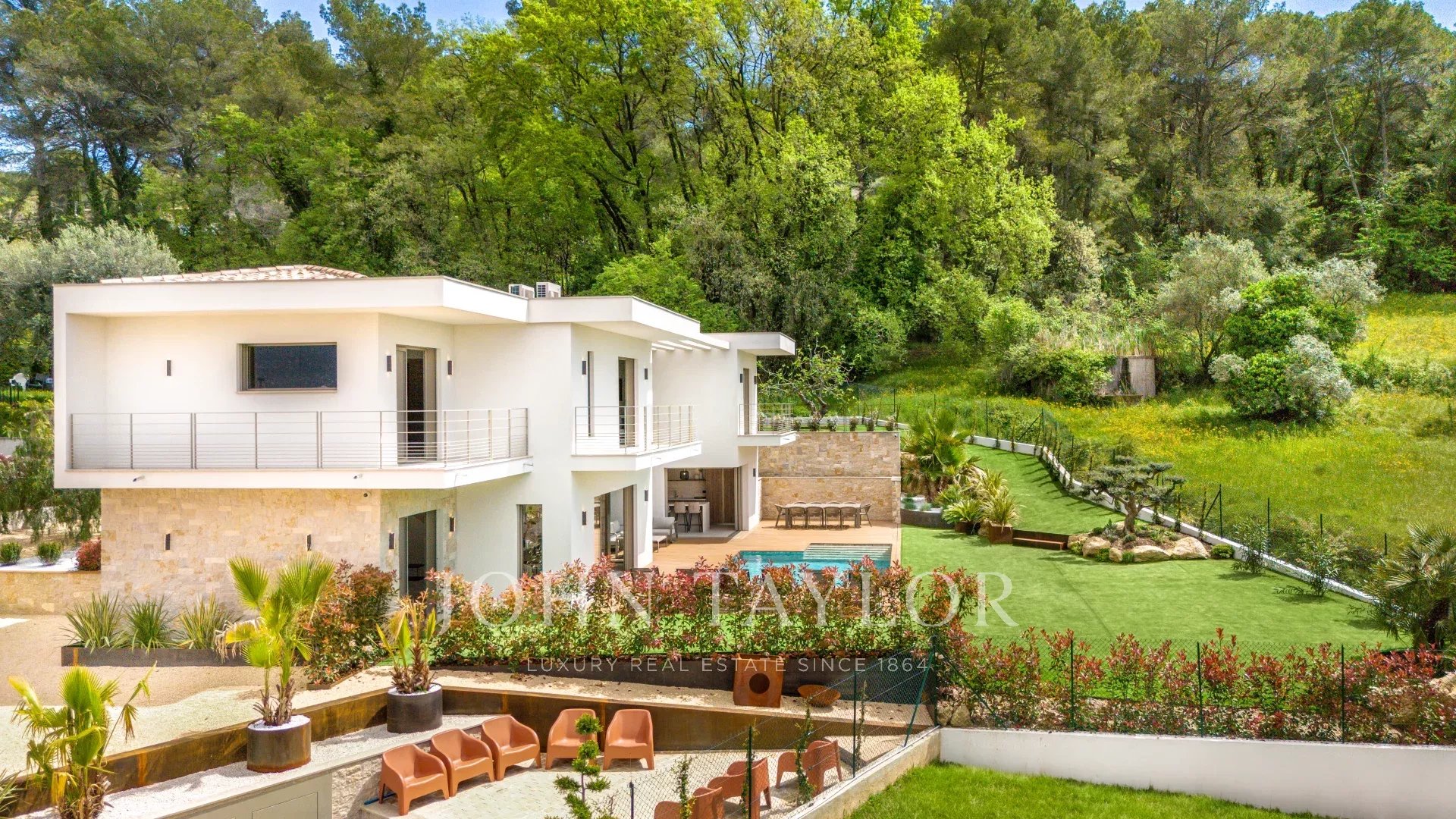 Climatisée pour un confort absolu en toute saison, la propriété s’étend sur un terrain de 1 572 m², agrémenté d’une élégante piscine et d’espaces de stationnement. Une maison d'amis de 85 m² complète cet ensemble, idéale pour recevoir dans une intimité totale.
