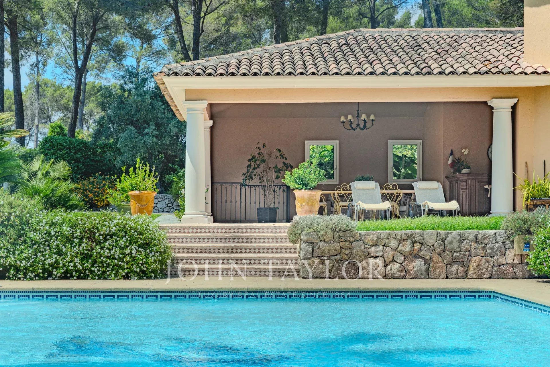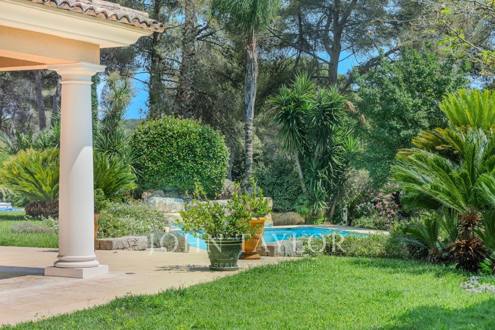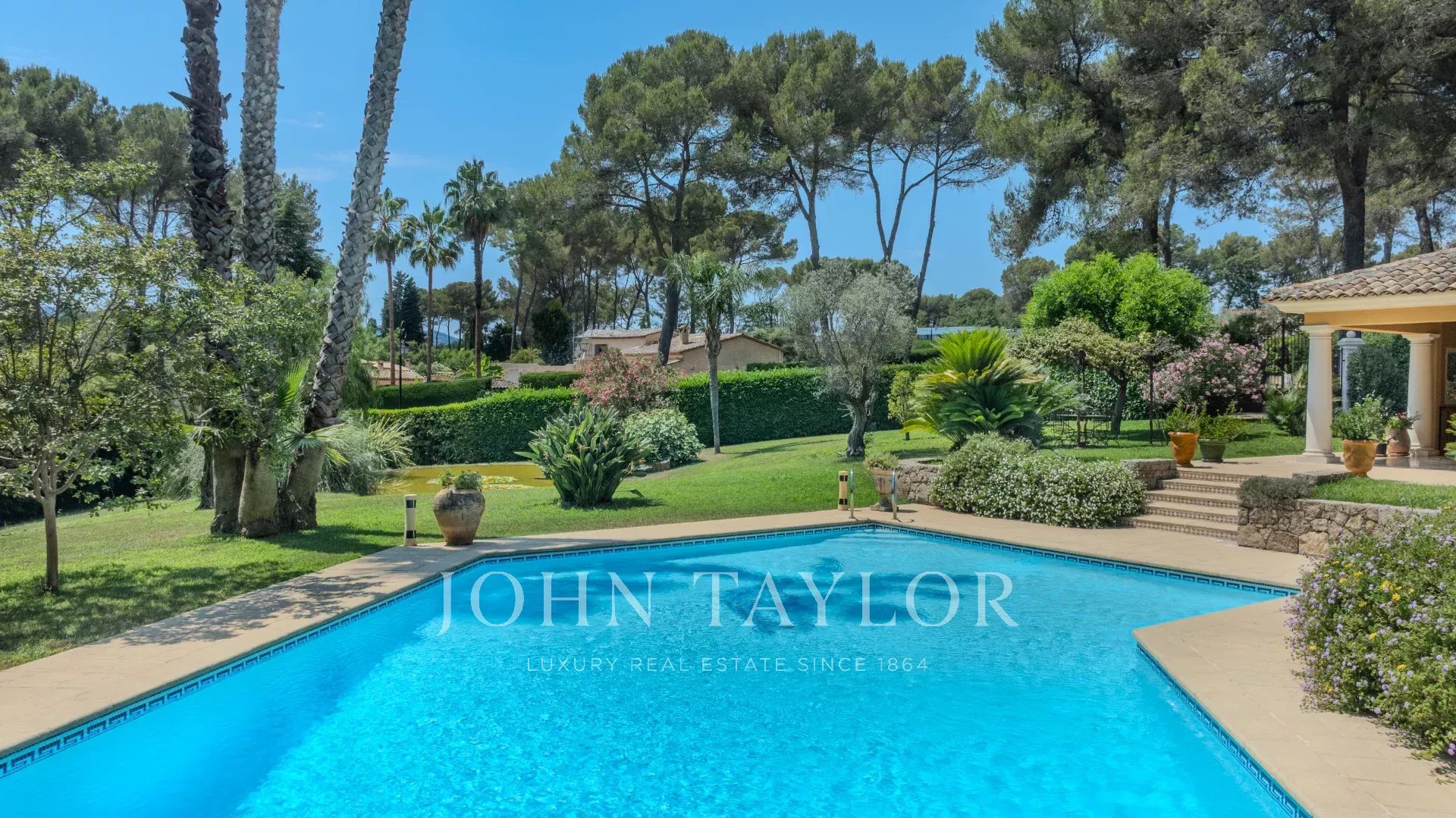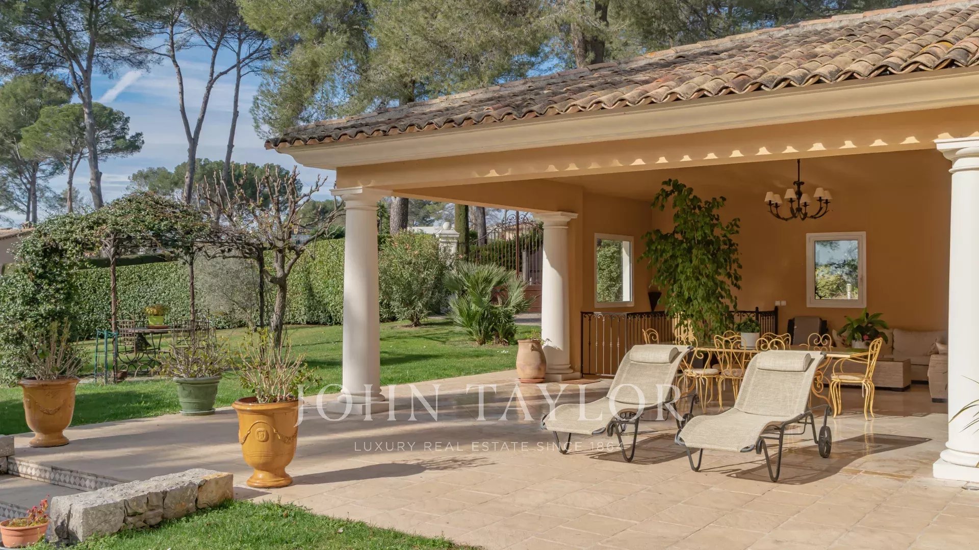 Adresse très exclusive à Mougins, dans un domaine privé et fermé, à deux pas des commerces et à proximité de golfs de renom et des plages de Cannes.