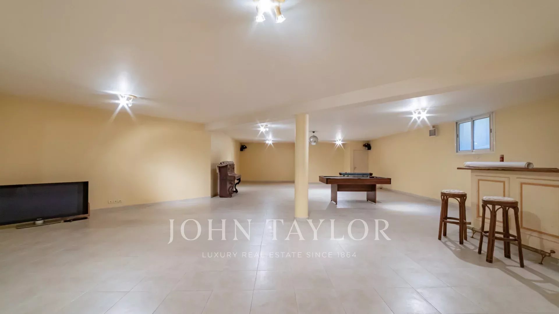 Parmi les très nombreuses prestations : arrosage automatique - portail électrique - salle de jeux - cheminée - cave à vin - jardin privatif - terrasses - jardin paysager - climatisation - chauffage et rafraîchissement par le sol.