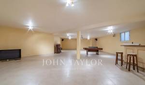 Un immense sous-sol avec cour anglaise de 300 m², salle de jeux, une cave à vin, un bureau ou un rangement et un grand garage pouvant accueillir jusqu'à 4 voitures.